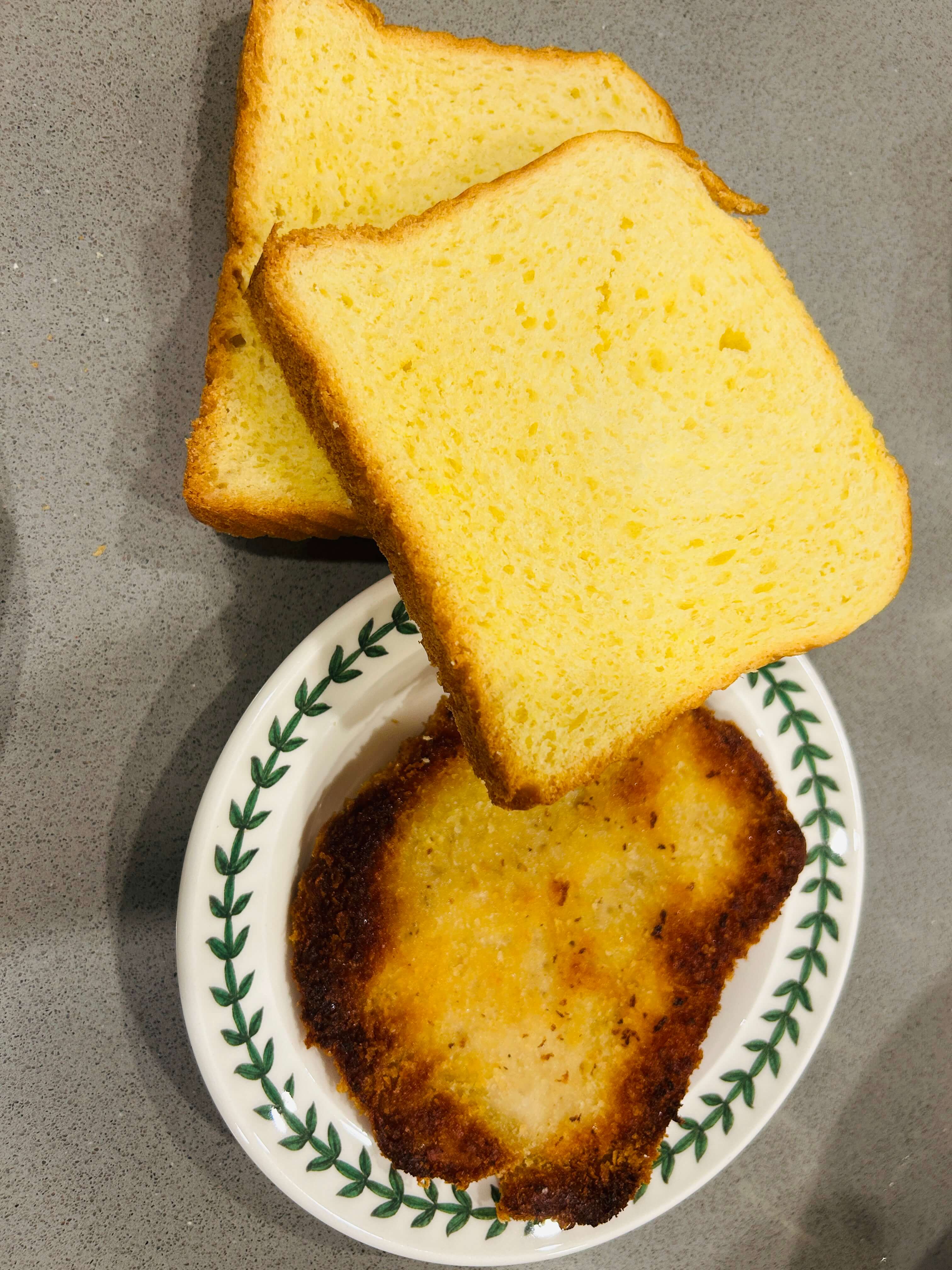 2. 튀긴 돈까스와 식빵을 준비해 줍니다.