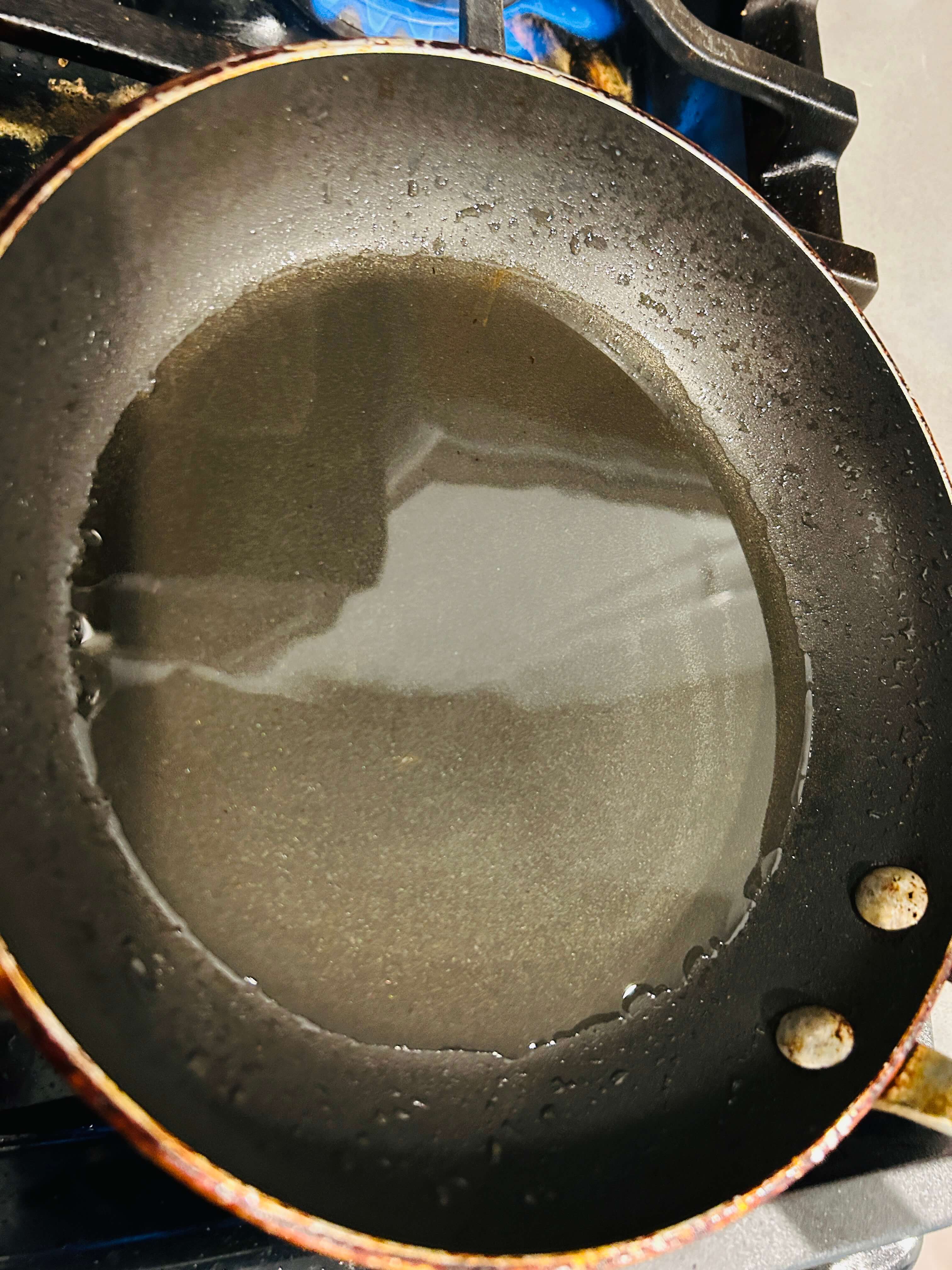 1. 프라이팬에 기름을 두르고 돈가스를 튀겨줍니다.