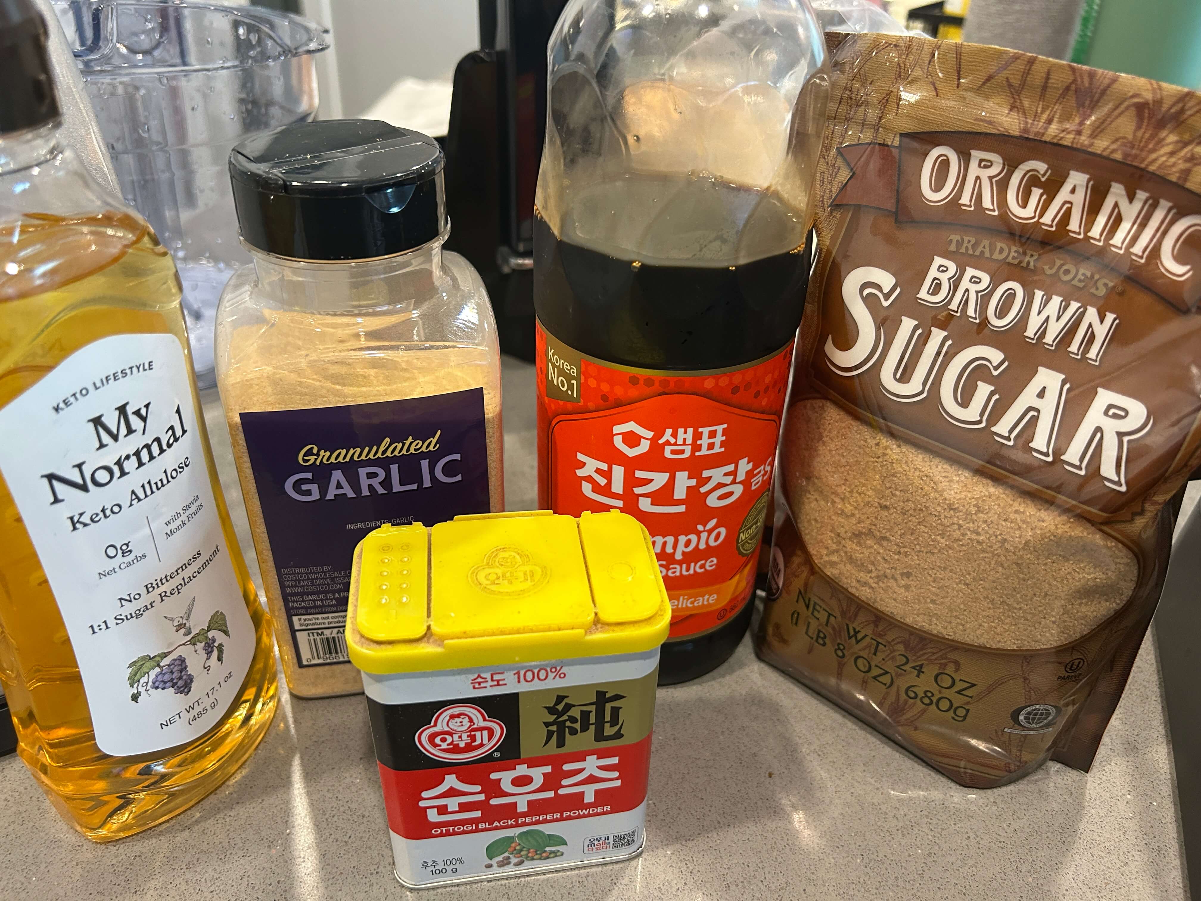3. 양념소스로 간장, 설탕, 알룰로스, 후추, 마늘가루를 준비해 줍니다.