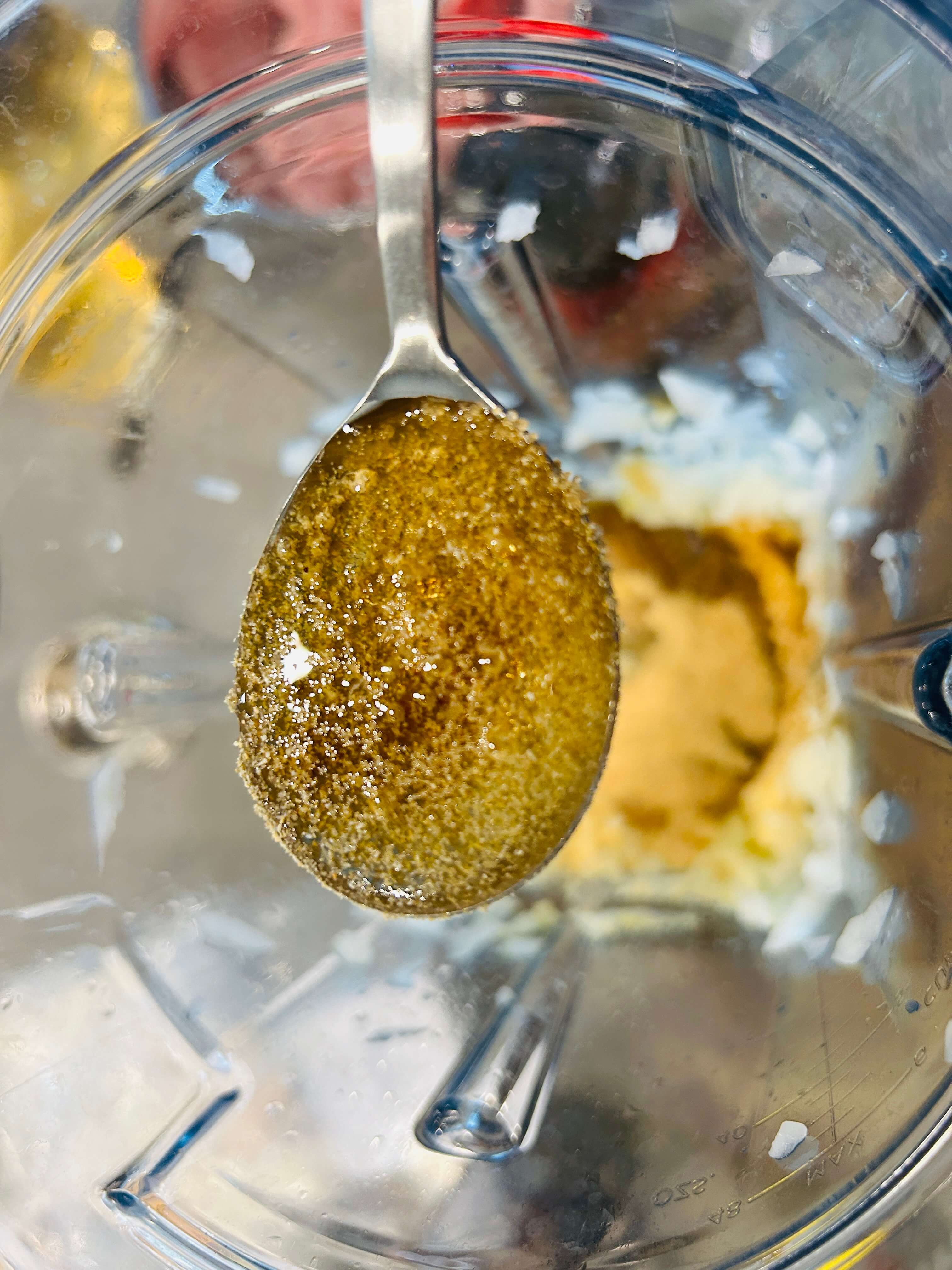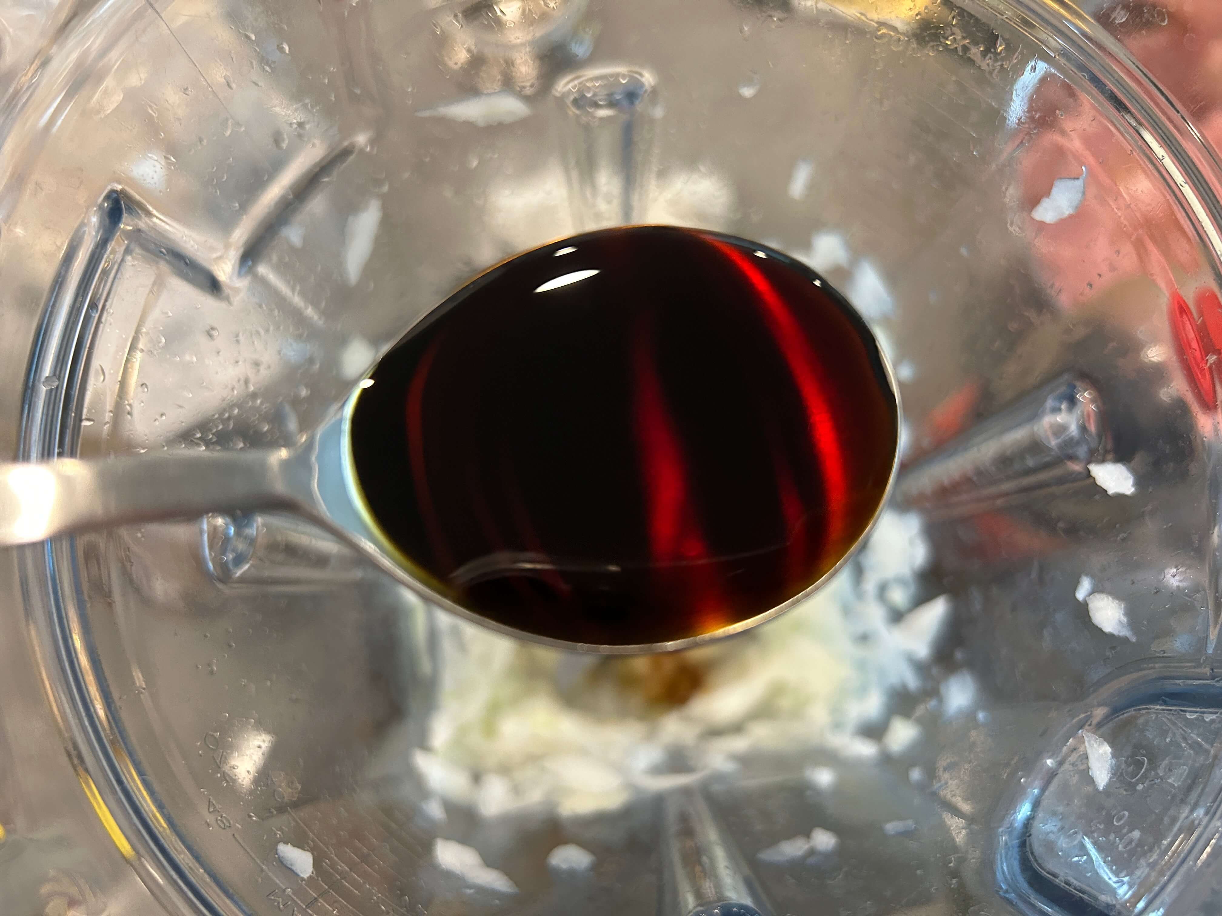 5. 간장 3 숟갈, 설탕 1 숟갈, 알룰로스 1숟갈, 마늘가루 2 숟갈, 후추 1 숟갈을 넣고 모두 갈아줍니다.
