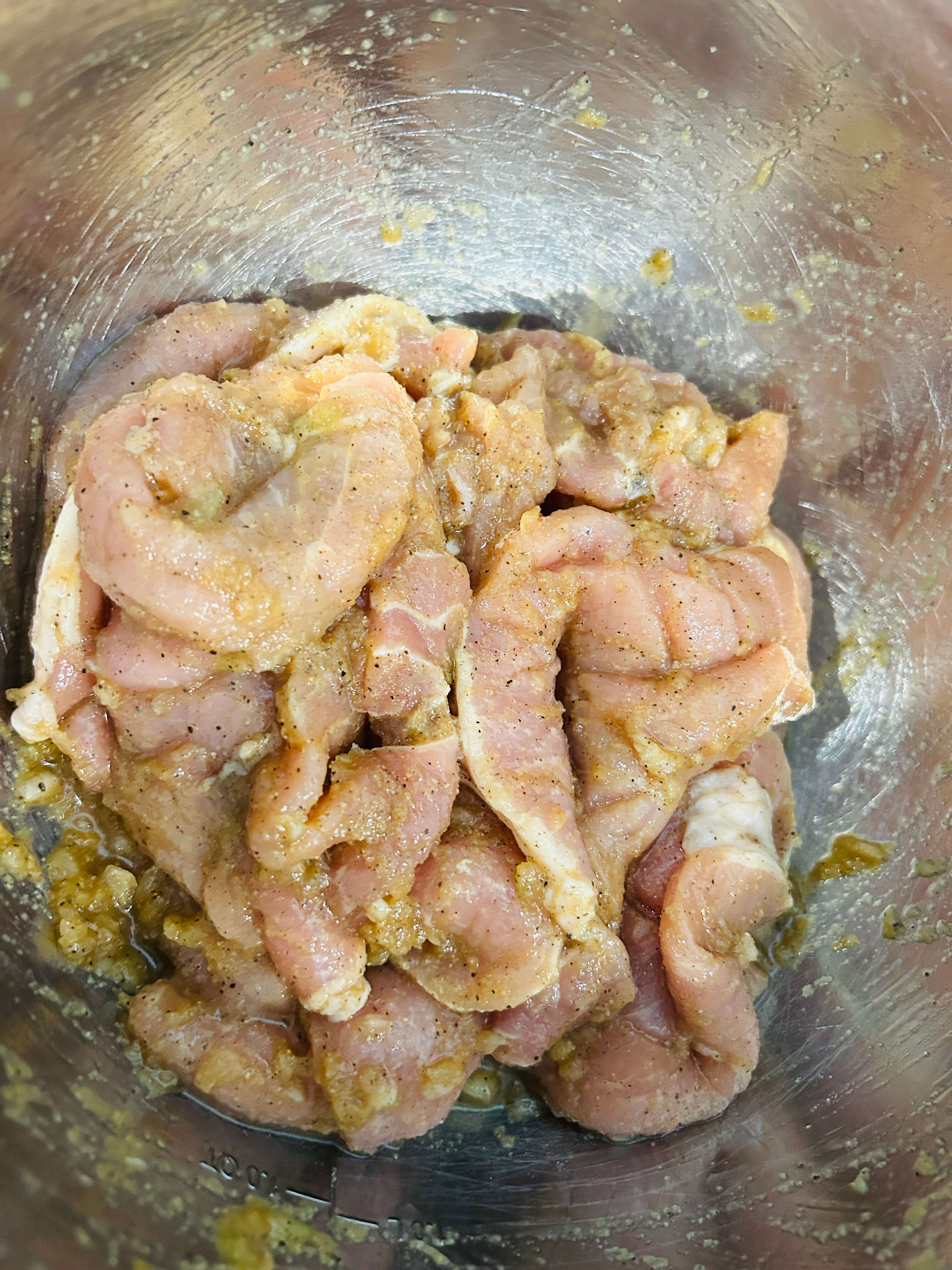 6. 준비된 고기에 양념을 넣고 잘 버무려 줍니다.