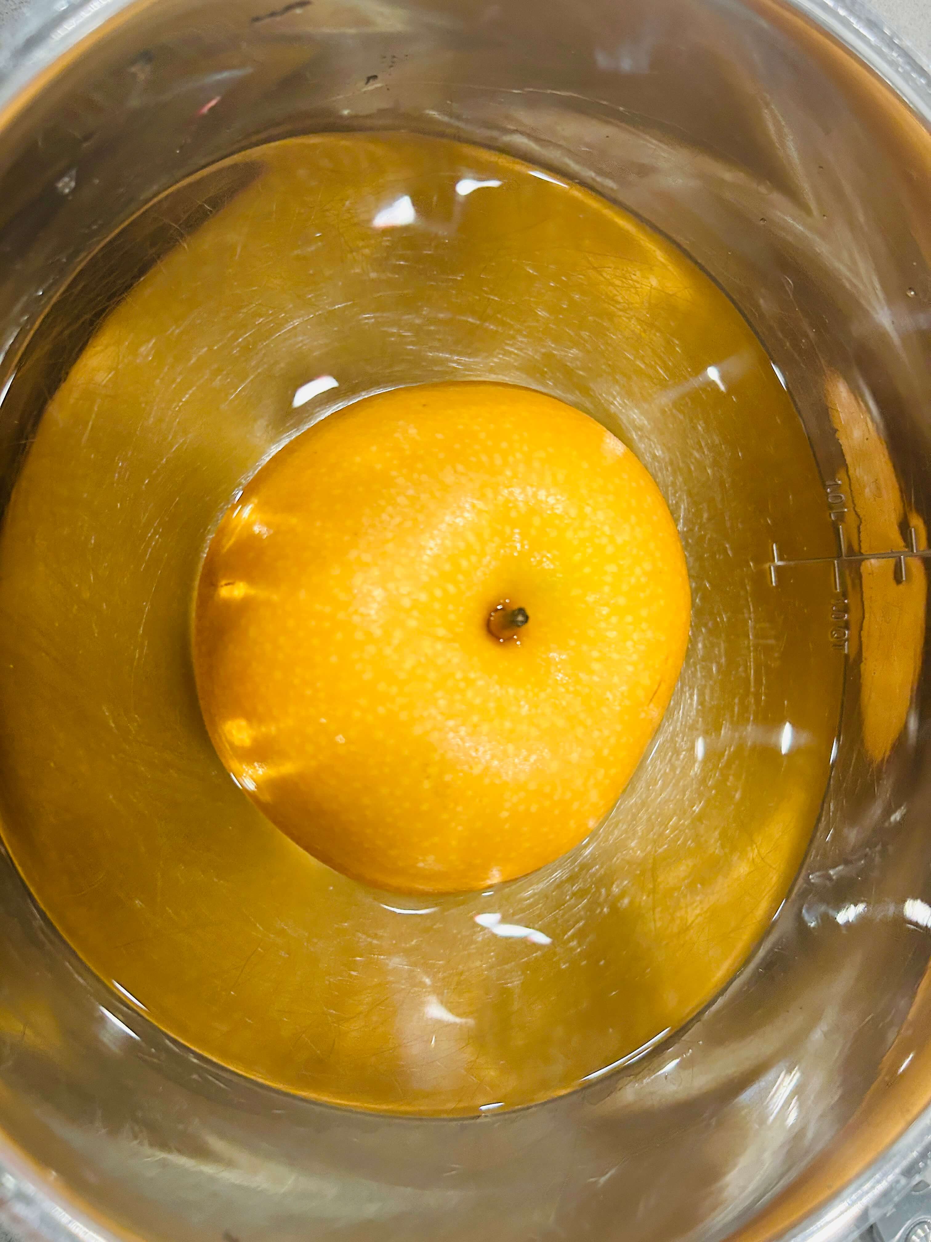 3. 배를 껍질 체 넣어서 씻어줍니다.