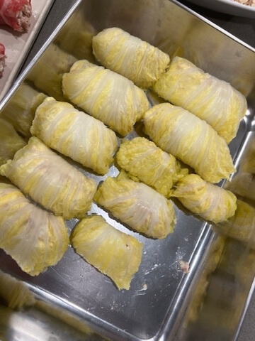 4. 삶은 배추에 준비한 참치두부를 넣고 돌돌 말아줍니다.