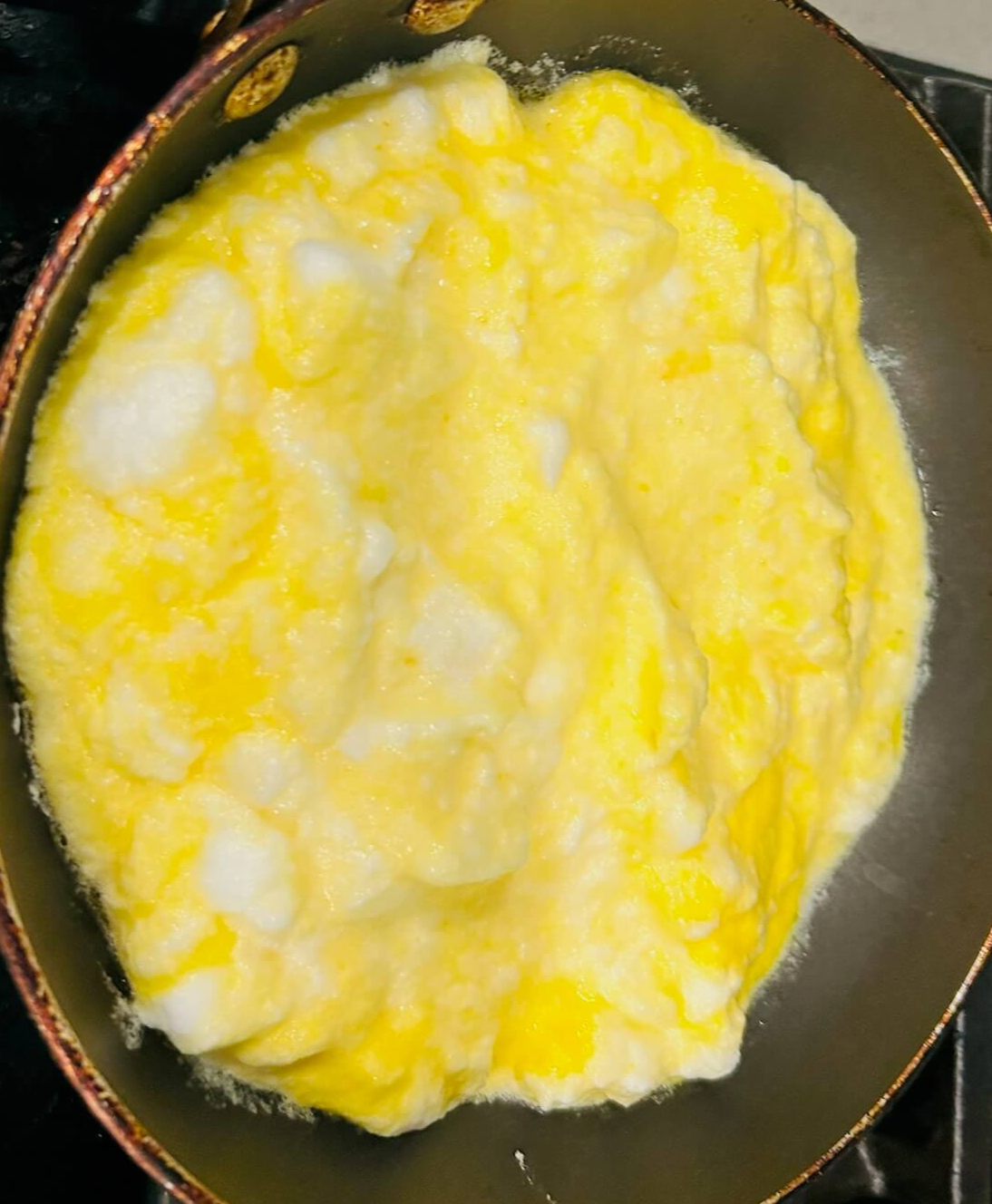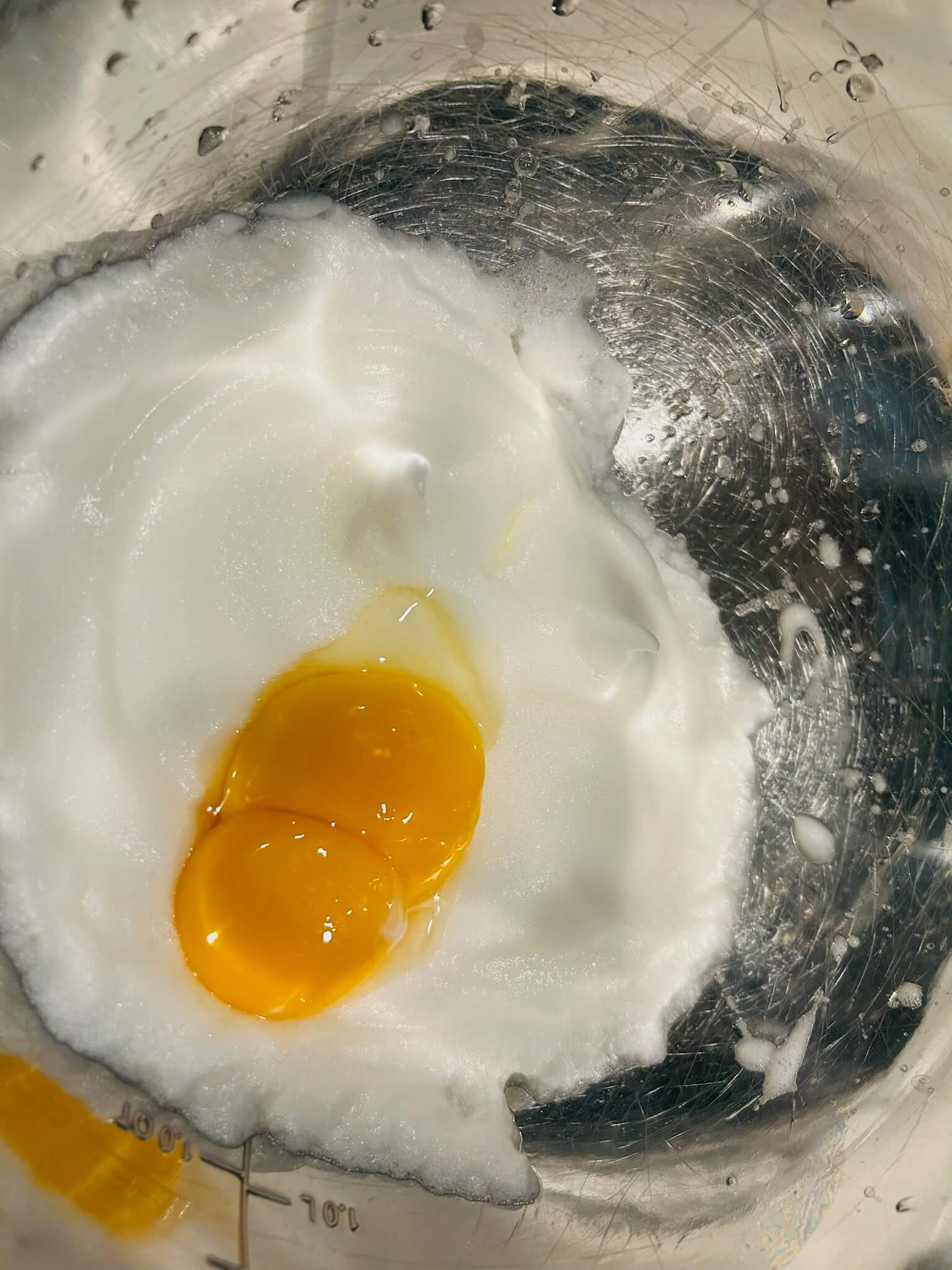8. 머랭에 아까 분리한 노른자를 넣어 잘 섞어줍니다.