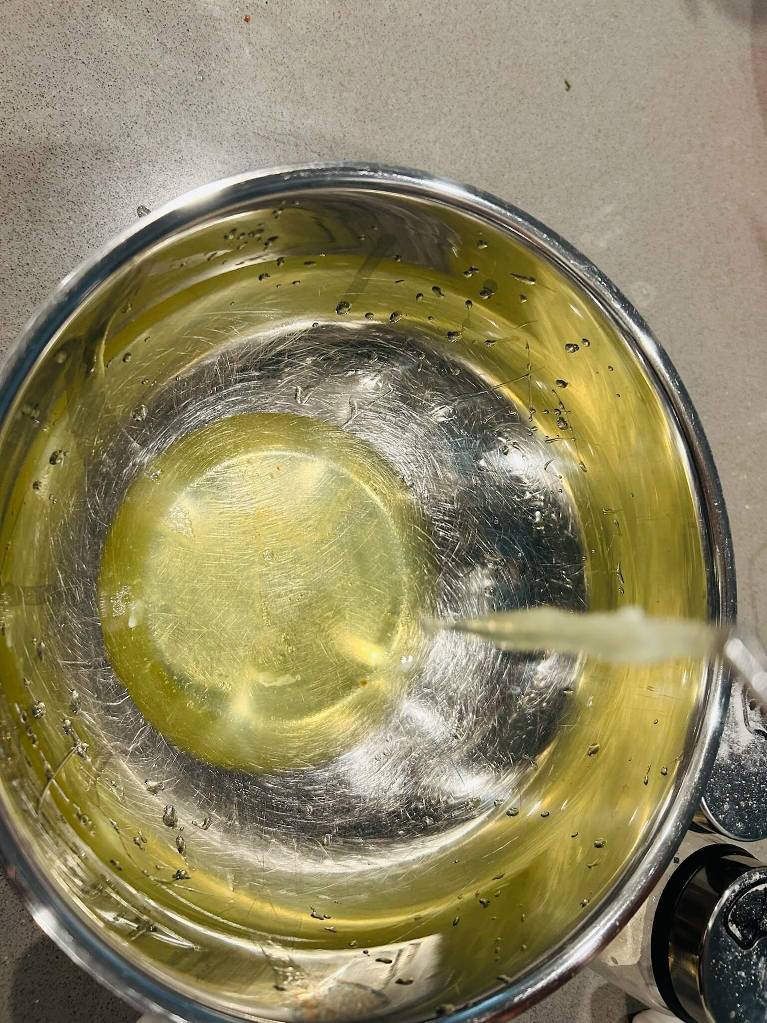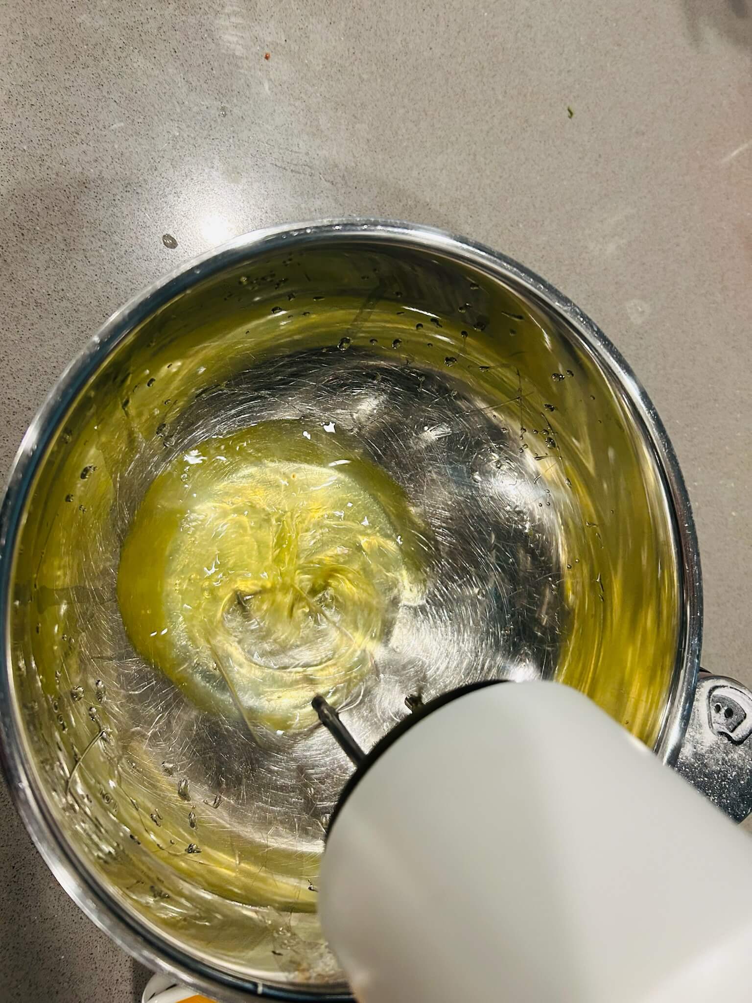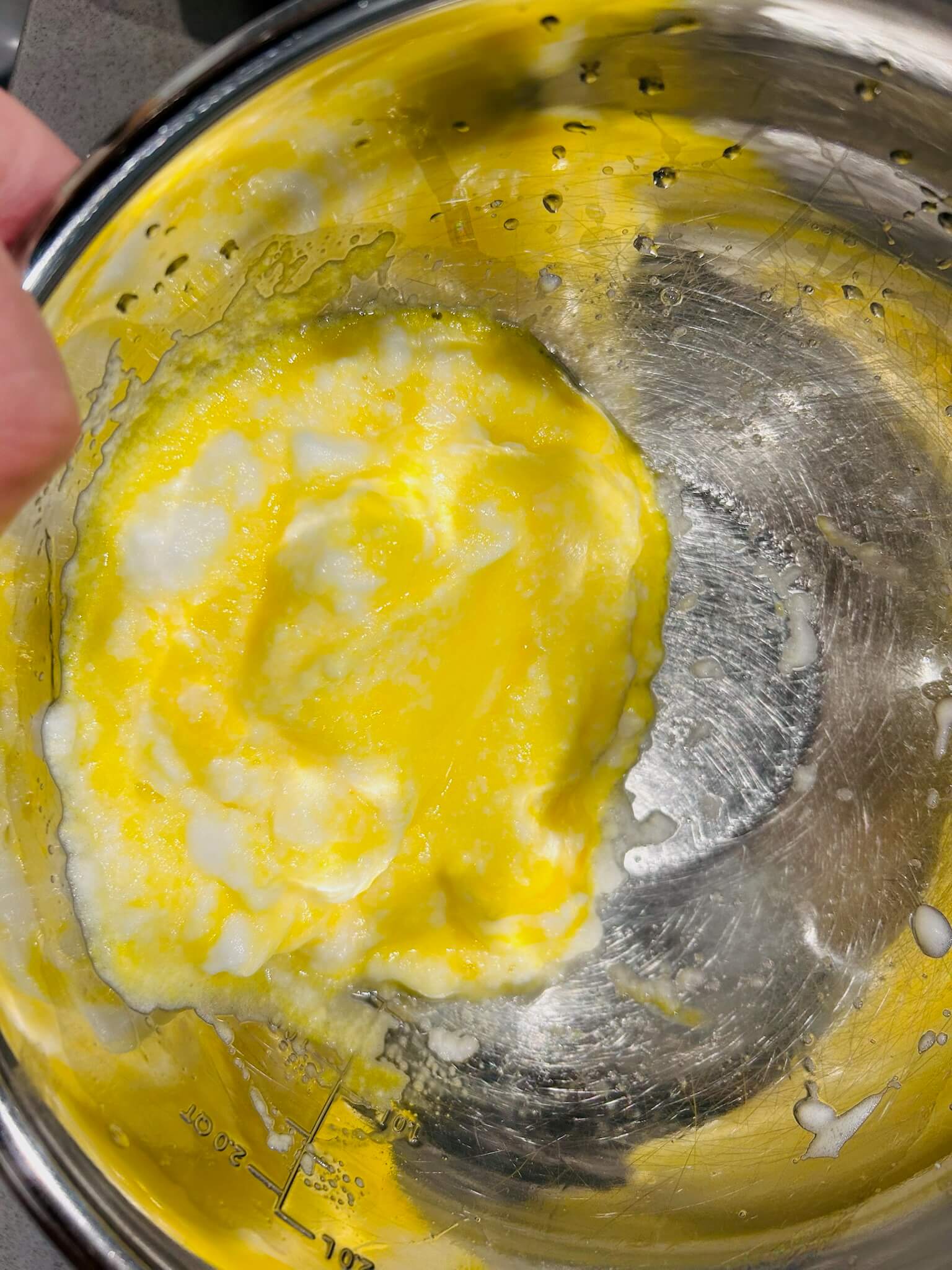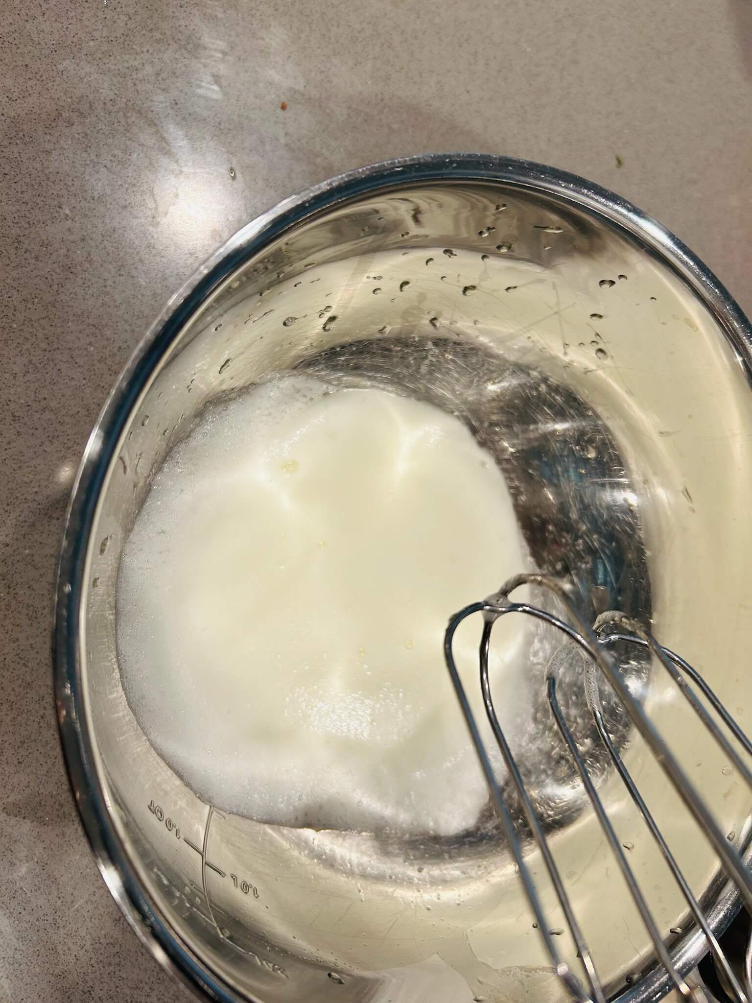 4. 휘핑기로 거품을 뿔 올라올 정도로 내줍니다.