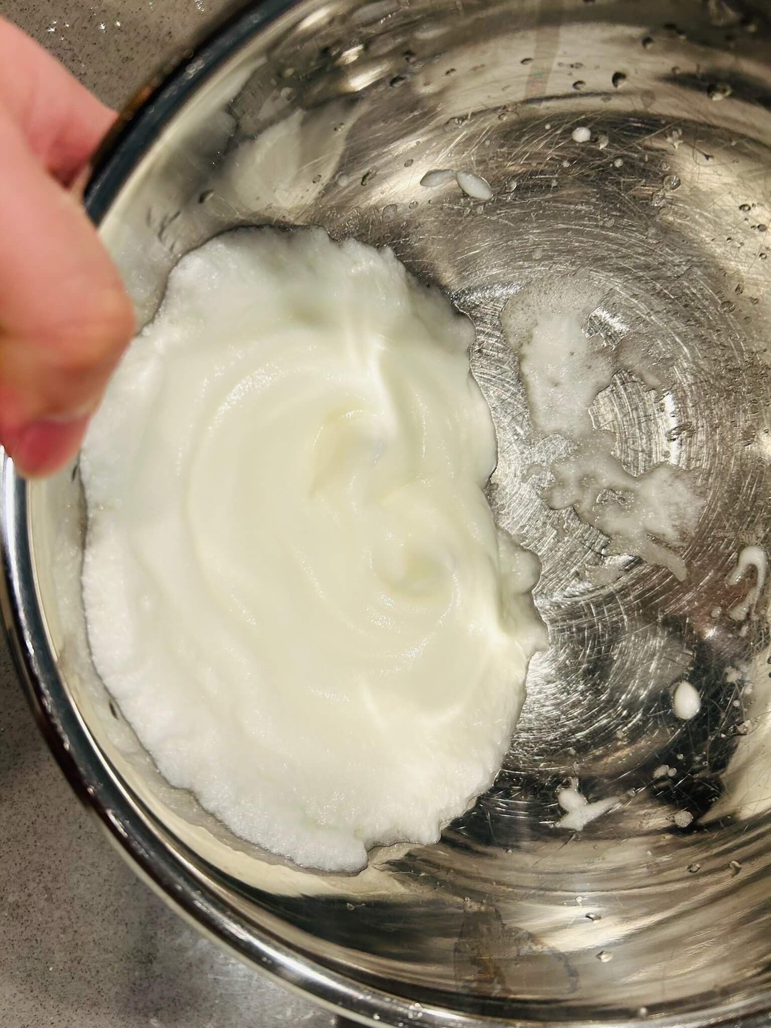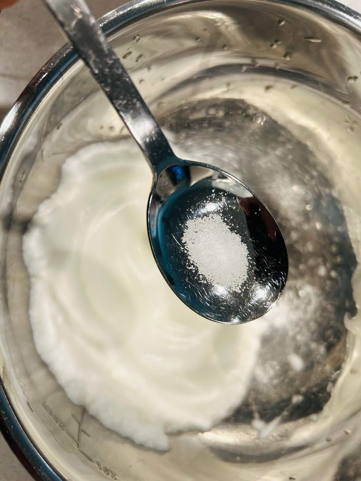 7. 설탕 소금을 넣고 머랭을 잘 섞어줍니다.