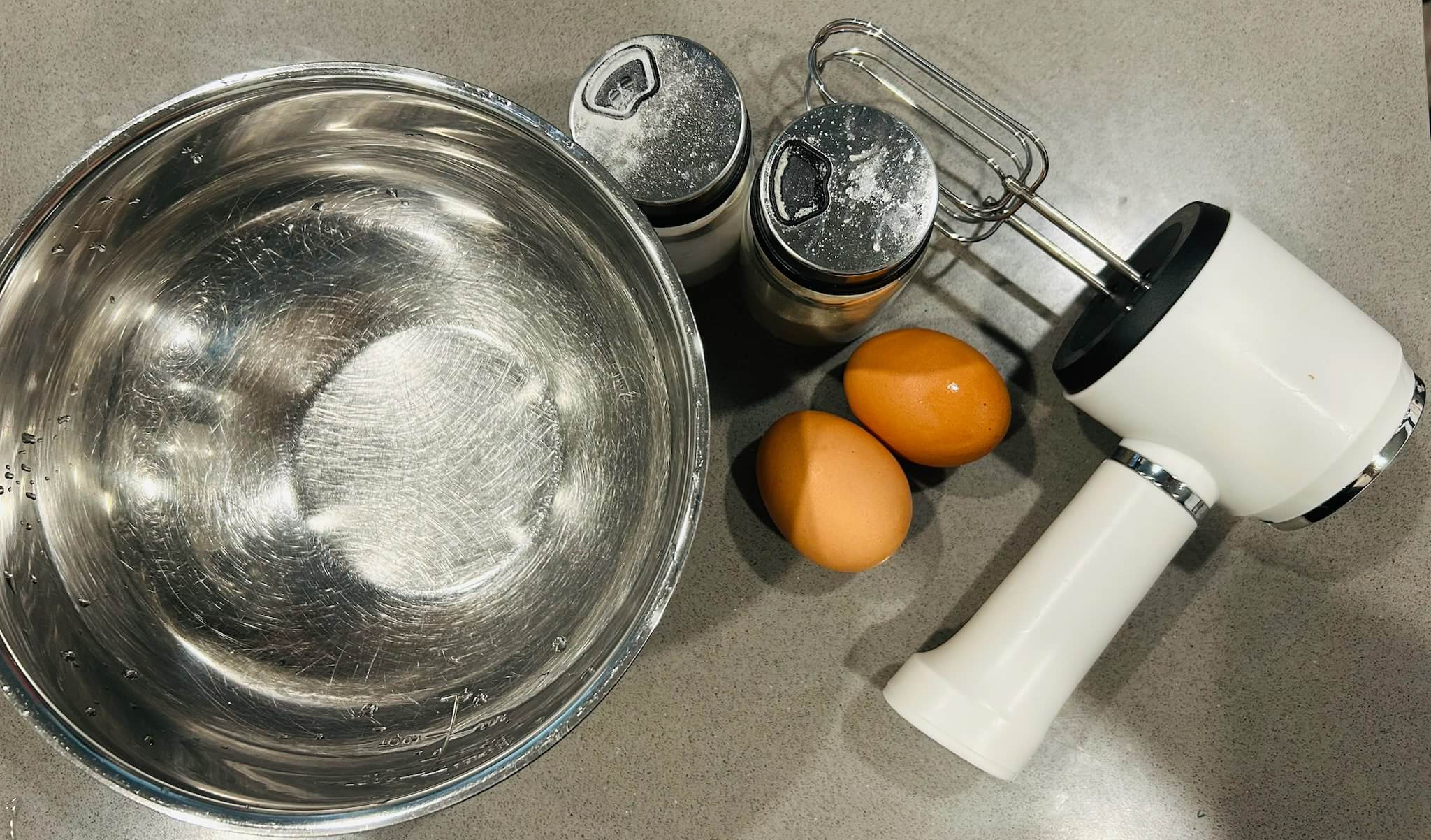 1. 믹싱볼, 믹서기, 계란, 소금, 설탕을 준비해 줍니다.