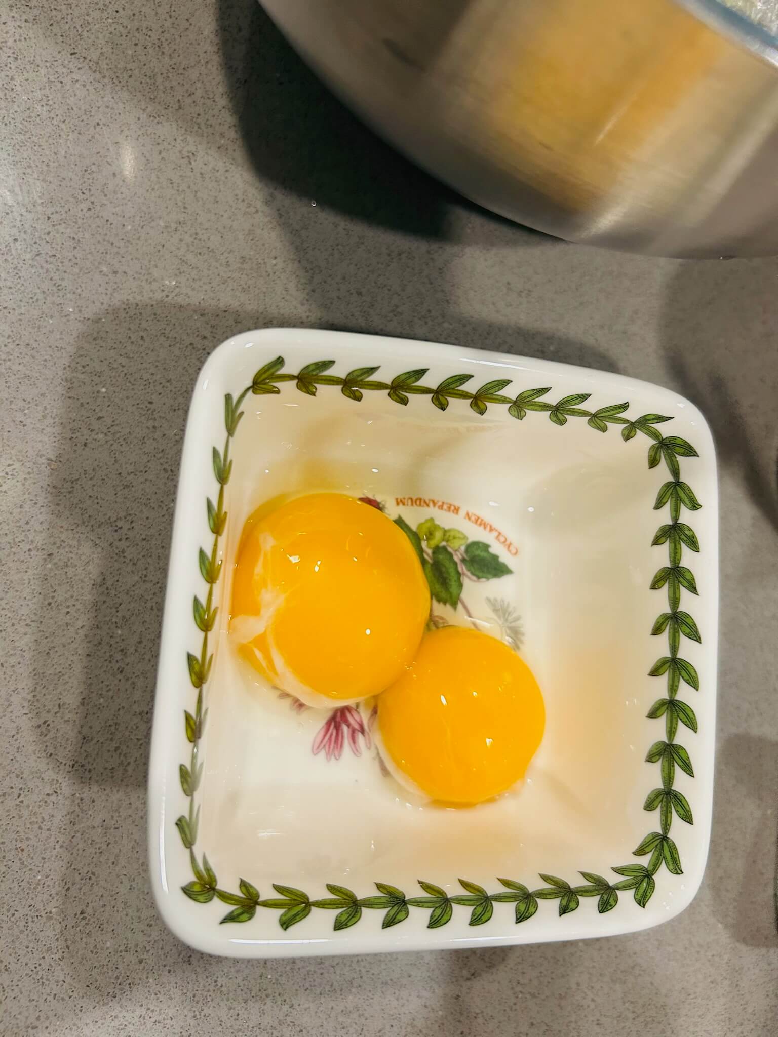 2. 계란 두 개를 흰자와 노른자로 분리해 줍니다.