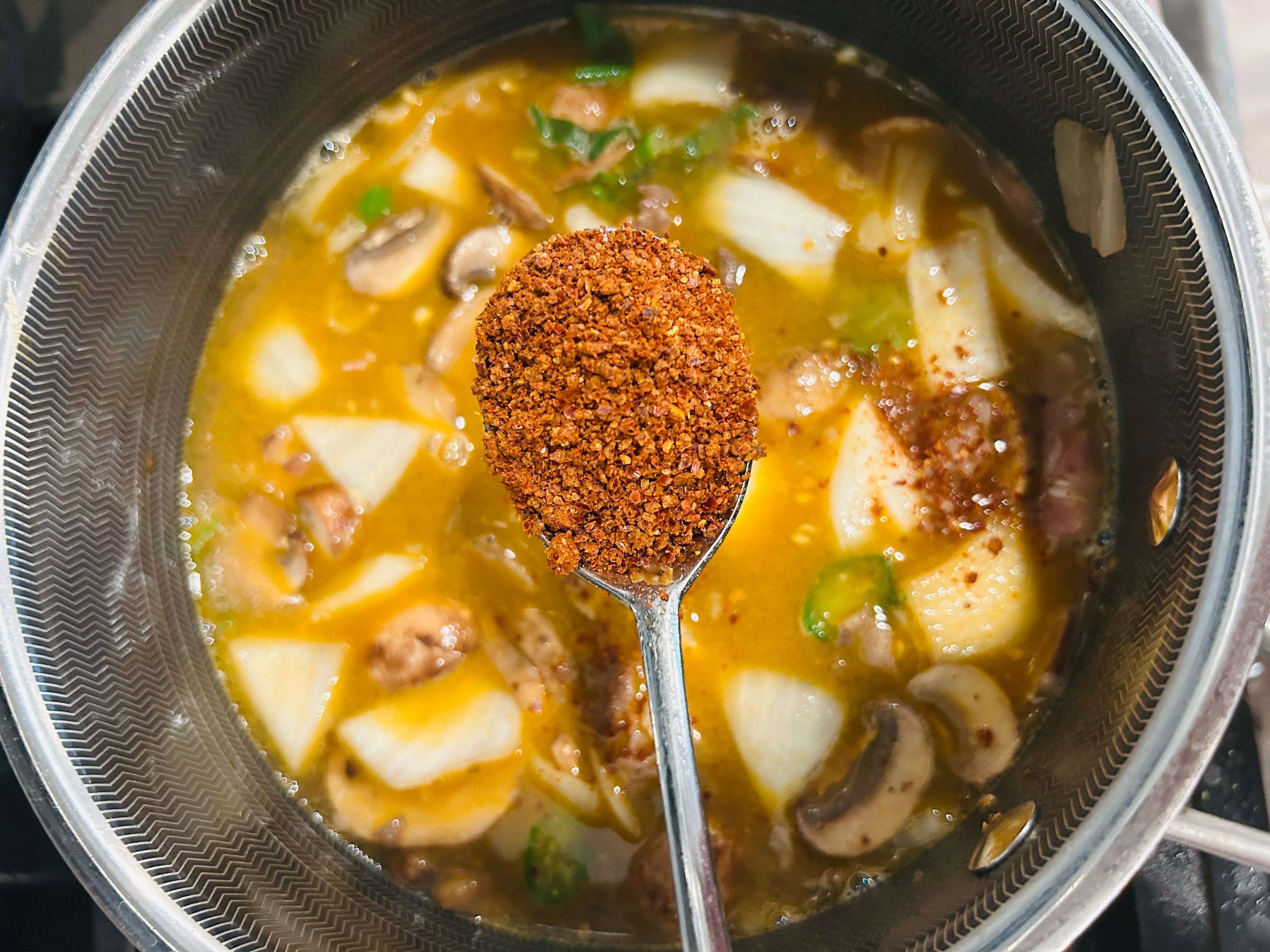 5. 고춧가루를 한숟갈 넣어줍니다.