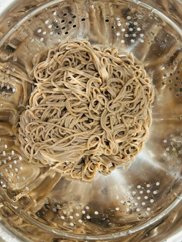 2. 삶은 메밀국수는 찬물에 씻어서 준비해 줍니다.