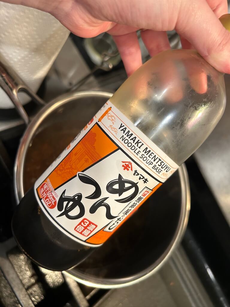 3. 냄비에 물을 넣고 쯔유를 넣어줍니다. (간을 보면서 넣어주시면 됩니다.)