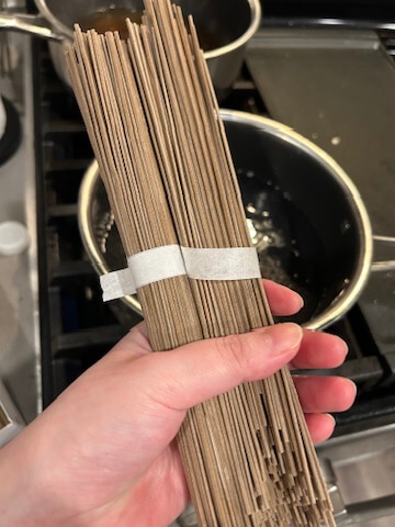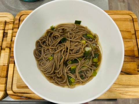 5. 육수가 끓으면 준비된 메밀국수를 넣어 끓여줍니다.