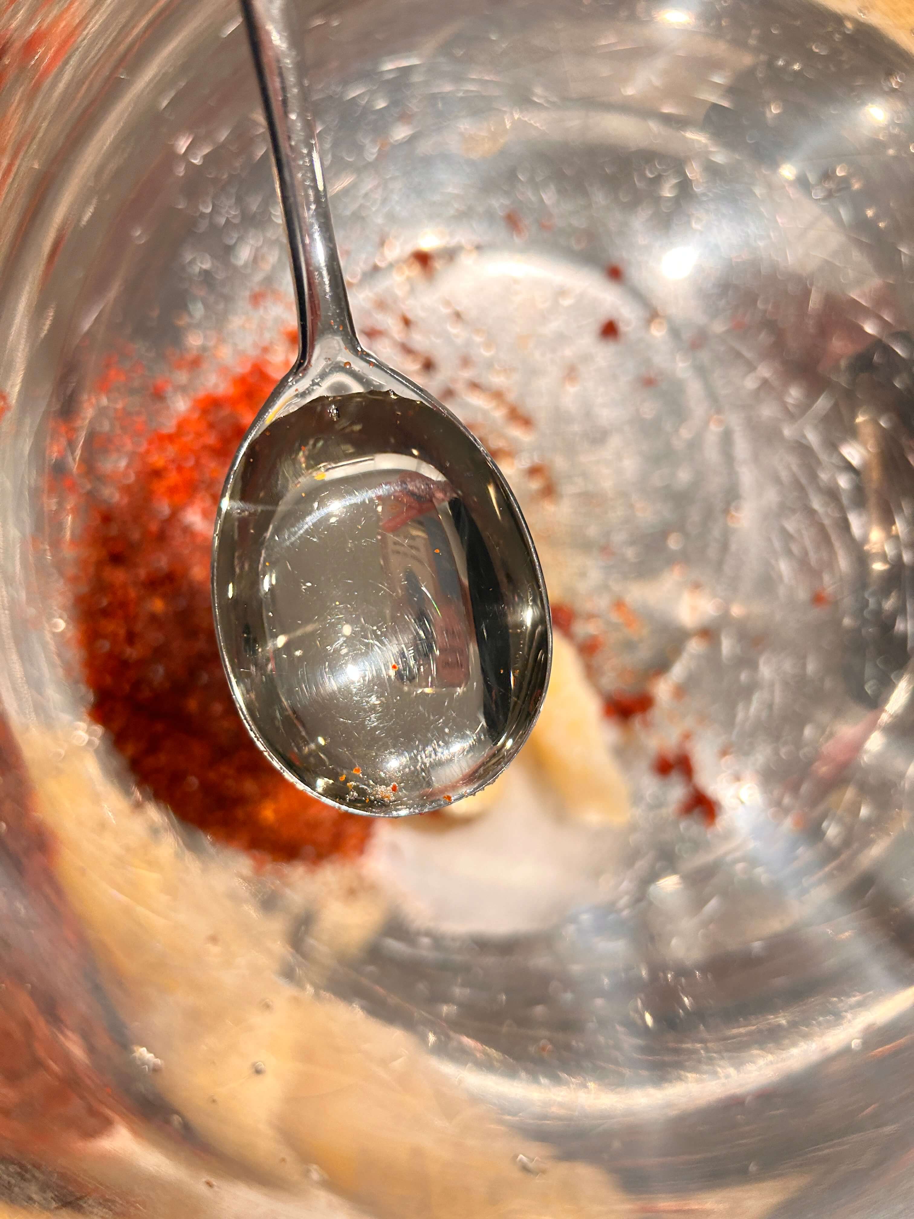 6. 까나리 액젓 2 숟갈, 식초 1 숟갈, 간장 2 숟갈을 넣어줍니다.