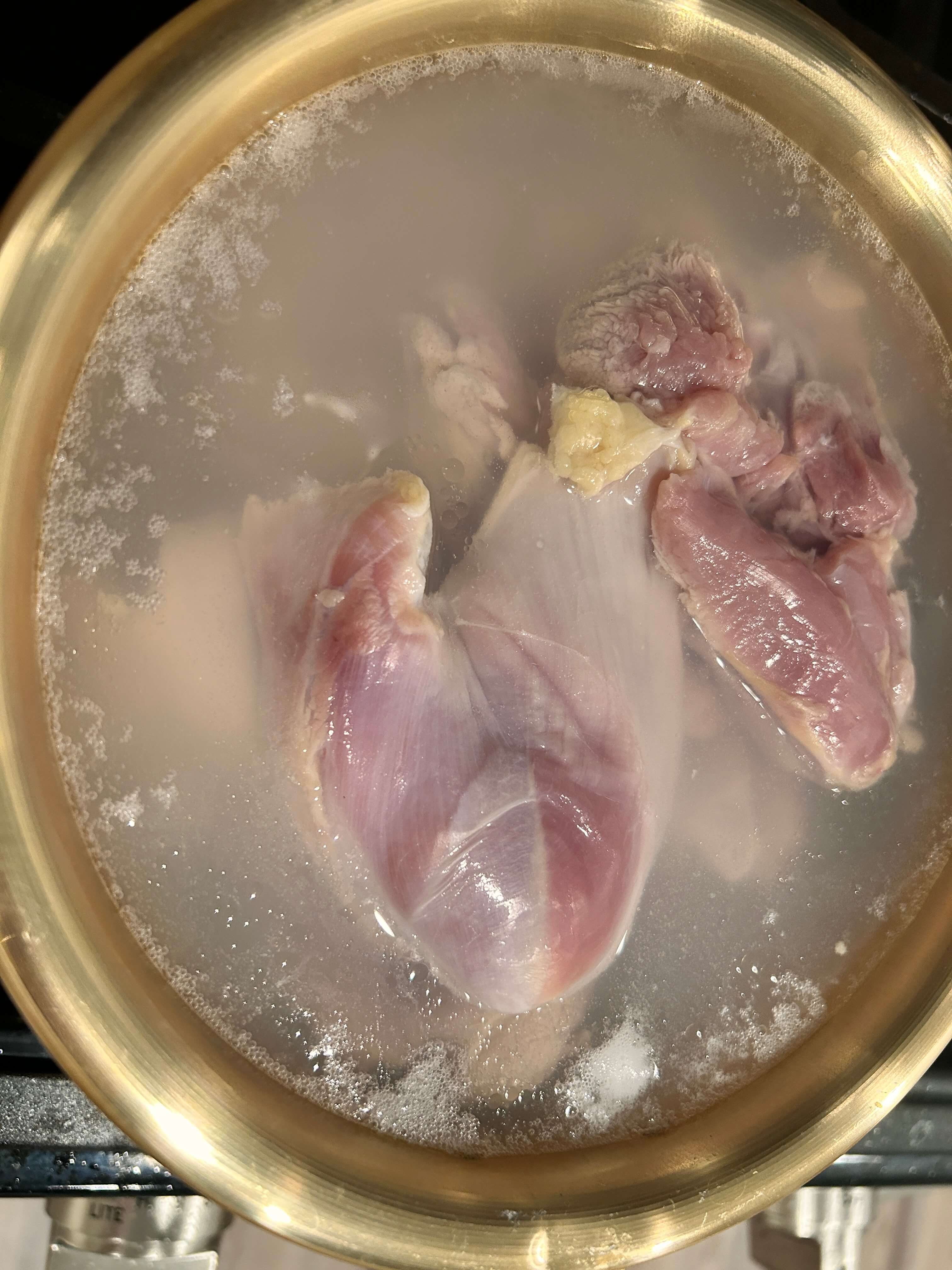 3. 닭고기는 흐르는 물에 씻고, 지방을 제거해 줍니다. (지방제거는 선택)