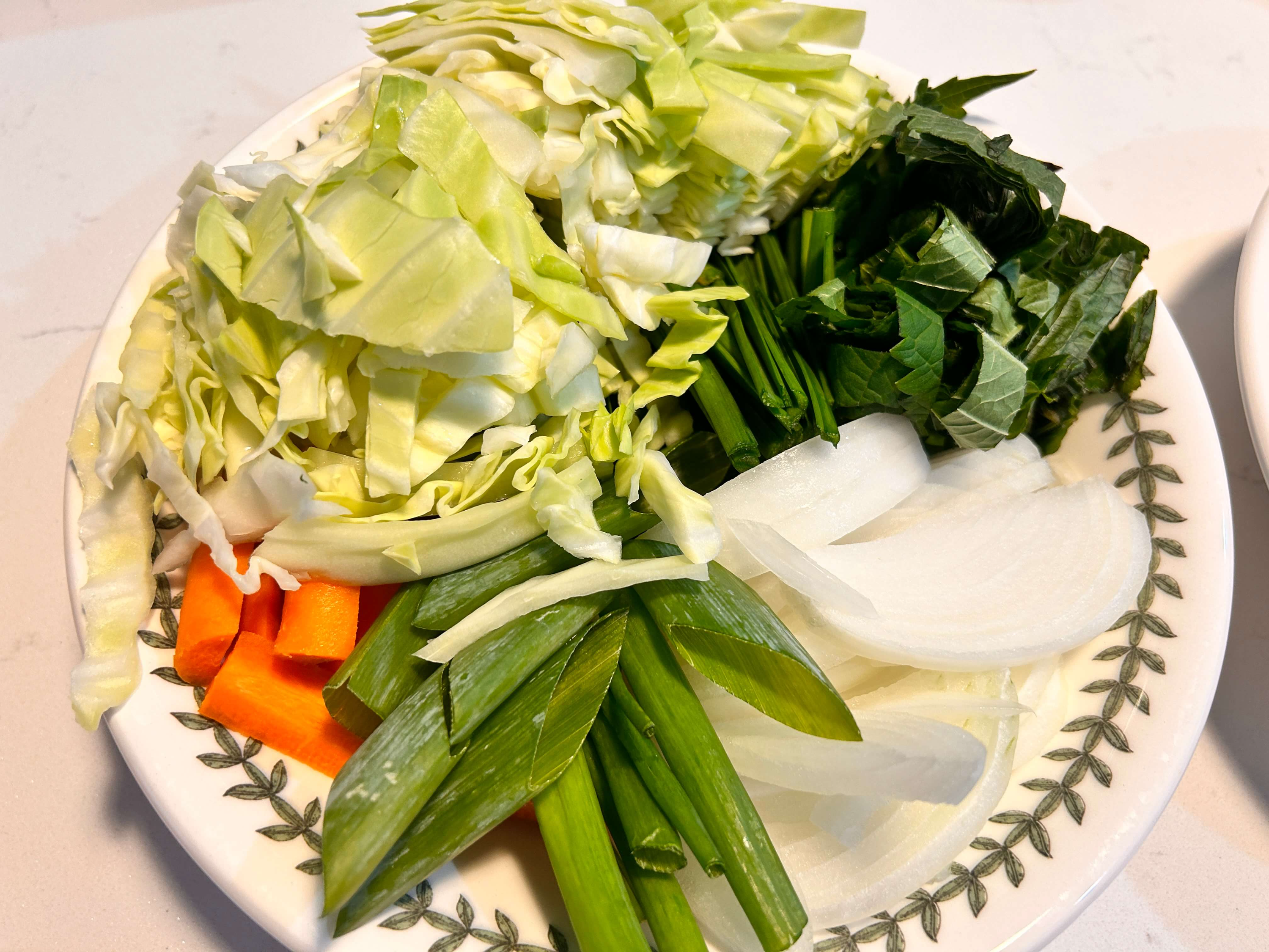 3. 양배추, 당근, 양파, 대파, 부추, 깻잎을 손질해서 준비해 줍니다.