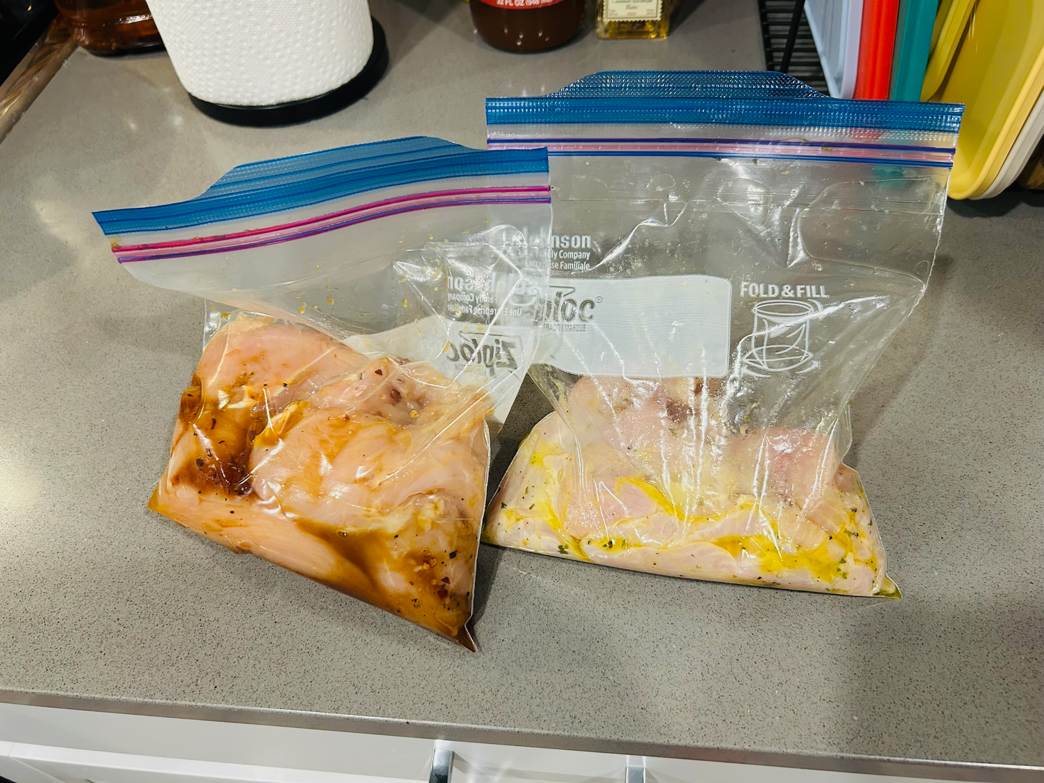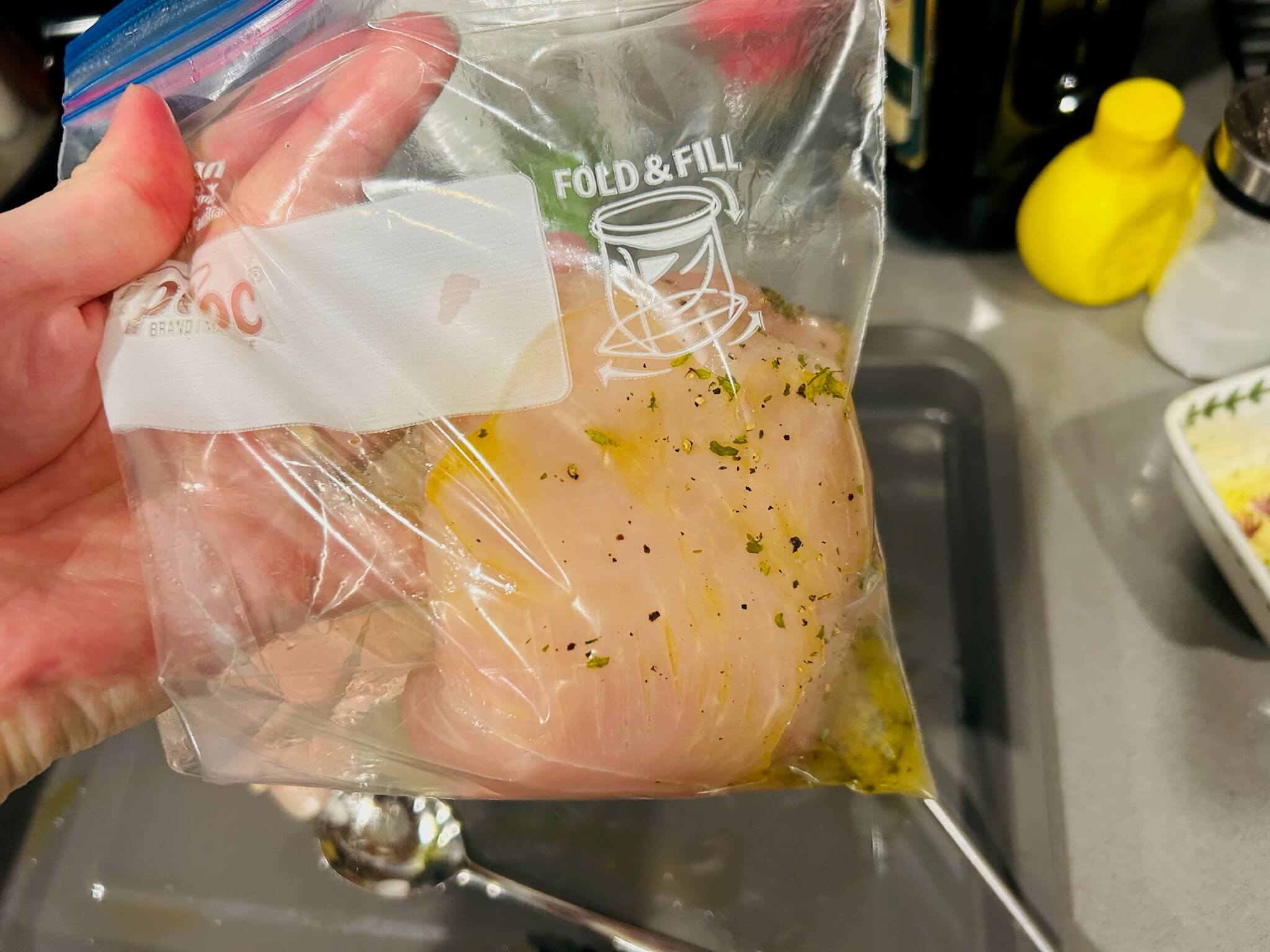 4. 봉지나 밀폐용기에 닭가슴살을 넣고 소스를 넣어 잘 재워줍니다.