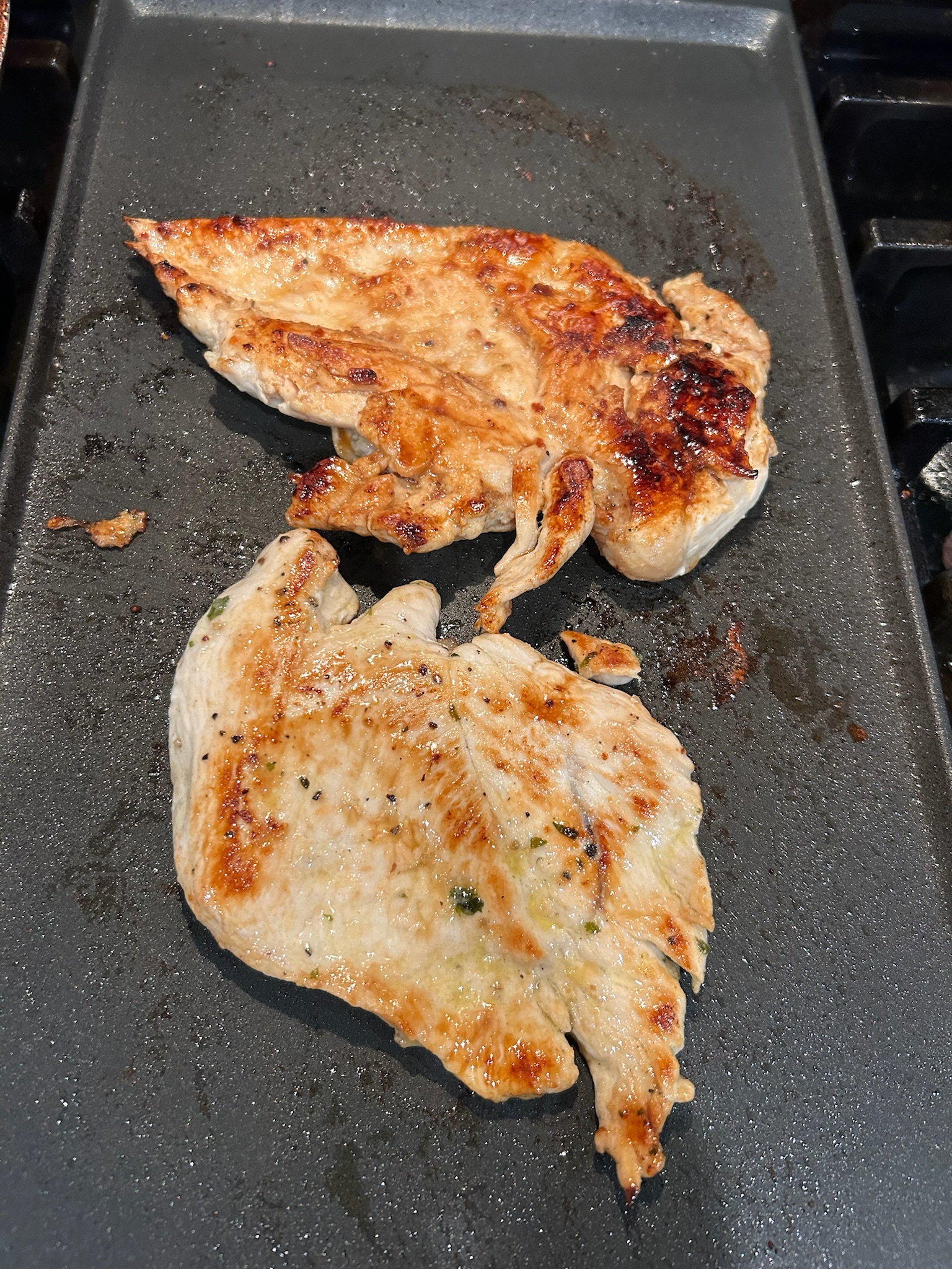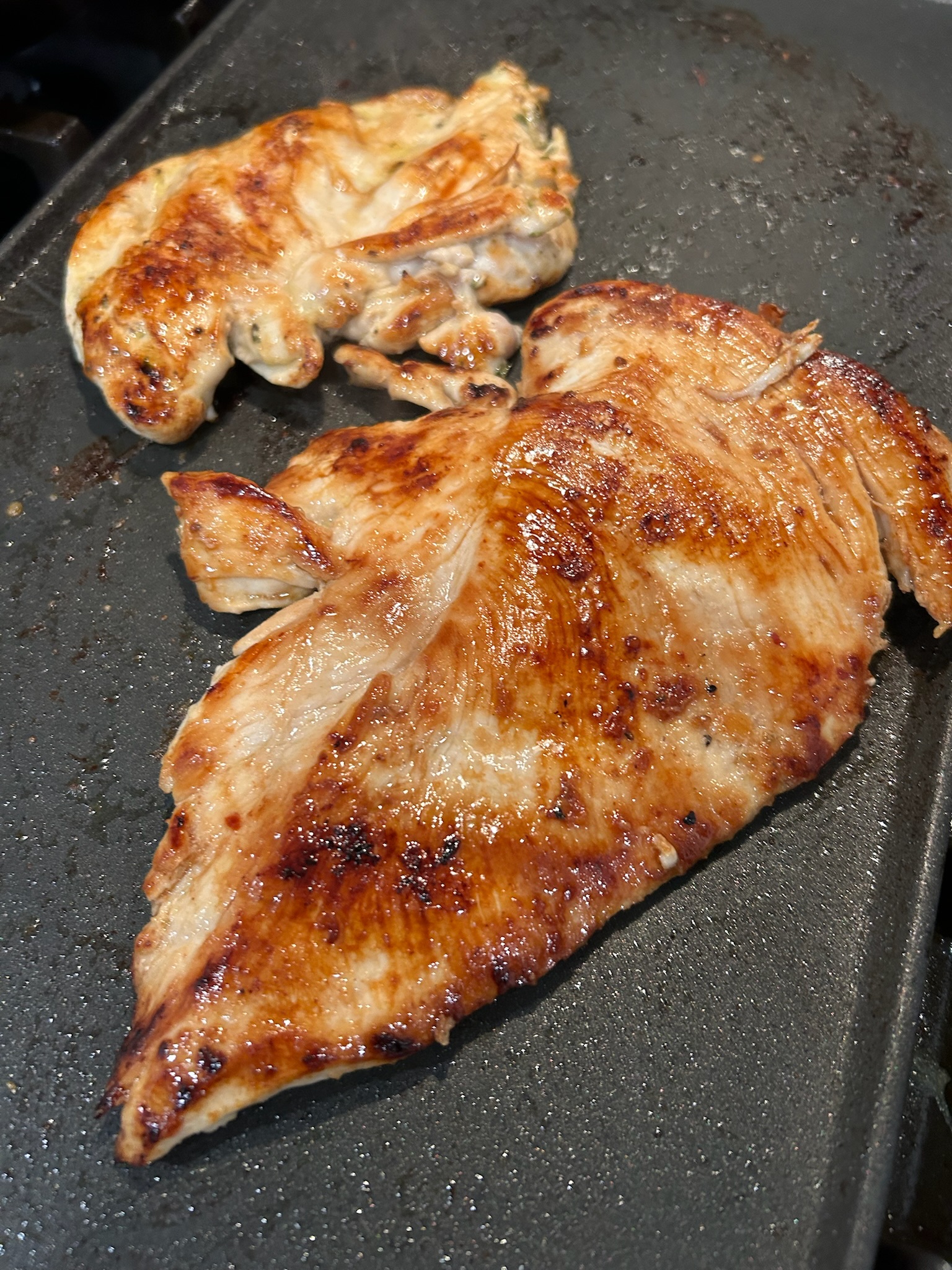 닭가슴살이라는 재료 자체가 주는 인상은 다이어트와 퍽퍽하고 맛없는 재료이지 않을까 싶습니다. 저도 당관리를 해야 하는 지금 상황에 닭가슴살을 먹어야 한다는 좌절감에 빠졌습니다. 그런데 이렇게 간단한 소스만 활용했을 뿐인데 퍽퍽함 없이 부드럽고 은은한 양념맛에 닭가슴살스테이크를 즐겁게 먹을 수 있게 되었습니다. 이 맛이라면 외식으로도 저는 사 먹겠다는 생각이 들 정도입니다. 한국에도 닭가슴살을 얇게 썰어 파는지 모르겠는데 미국에 사시는 분들은 닭가슴살부위를 고르실 때 Thin sliced라고 적히신 걸 사시면 닭가슴살을 반정도로 잘라놓은 것을 사실 수 있습니다. 닭가슴살을 스테이크로 먹을 때 닭가슴살이 이렇게 얇은 게 부드럽고 맛있습니다. 닭가슴살을 통으로 구매해야 하신다면 얇게 져며서 양념에 재우시는 것도 추천드립니다. 닭가슴살 활용해서 건강하고 맛있는 한 끼 드셔보시는 거 추천드립니다.