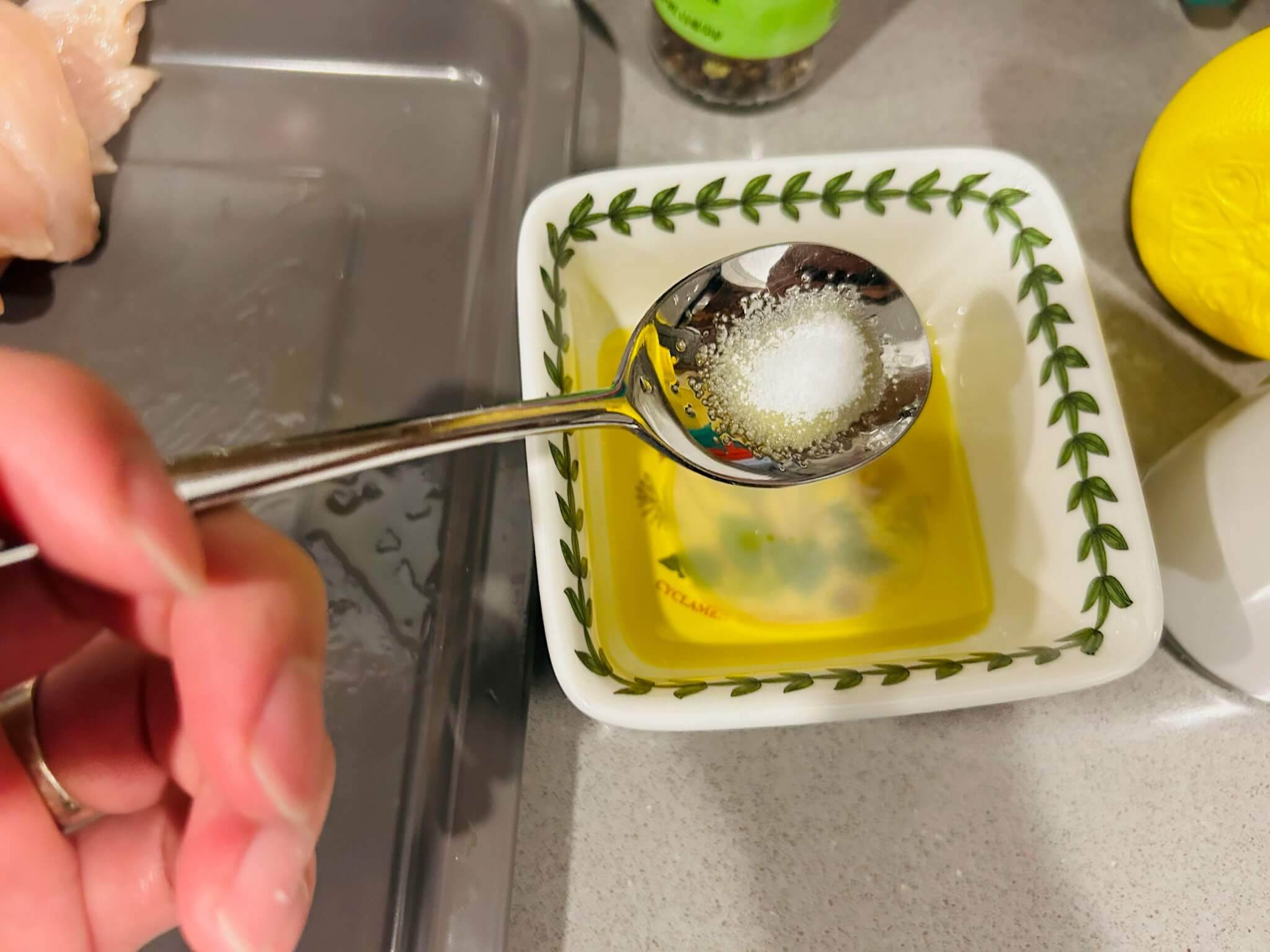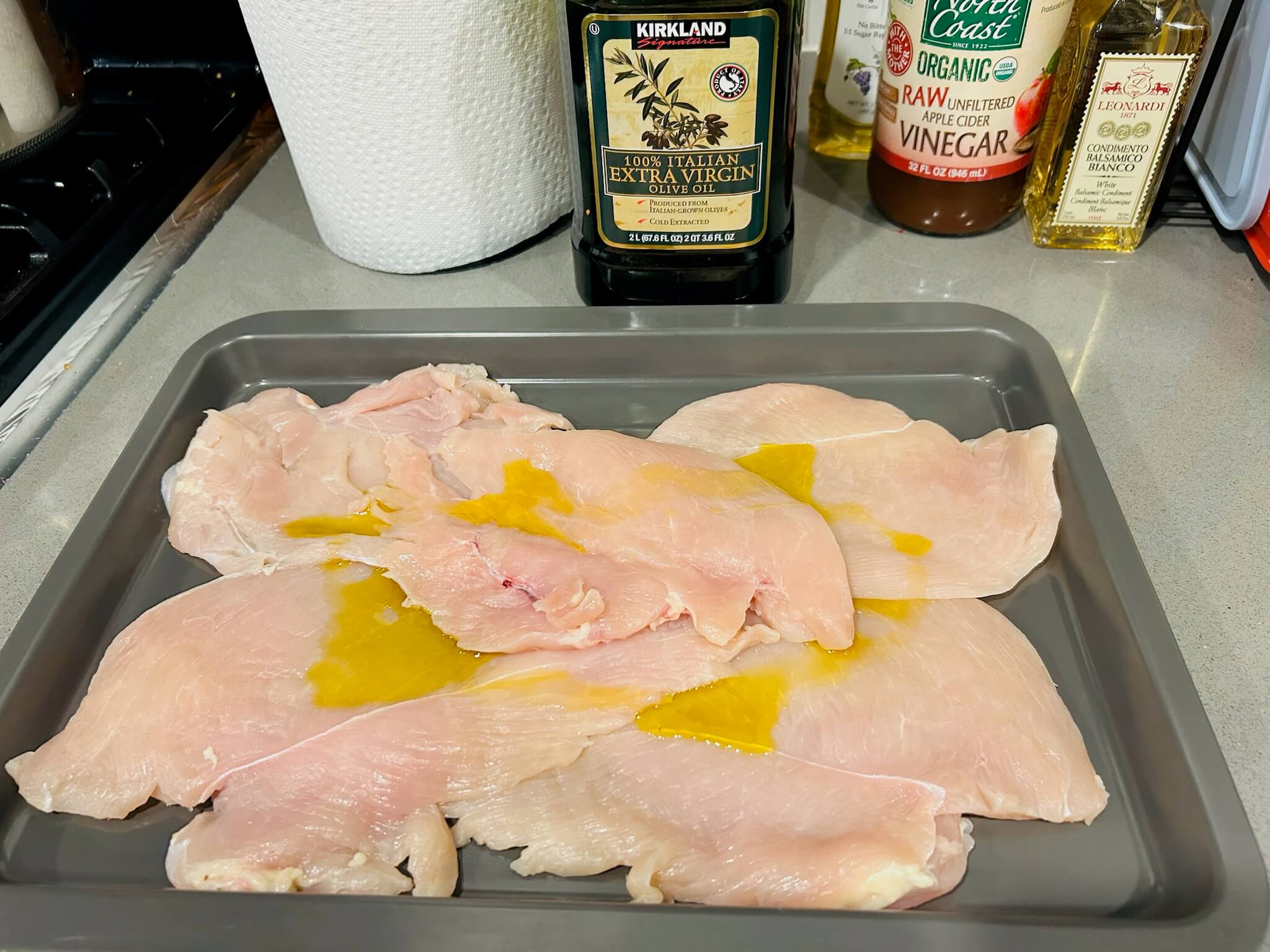 2. 닭가슴살을 올리브유를 뿌려 골고루 토닥여줍니다.