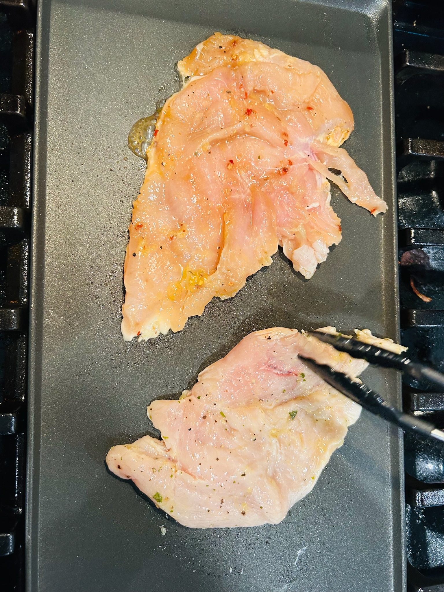9. 양념된 닭가슴살은 팬에 구워줍니다.
