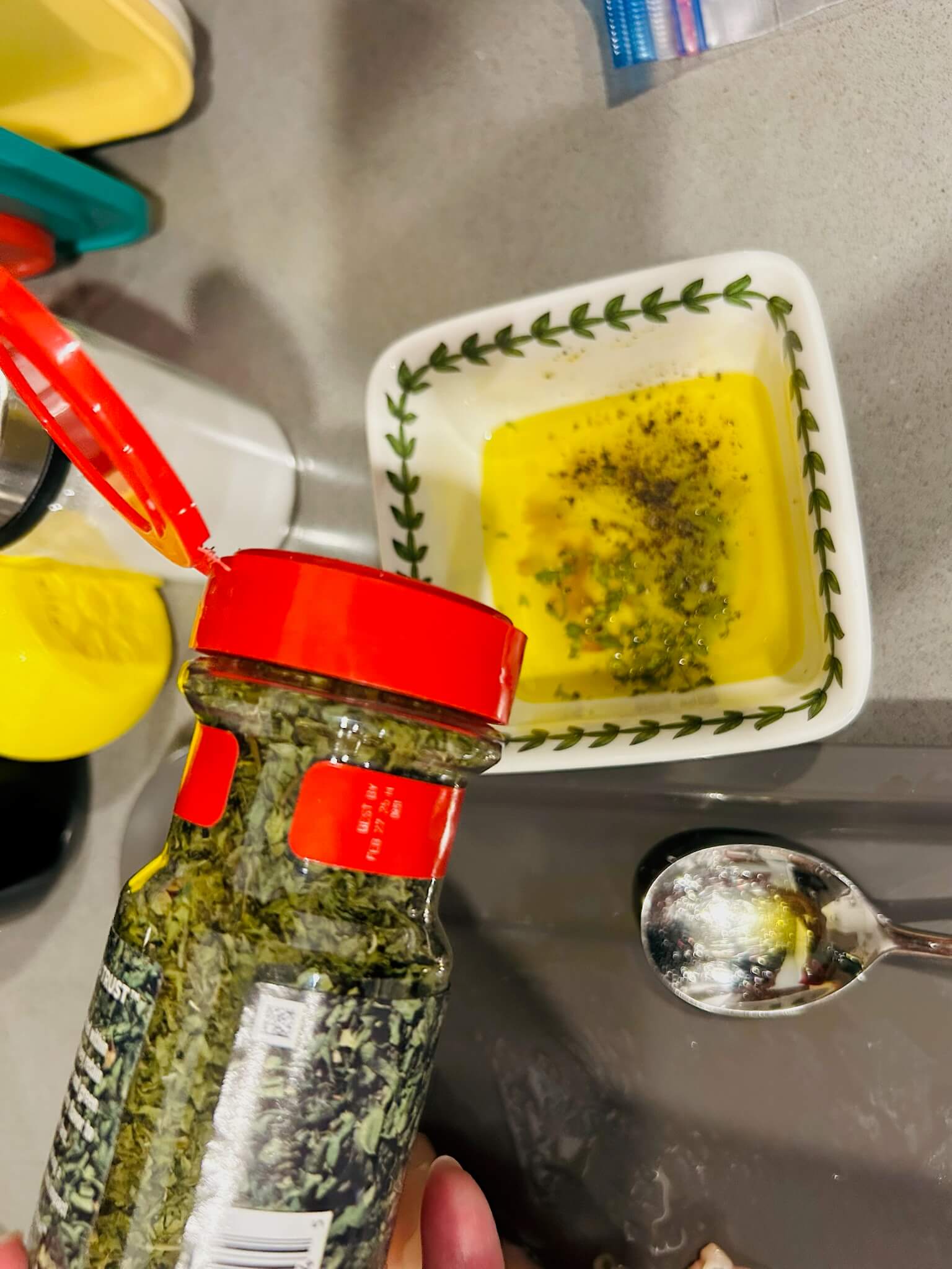 3. 기본맛으로는 올리브유 1 숟갈, 레몬즙 1 숟갈, 소금 0.5 숟갈, 후추 톡톡, 파슬리 톡톡 넣어서 잘 섞어줍니다.