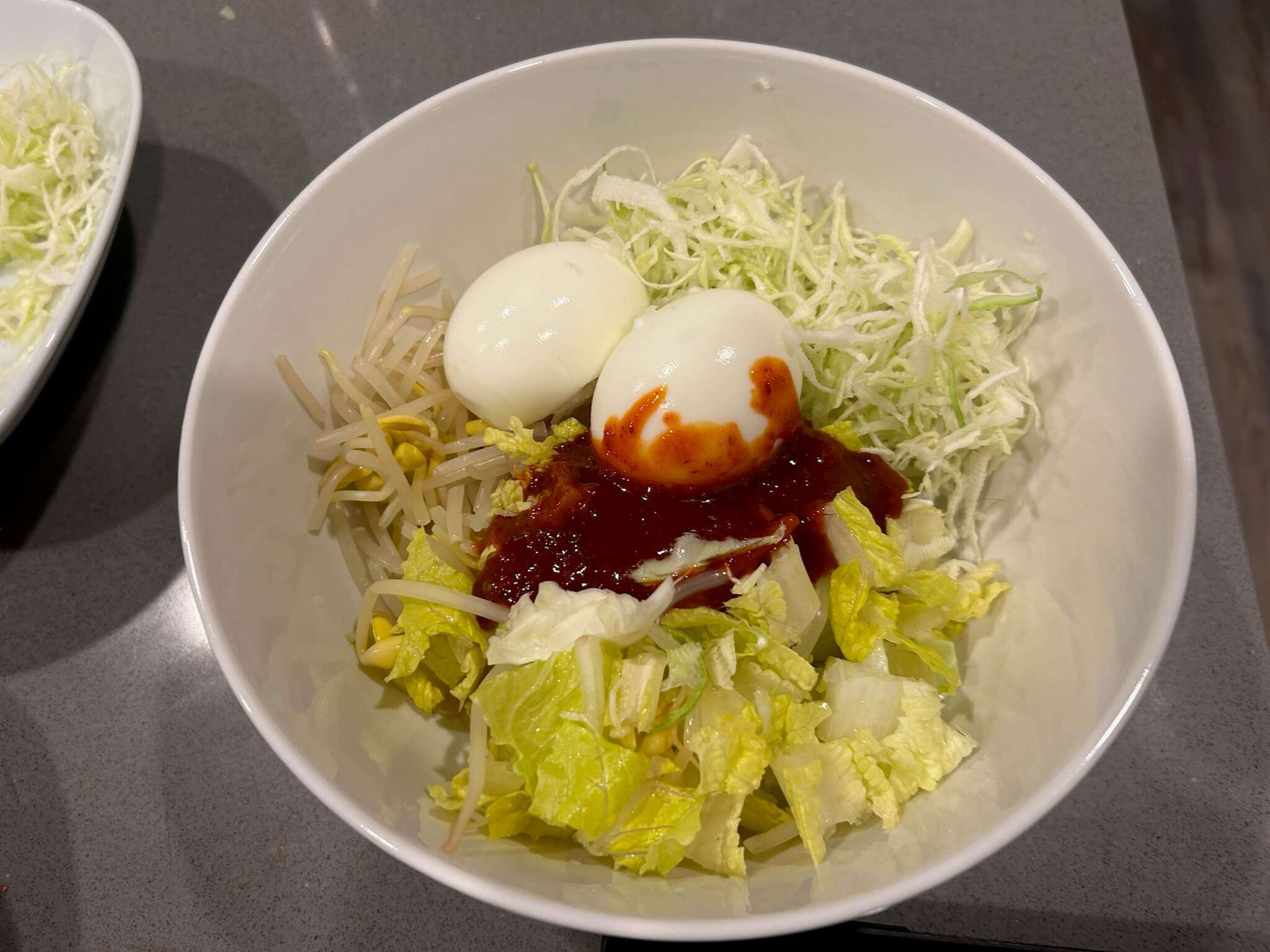 7. 준비된 야채를 쫄면 위에 올려줍니다.
