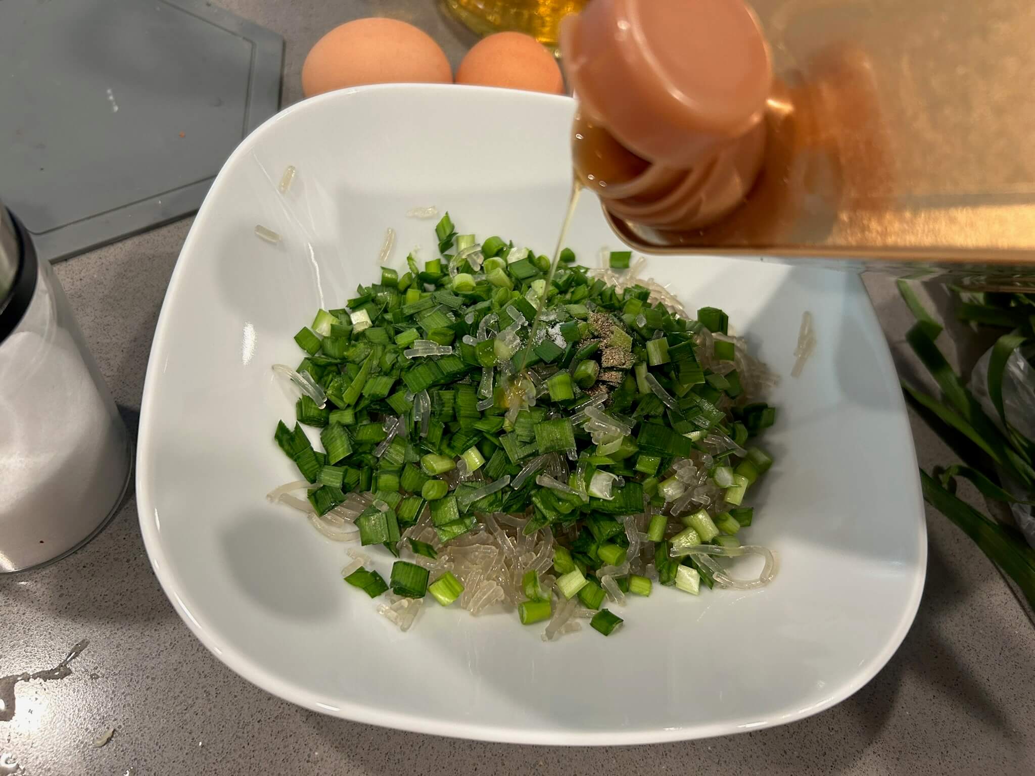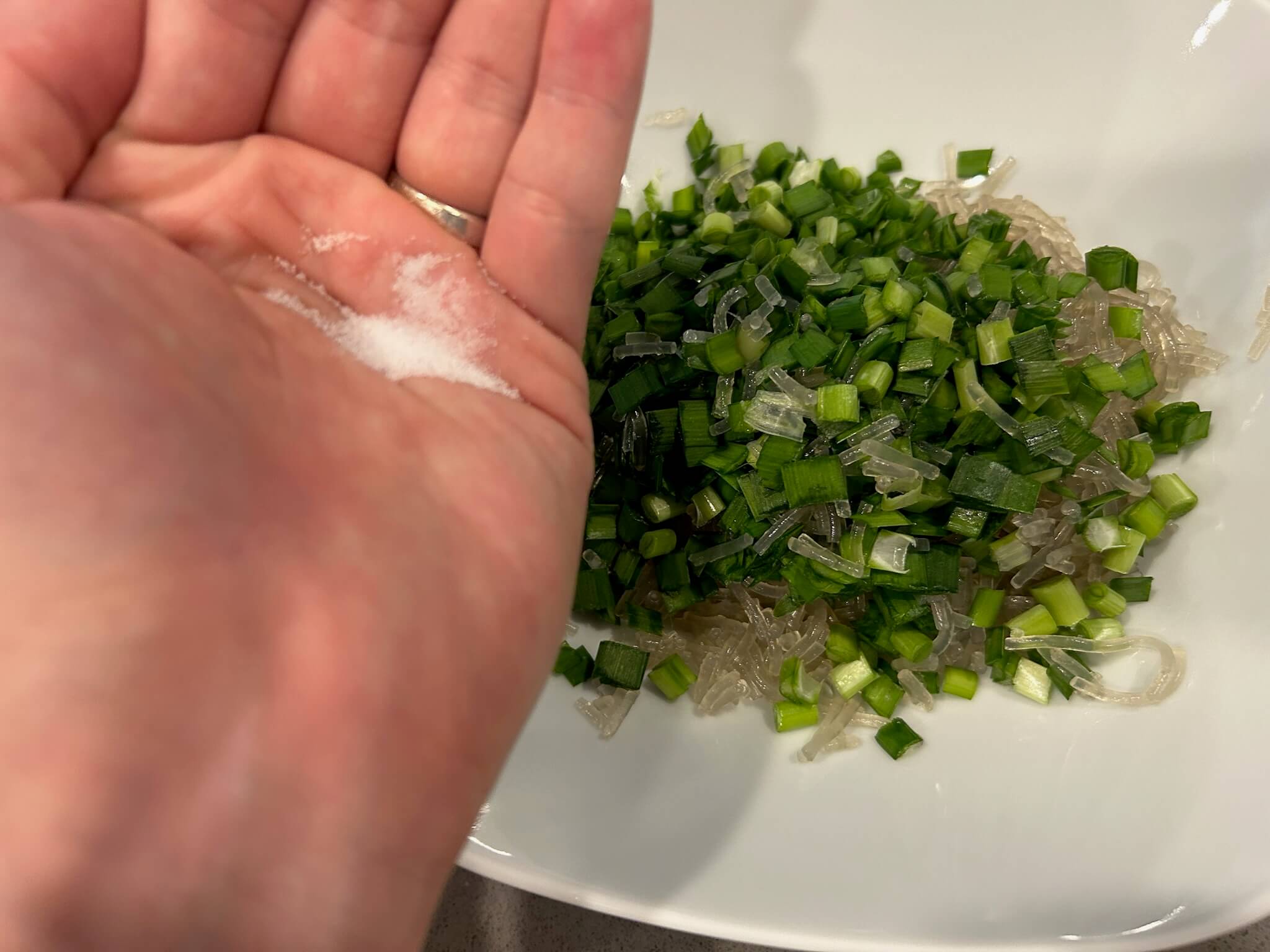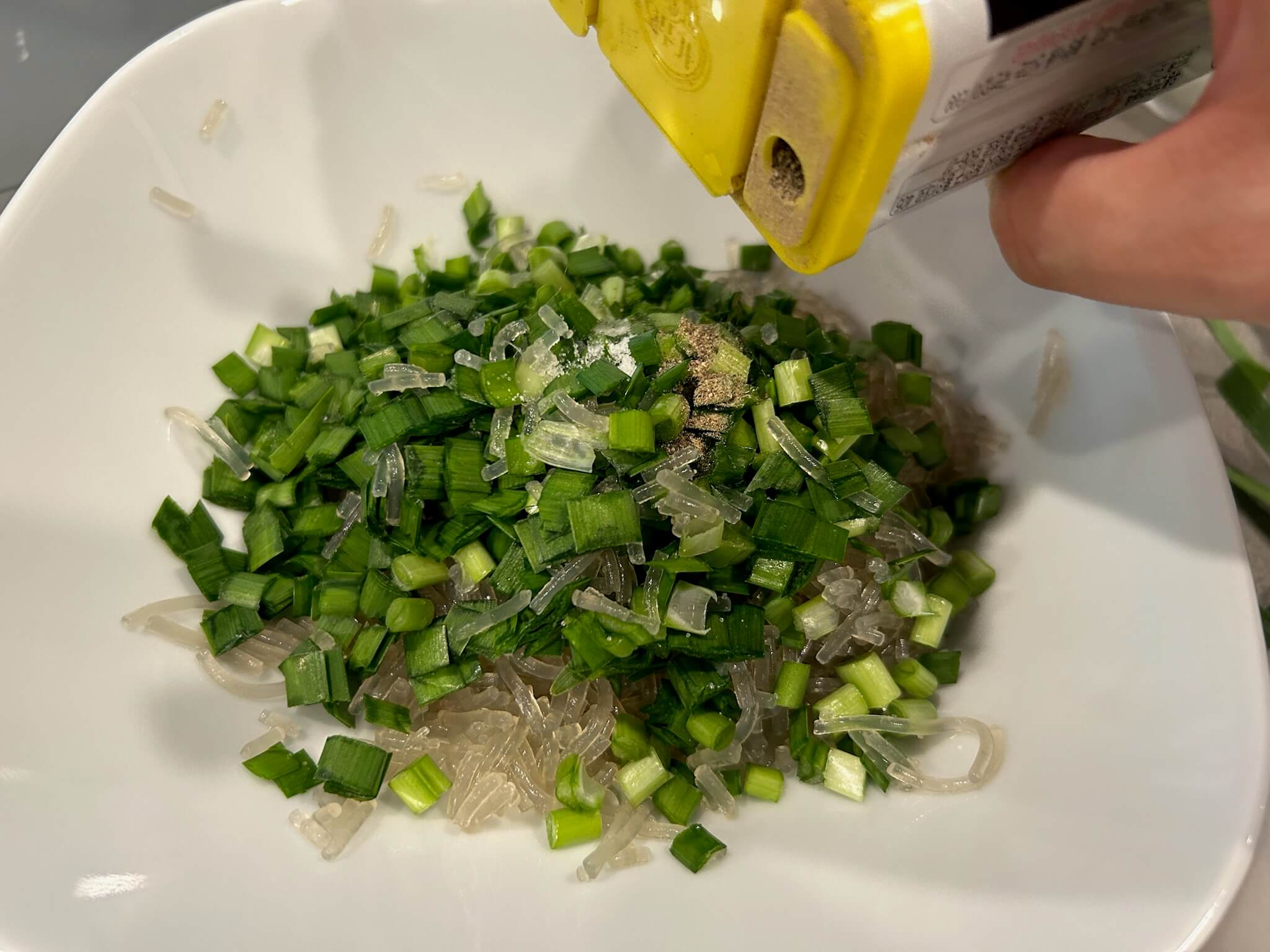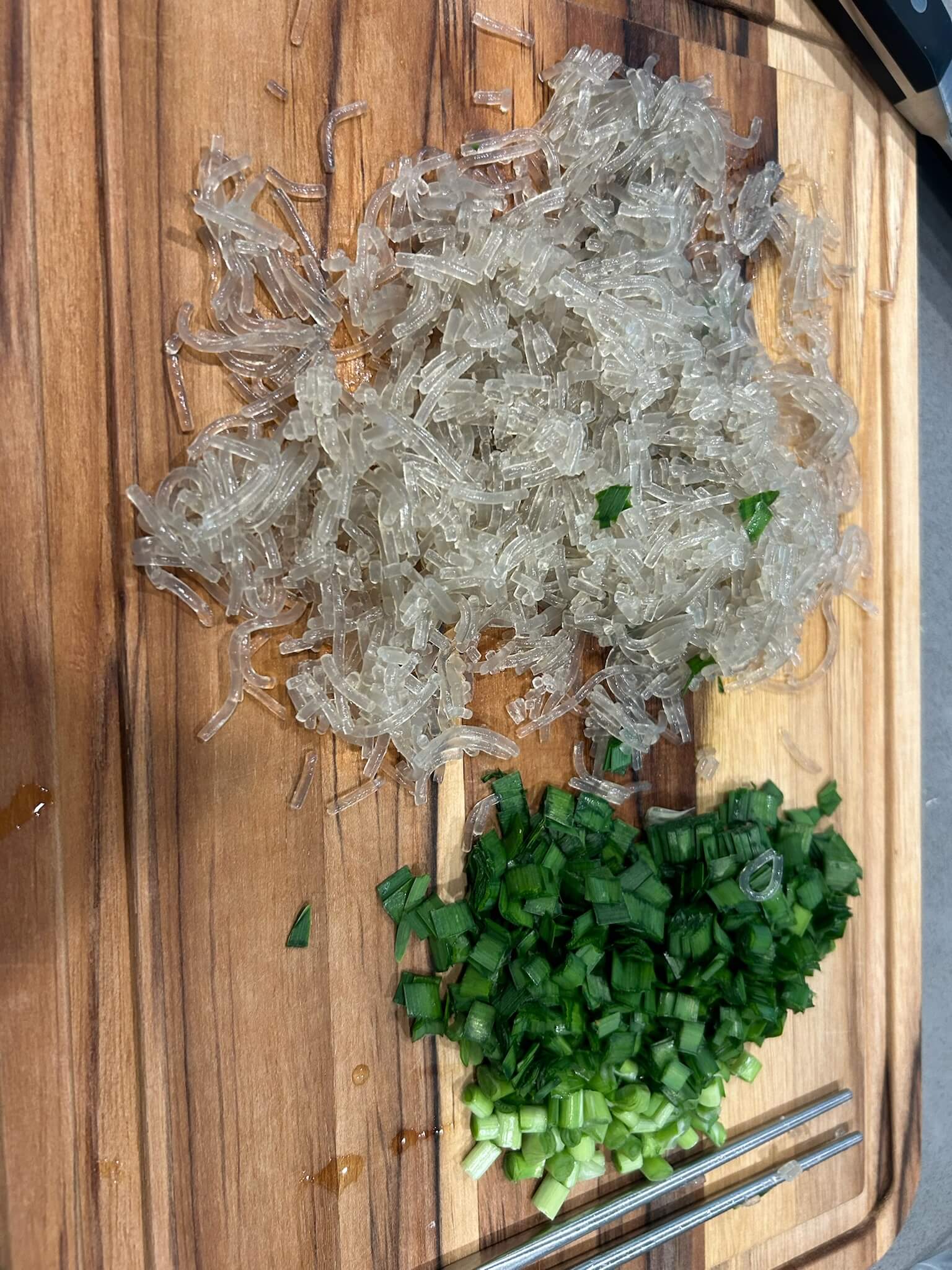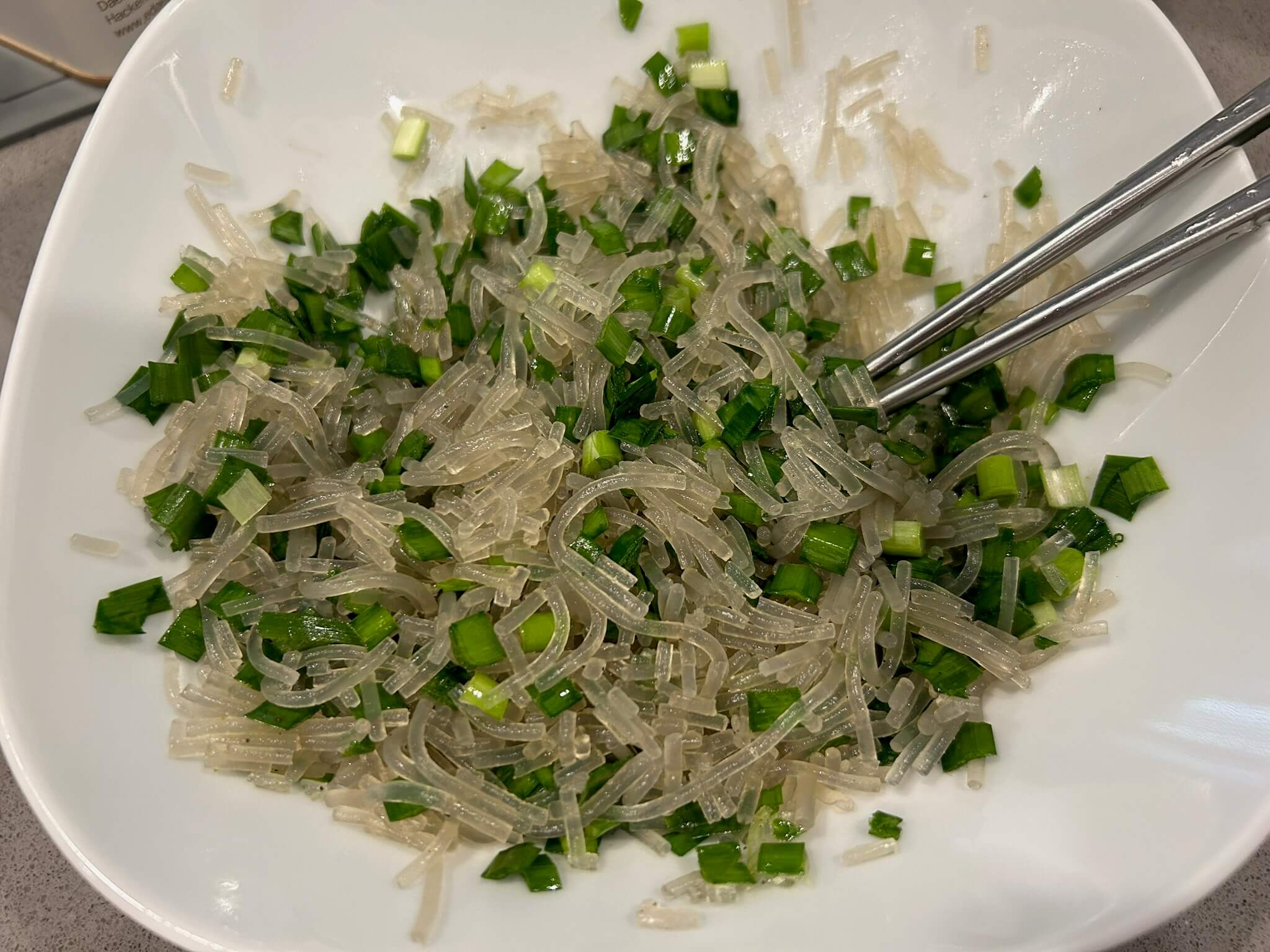 6. 당면과 쪽파를 볼에 담아줍니다.