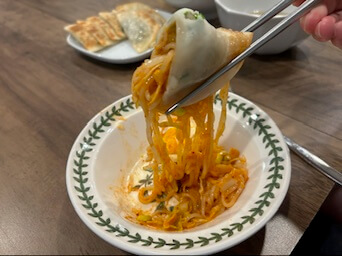 9. 쫄면과 납작 당면을 함께 먹어줍니다.