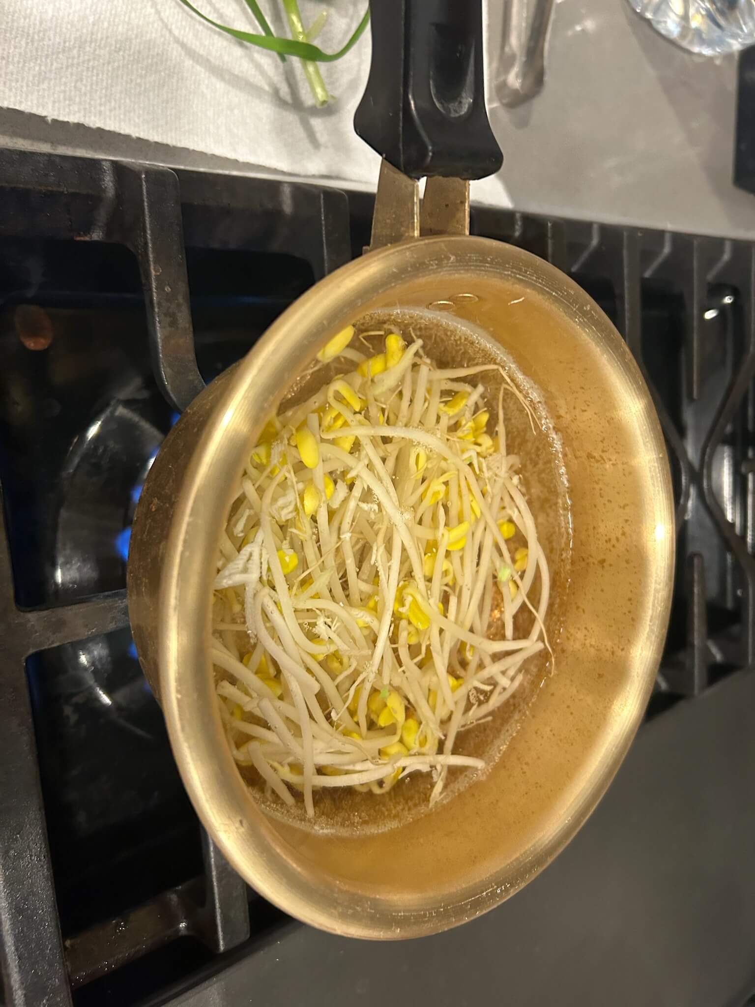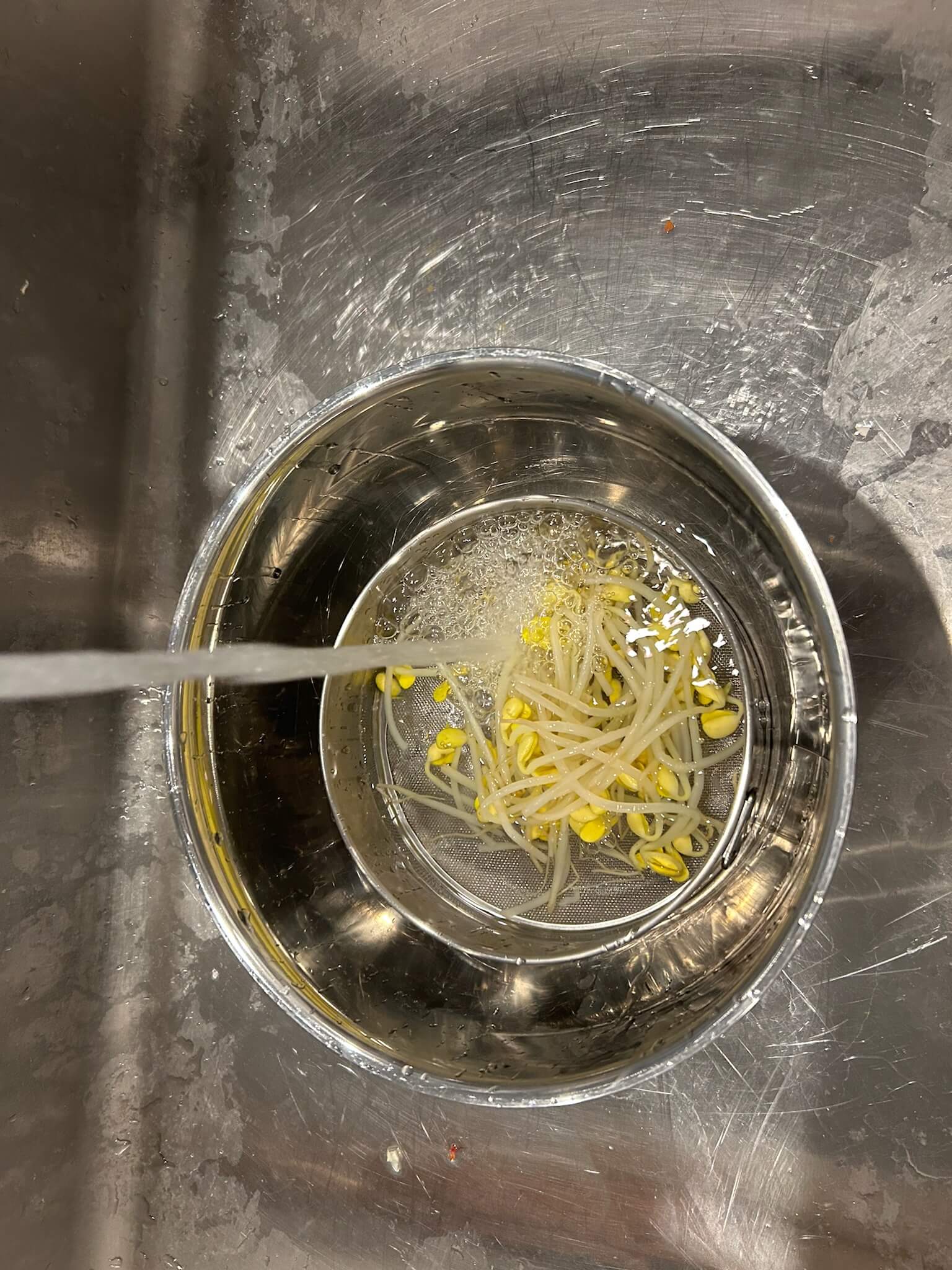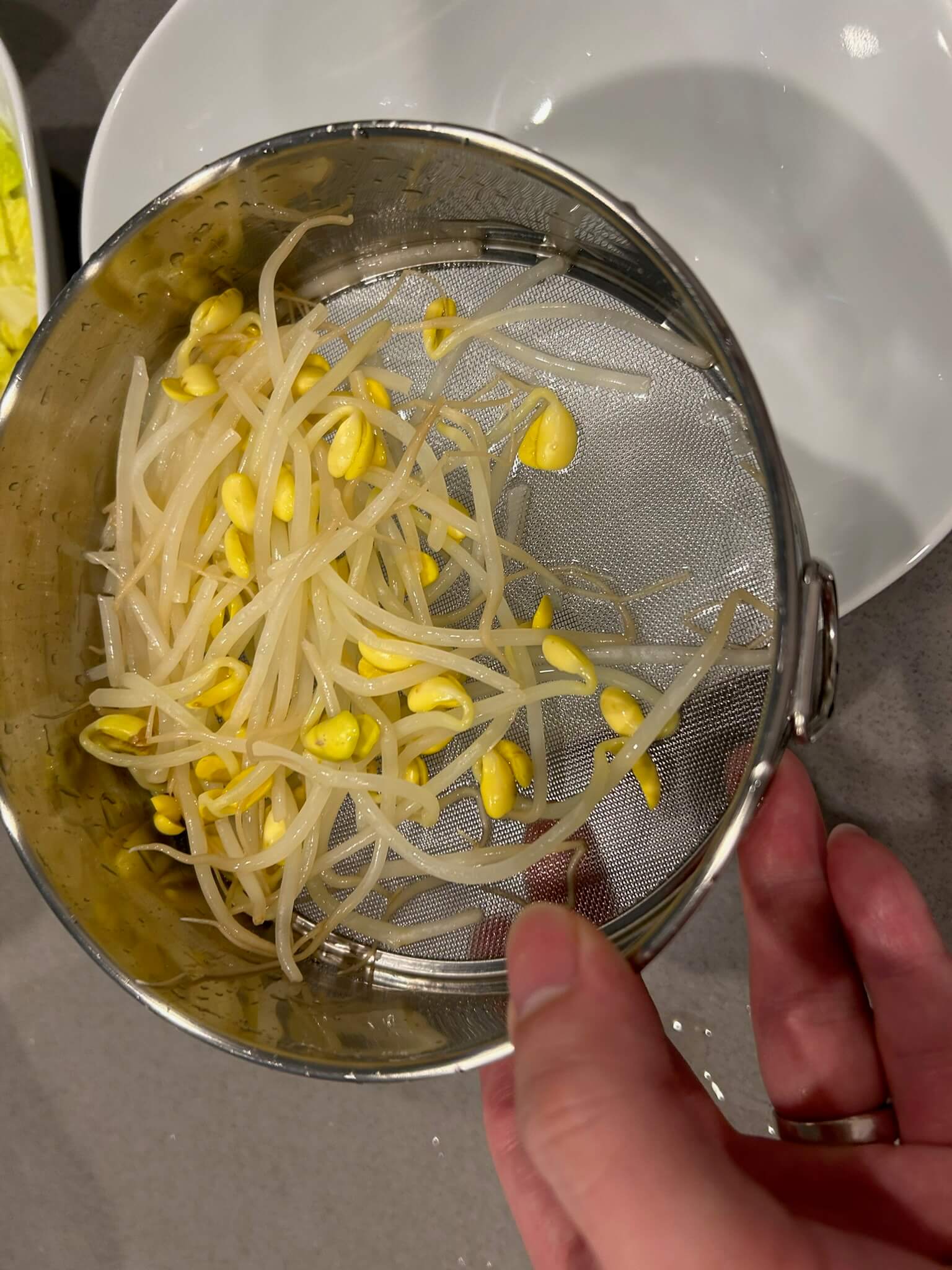 3. 콩나물은 끓는 물에 데쳐서 물기를 제거해 준비해 줍니다.