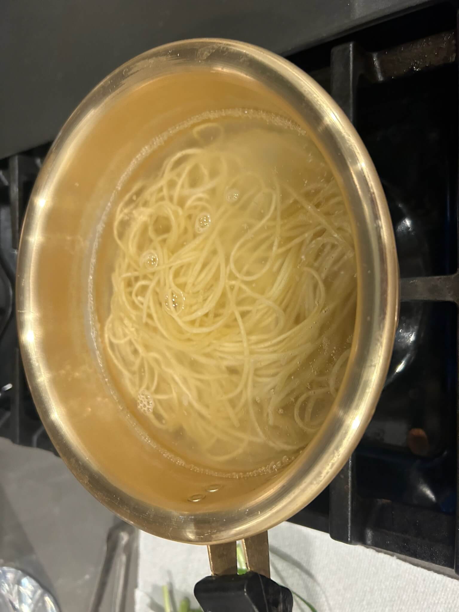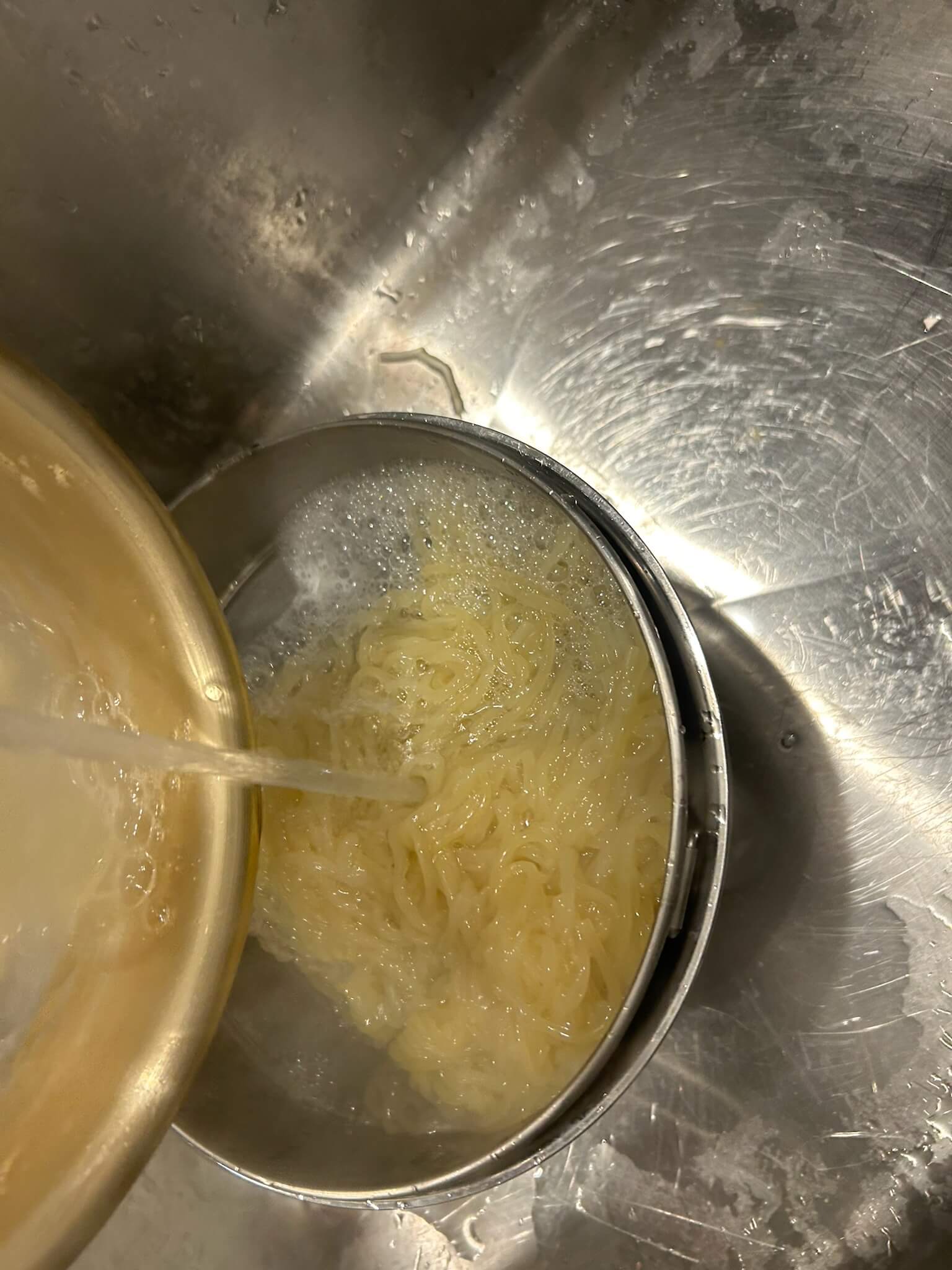 4. 쫄면을 삶아 찬물에서 씻어줍니다.