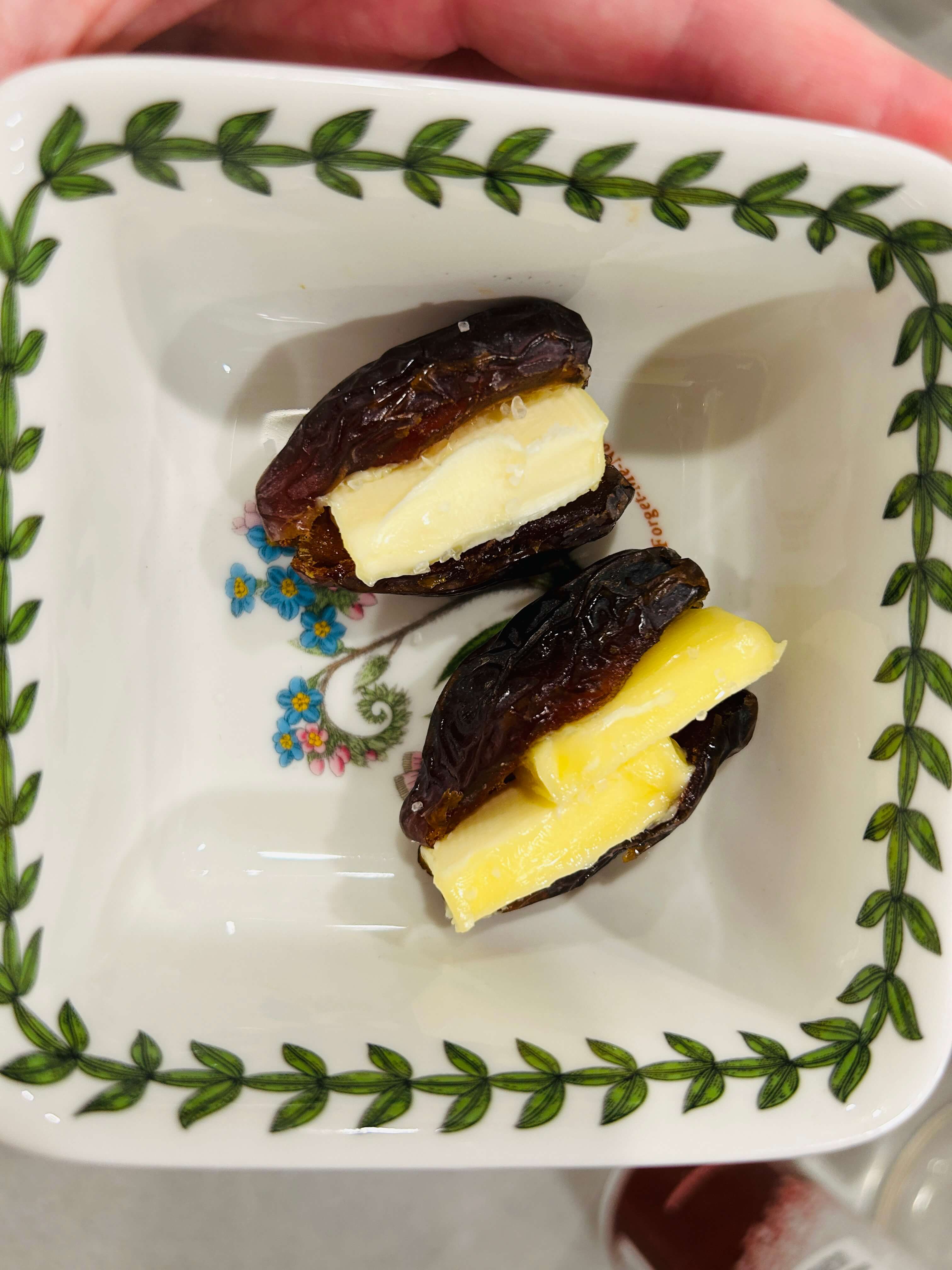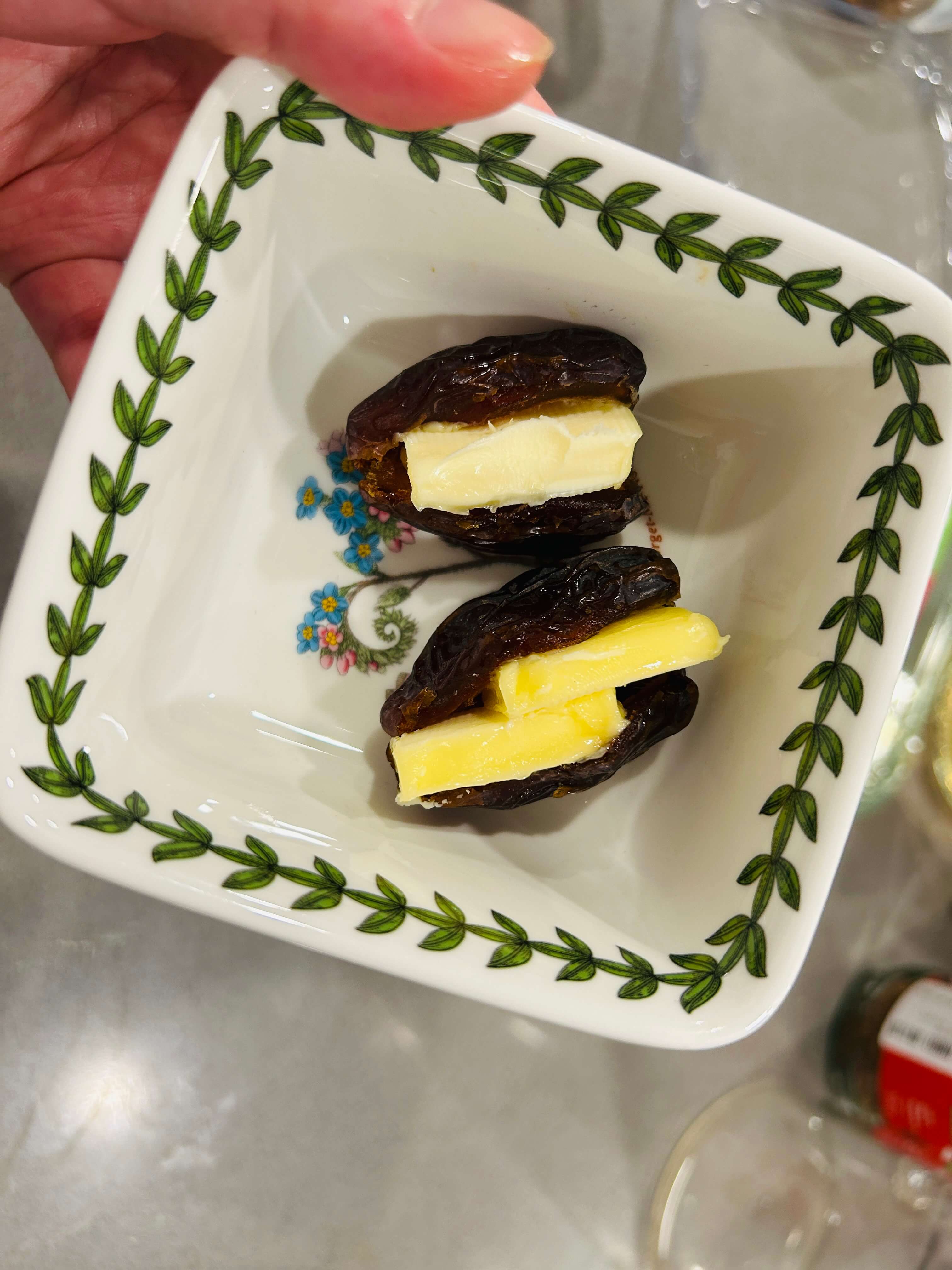4. 대추야자 사이에 무염 버터를 넣어줍니다.