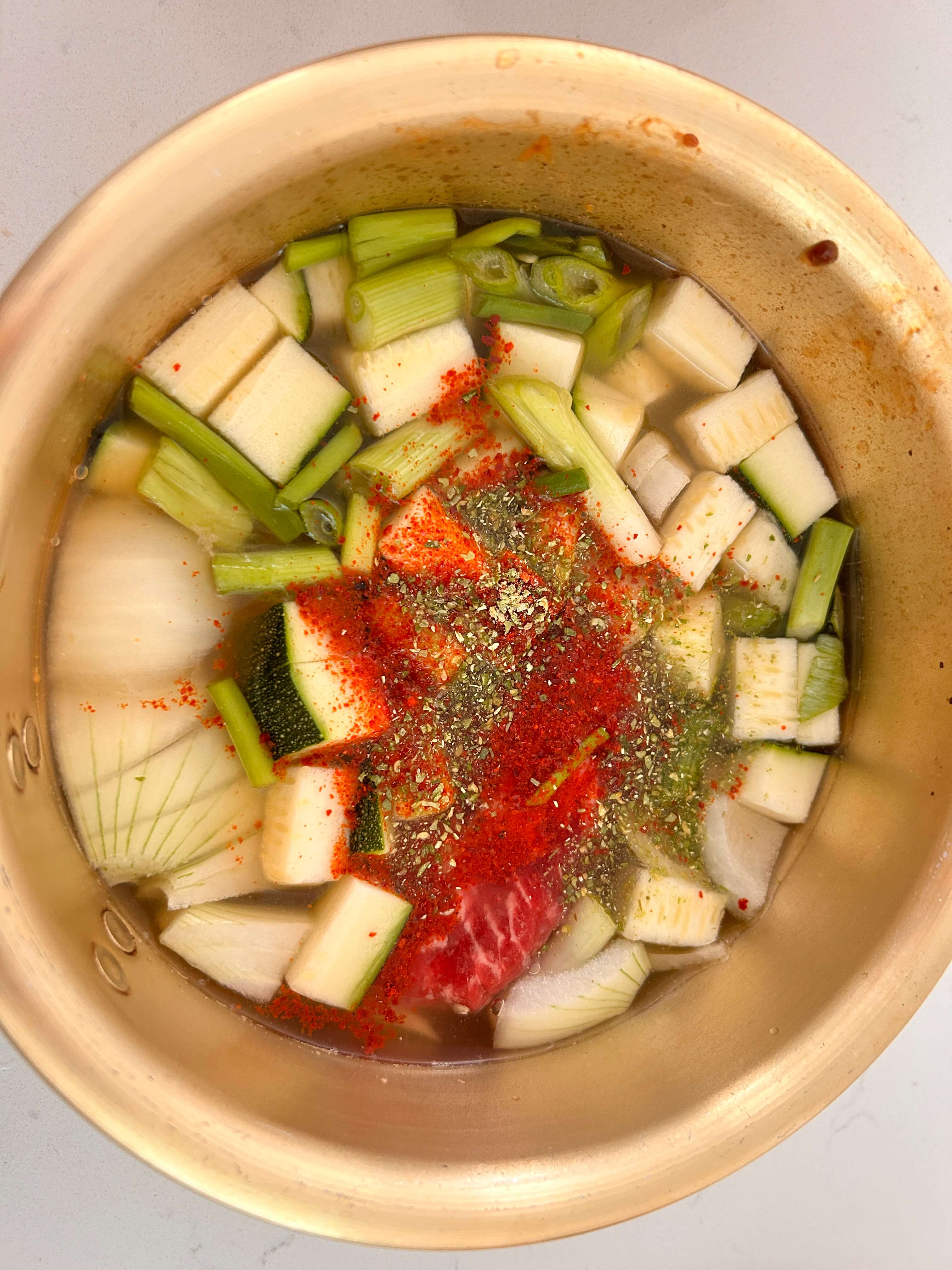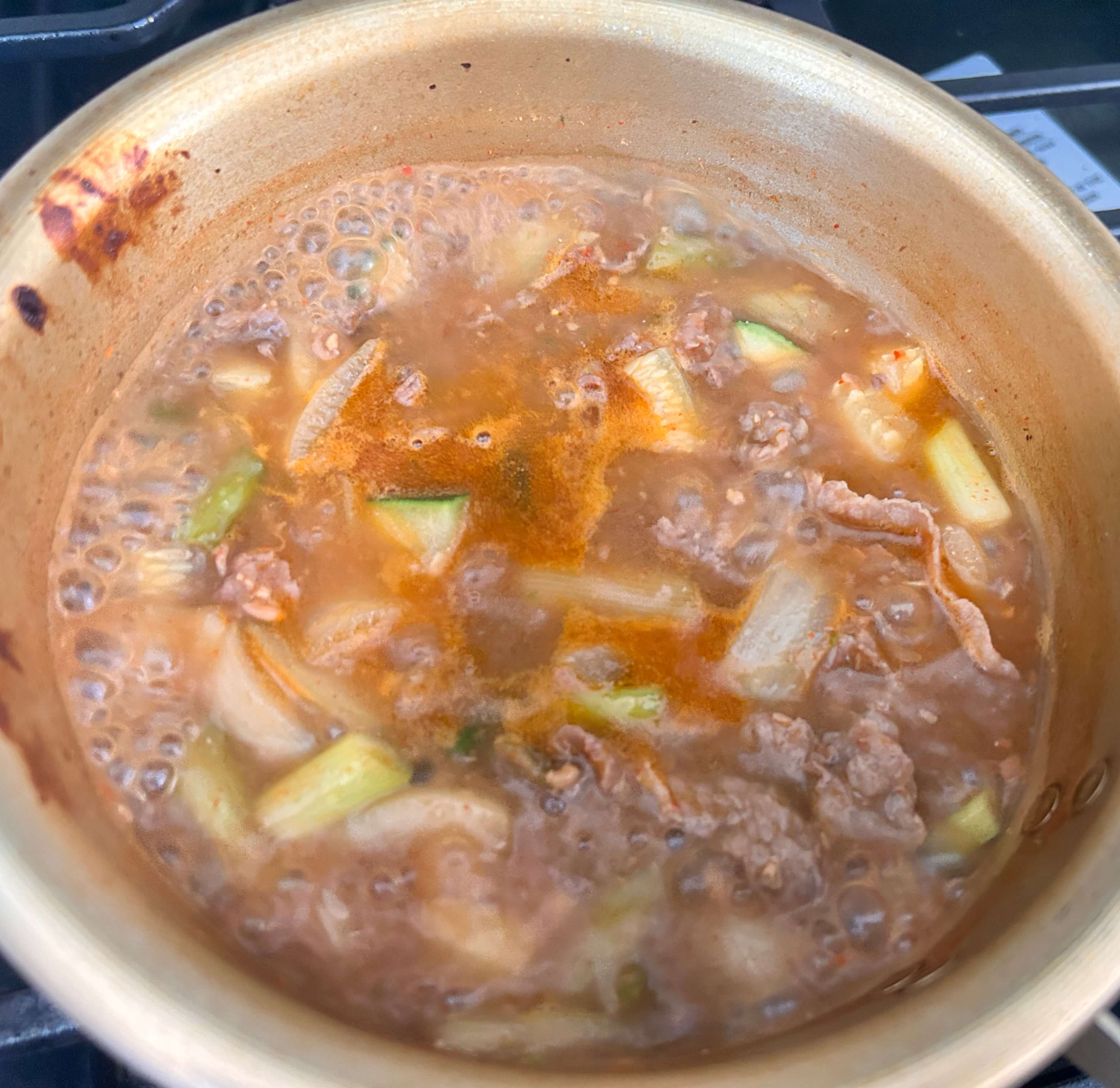 8. 야채와 고기가 잘 익을 때까지 보글보글 끓여줍니다.