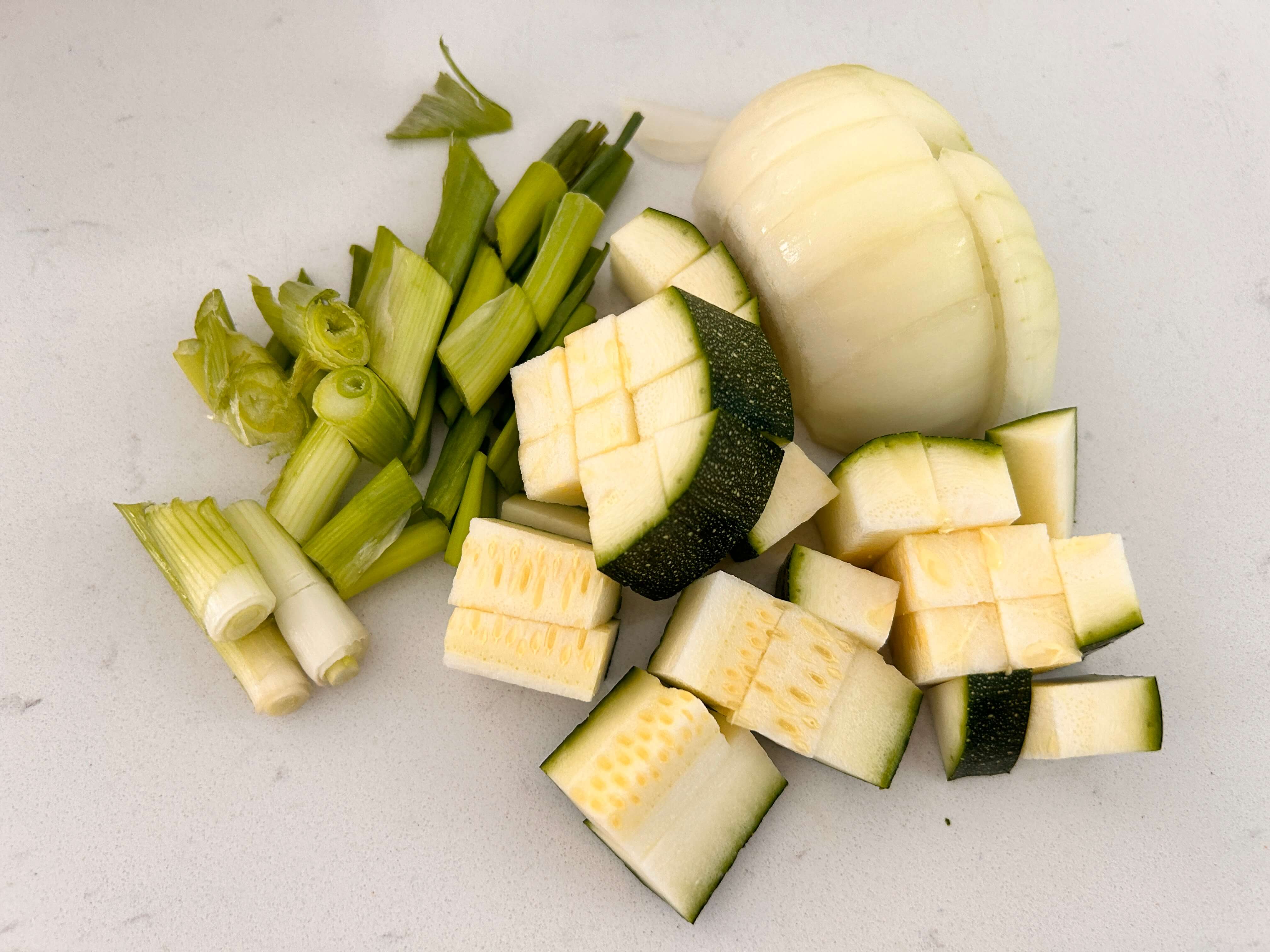 2. 호박, 양파, 대파를 먹기 좋은 크기로 썰어서 준비합니다.