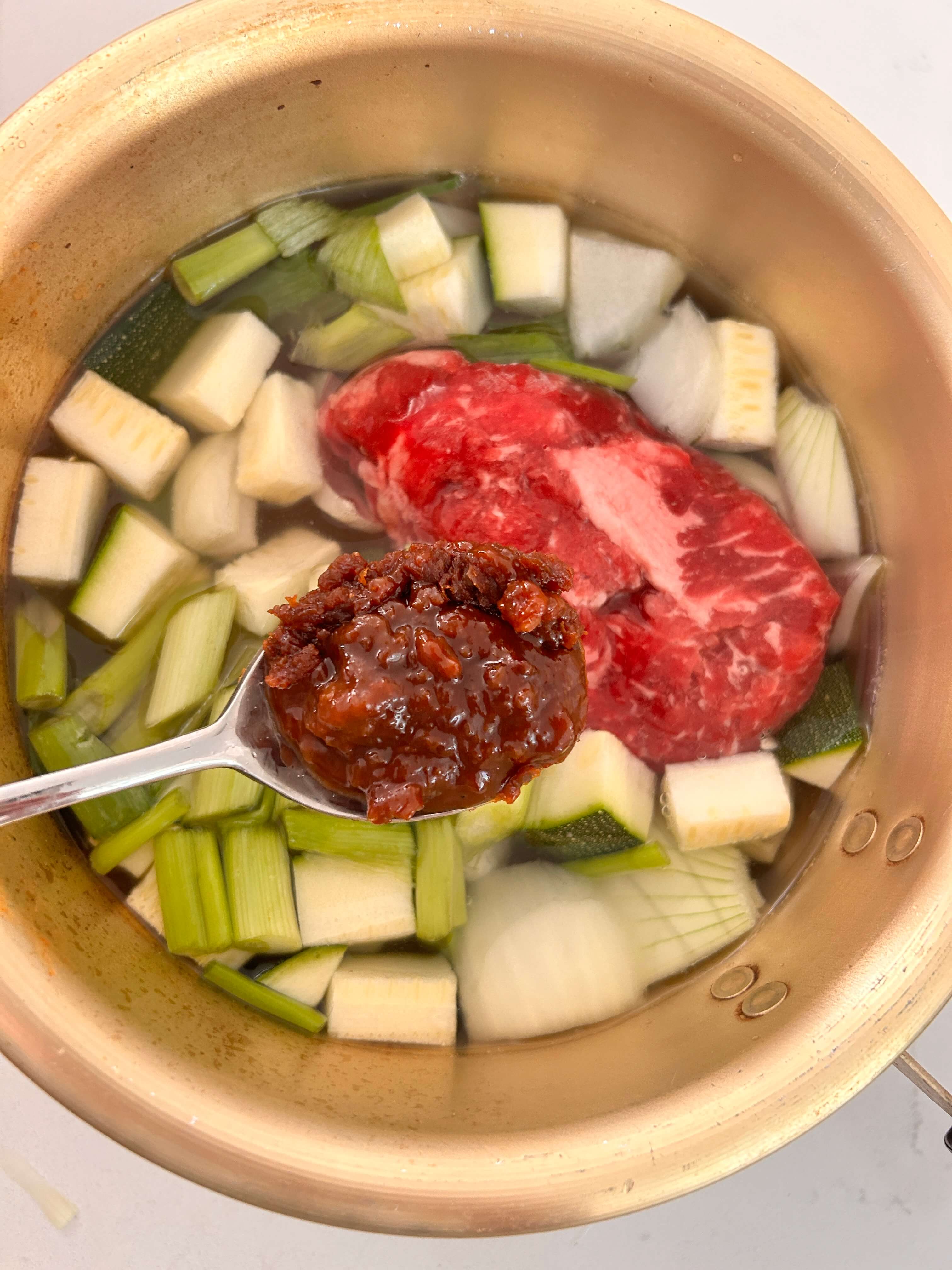 6. 쌈장, 된장을 한 숟갈씩 넣어줍니다.