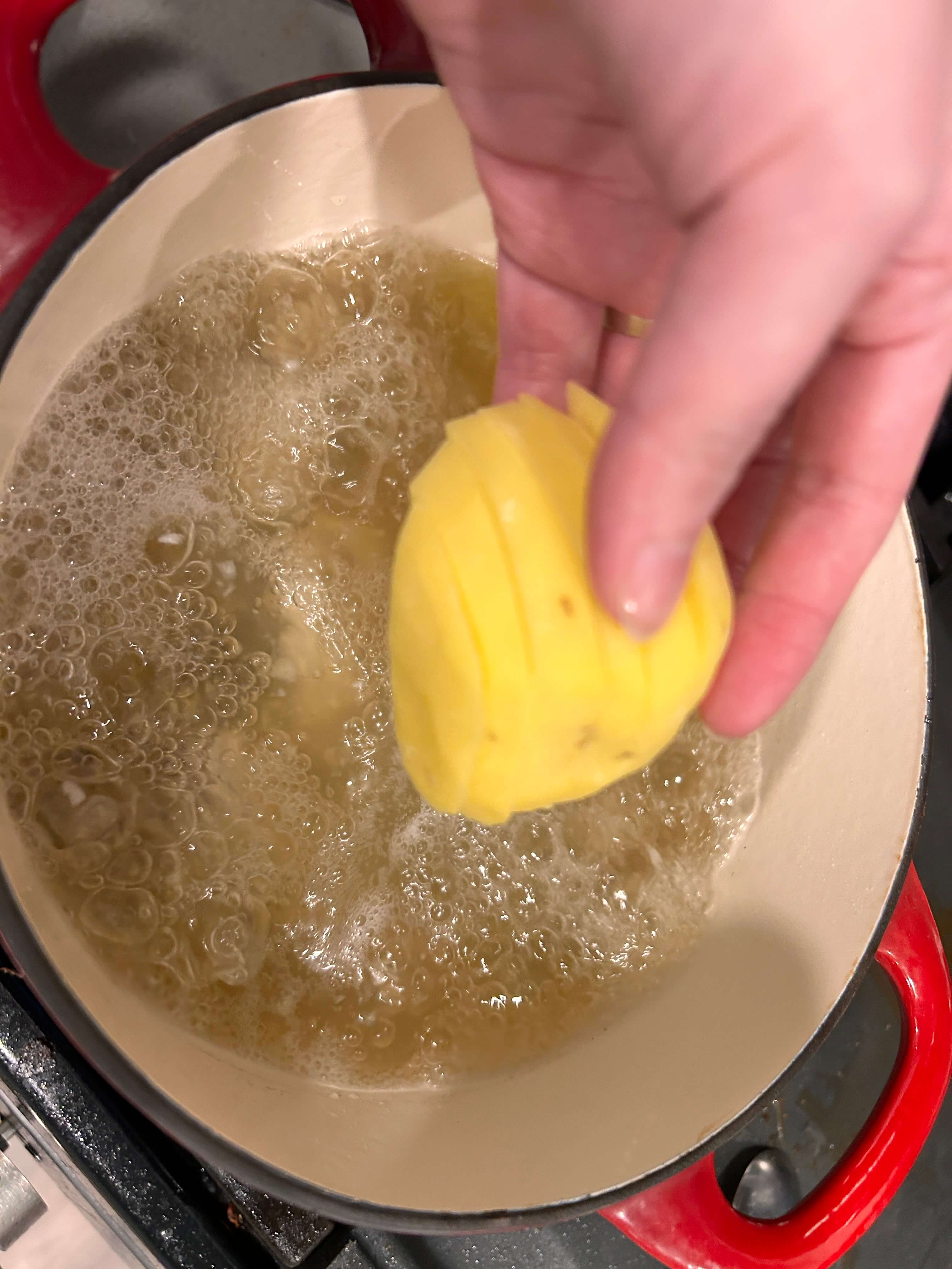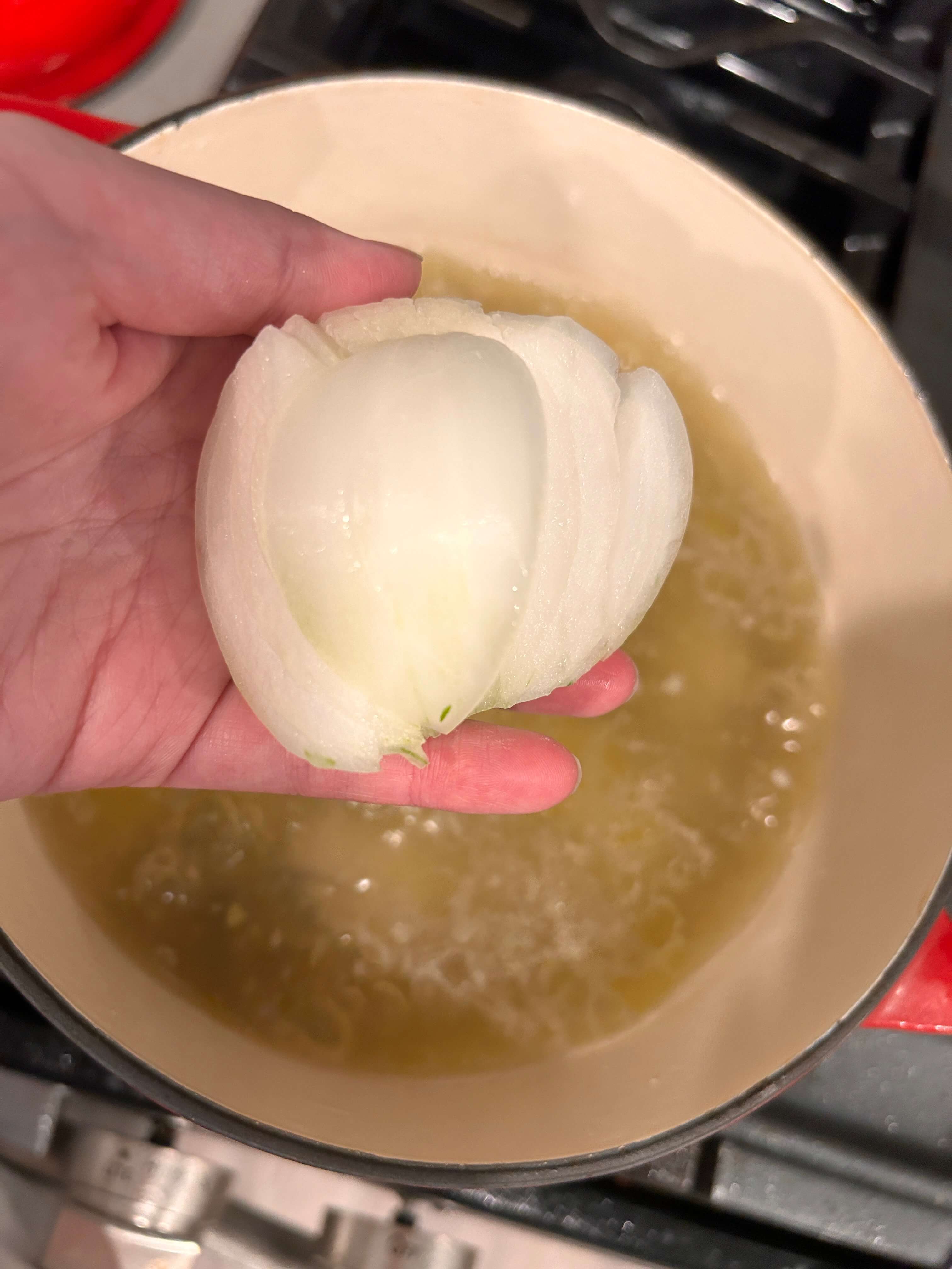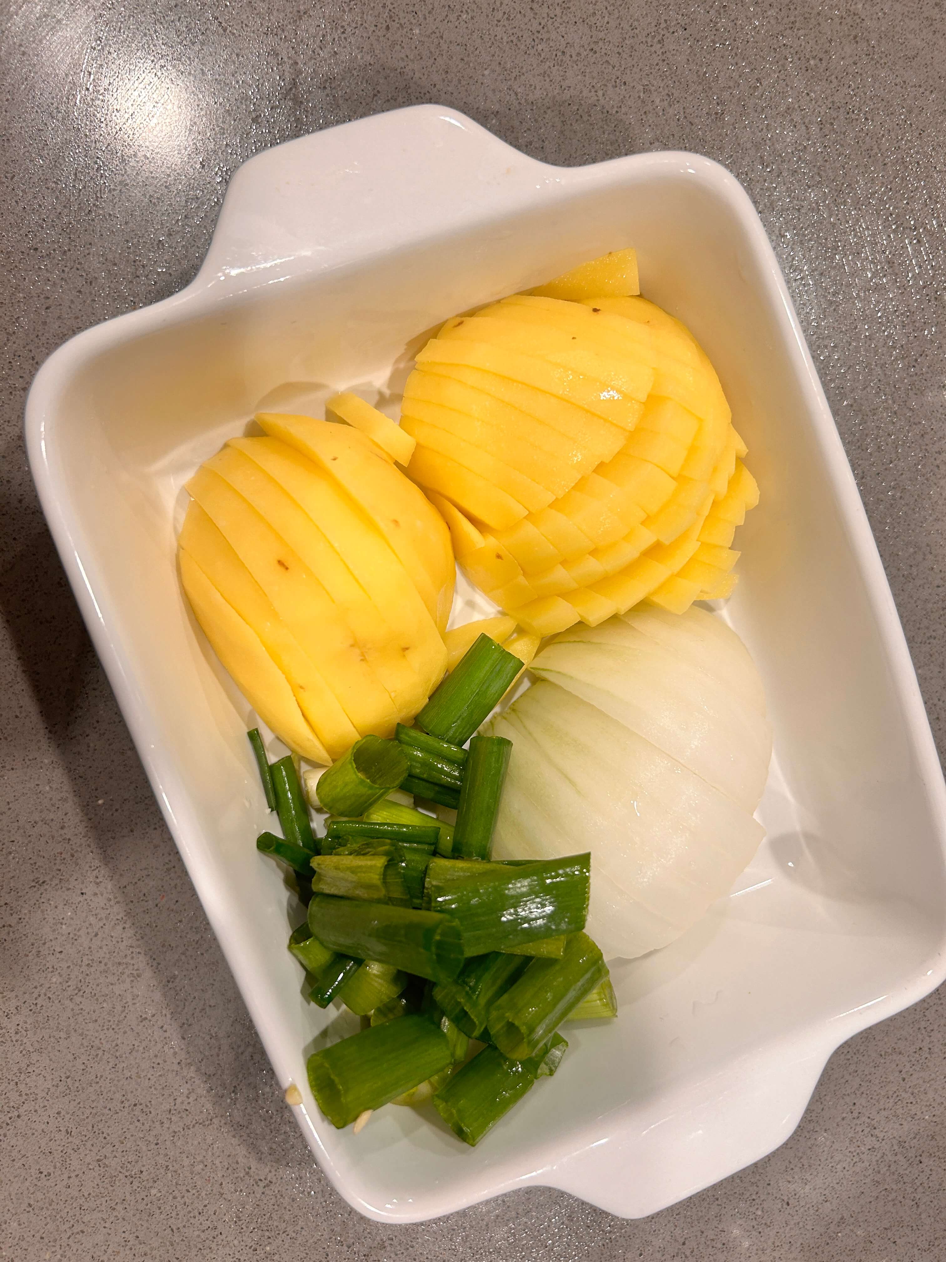 6. 어느 정도 끓으면 준비한 양파와 감자를 넣어 끓여줍니다.
