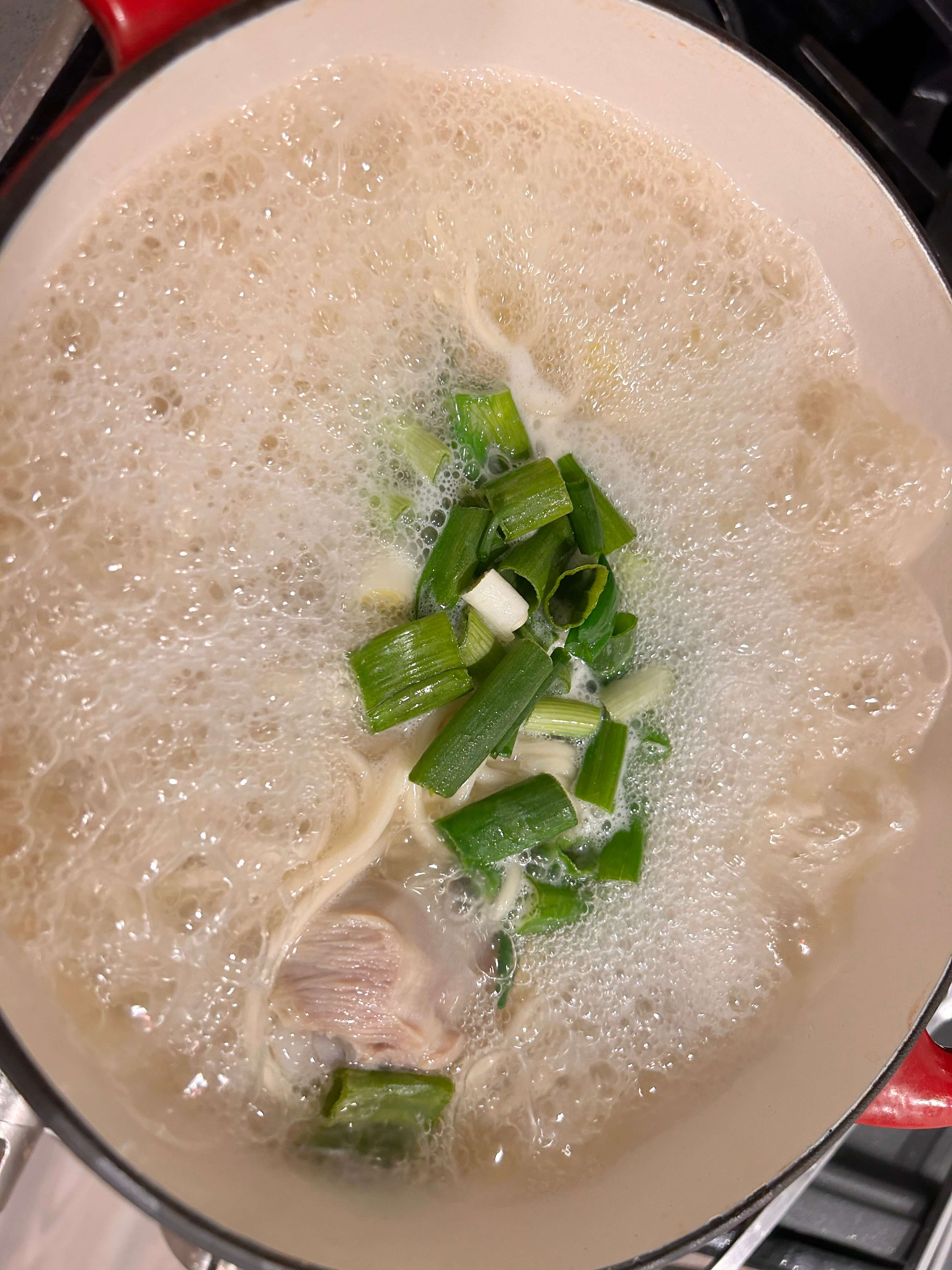 9. 면이 익어갈 때쯤 파를 넣어 줍니다.