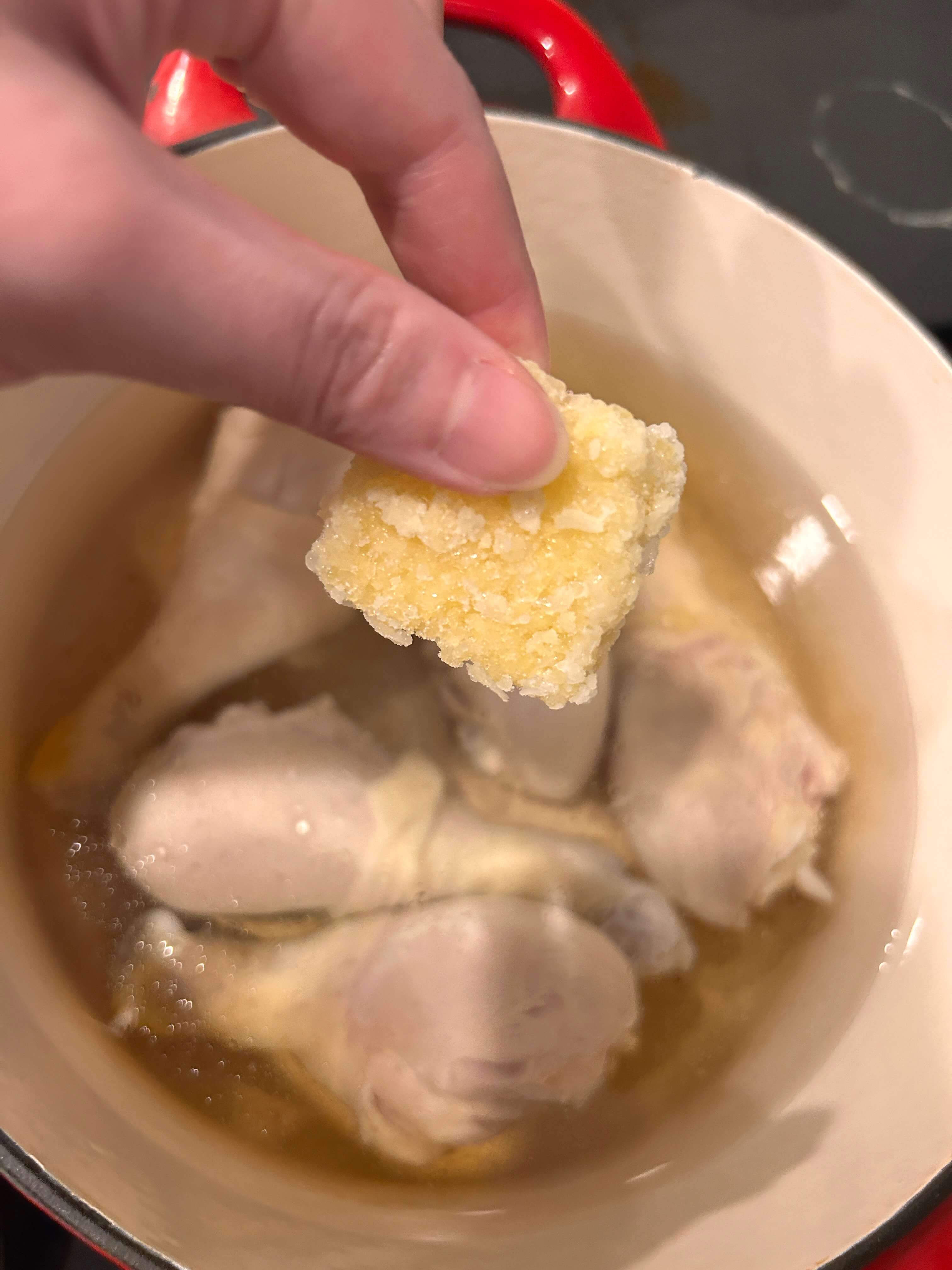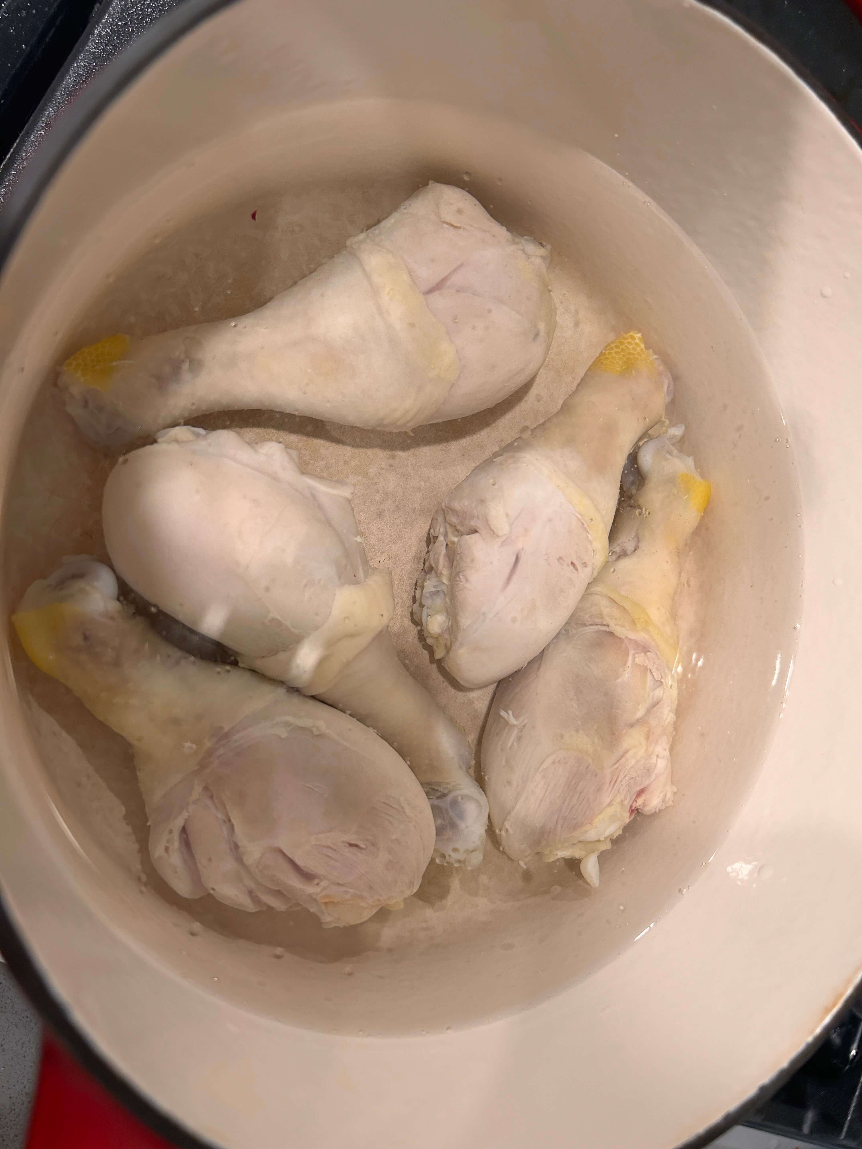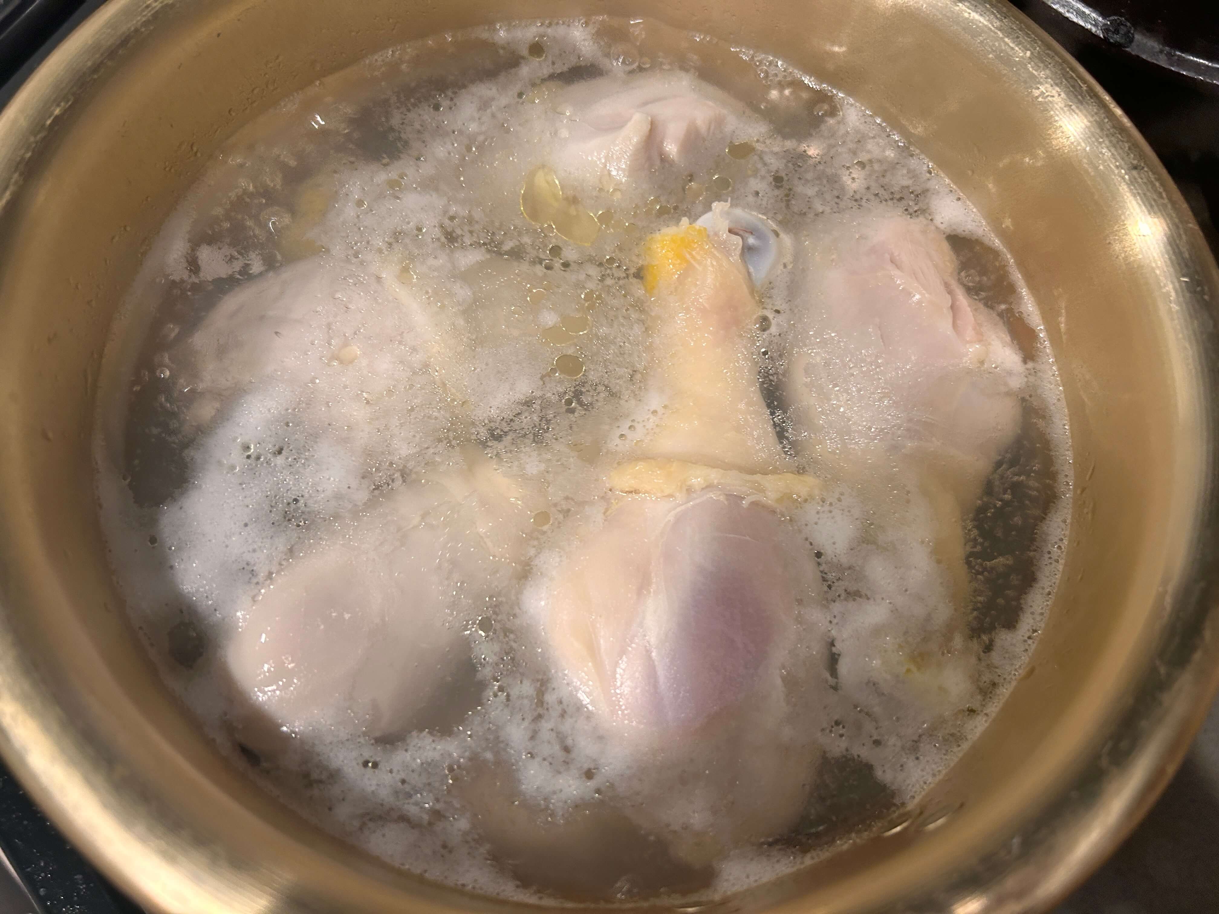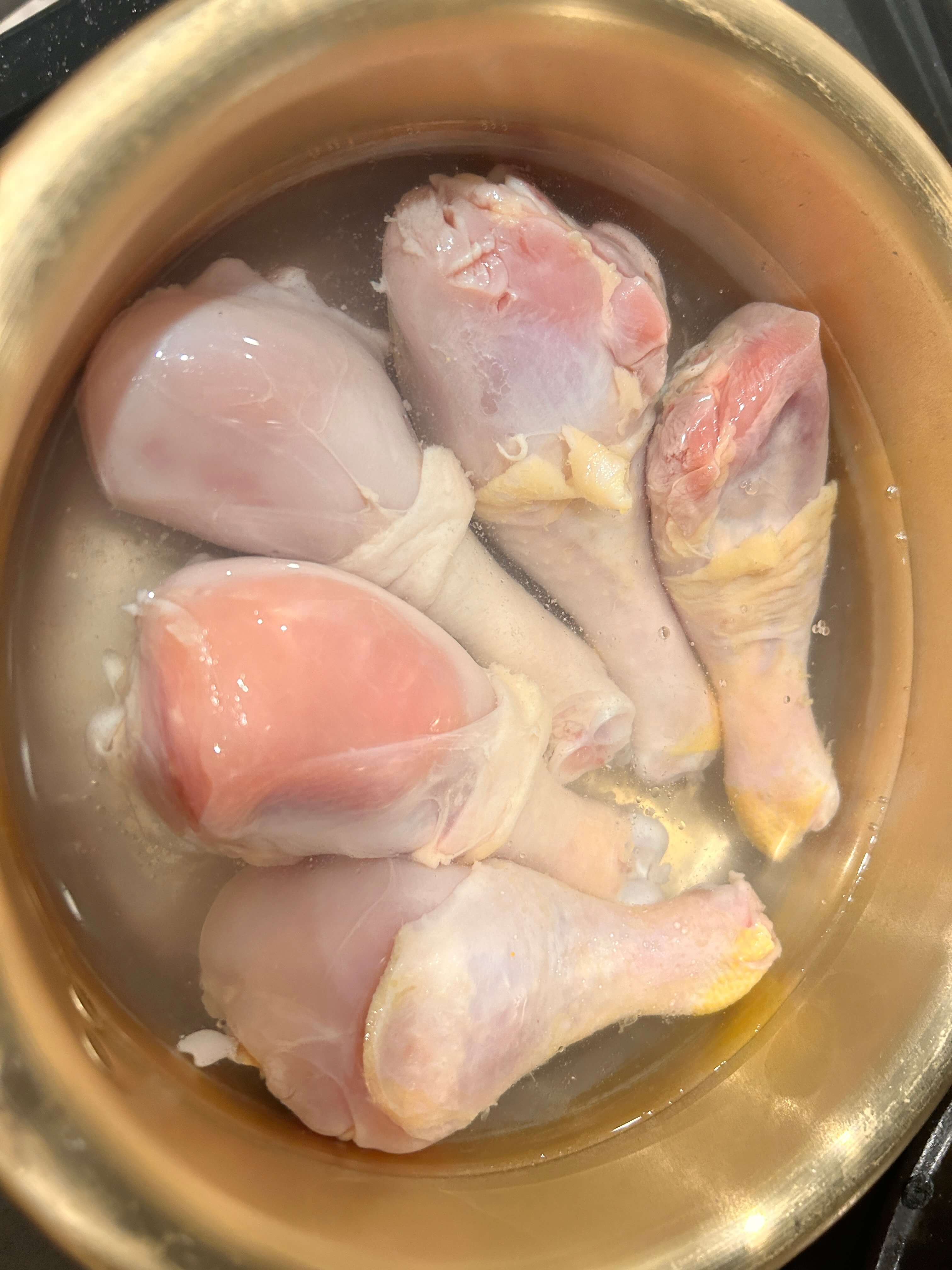 2. 끓는 물에 닭을 한번 데쳐줍니다.