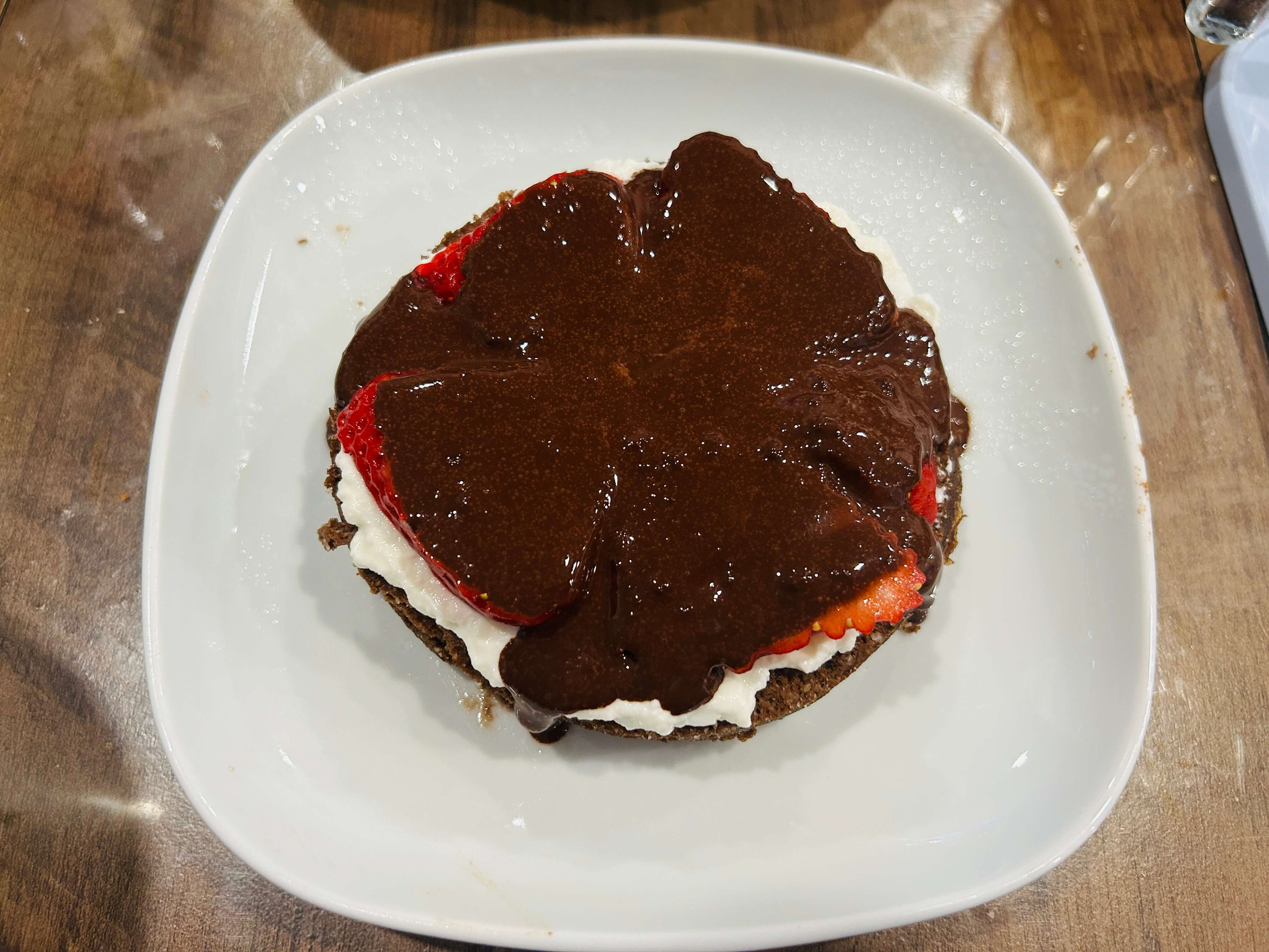 19. 마지막 시트 위에도 요거트와 딸기 초코크림을 올려 마무리해 줍니다.