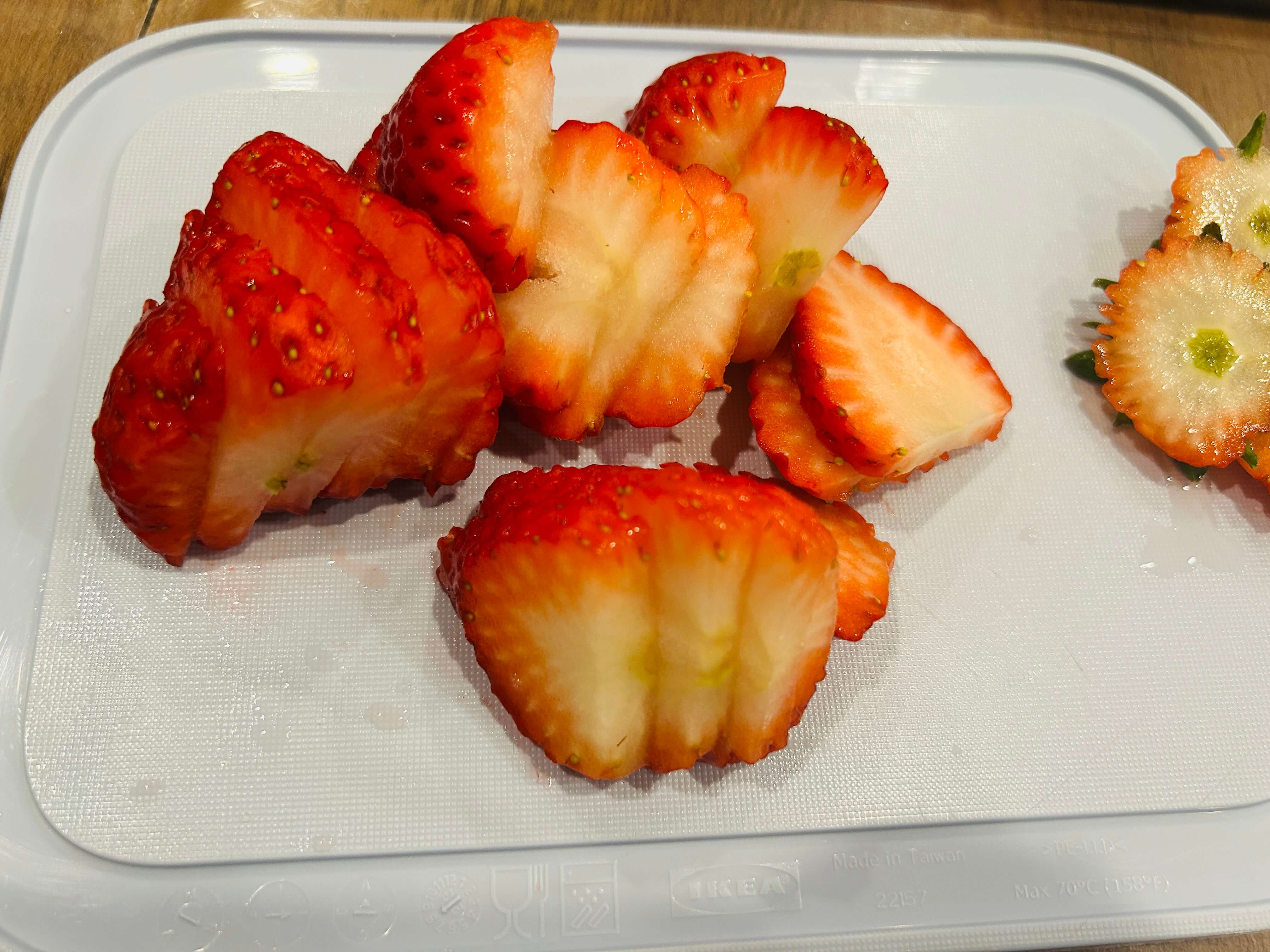 12. 딸기 혹은 다른 과일을 씻어서 잘라 준비해 줍니다.