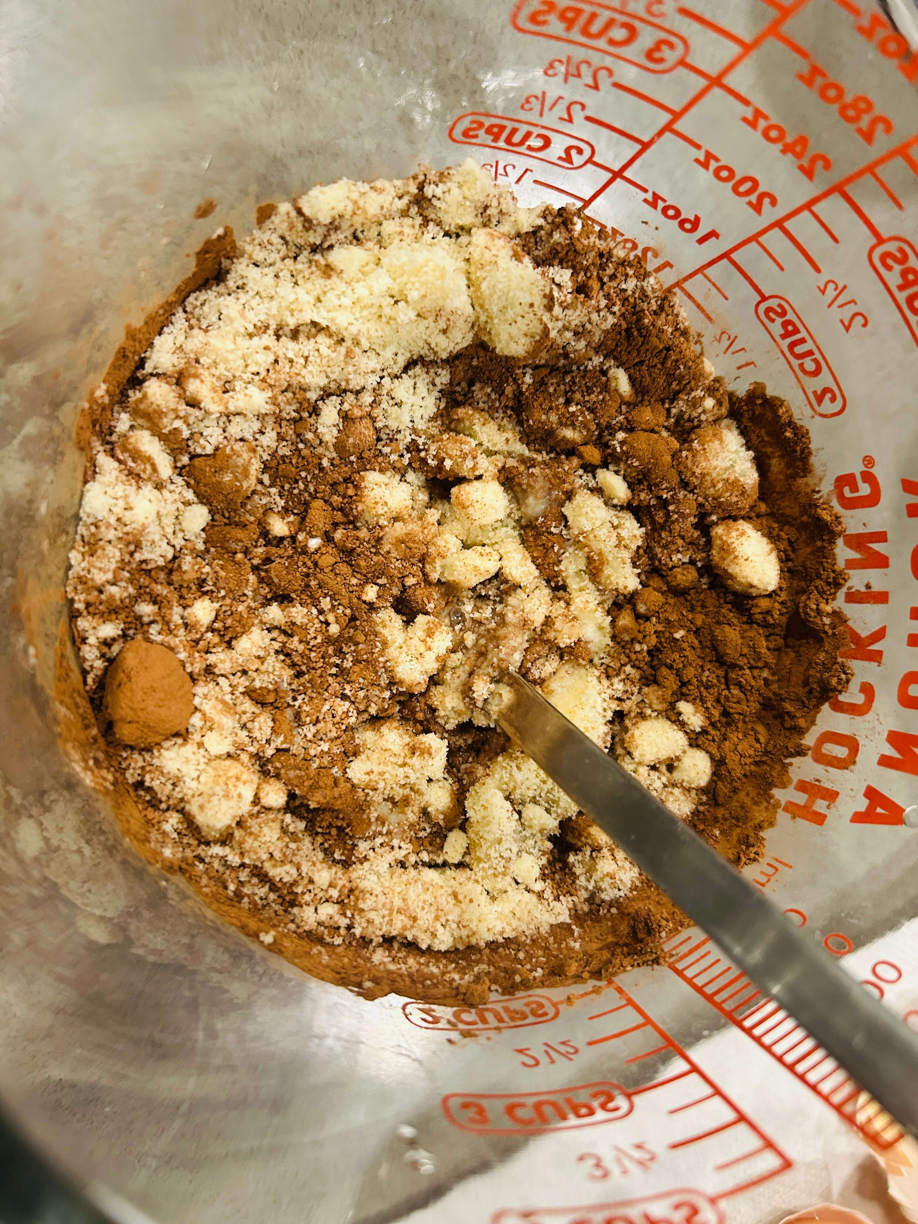 14. 코코아가루 3 숟갈, 우유 3숟갈, 알룰로스 3 숟갈을 넣어 잘 섞어줍니다.