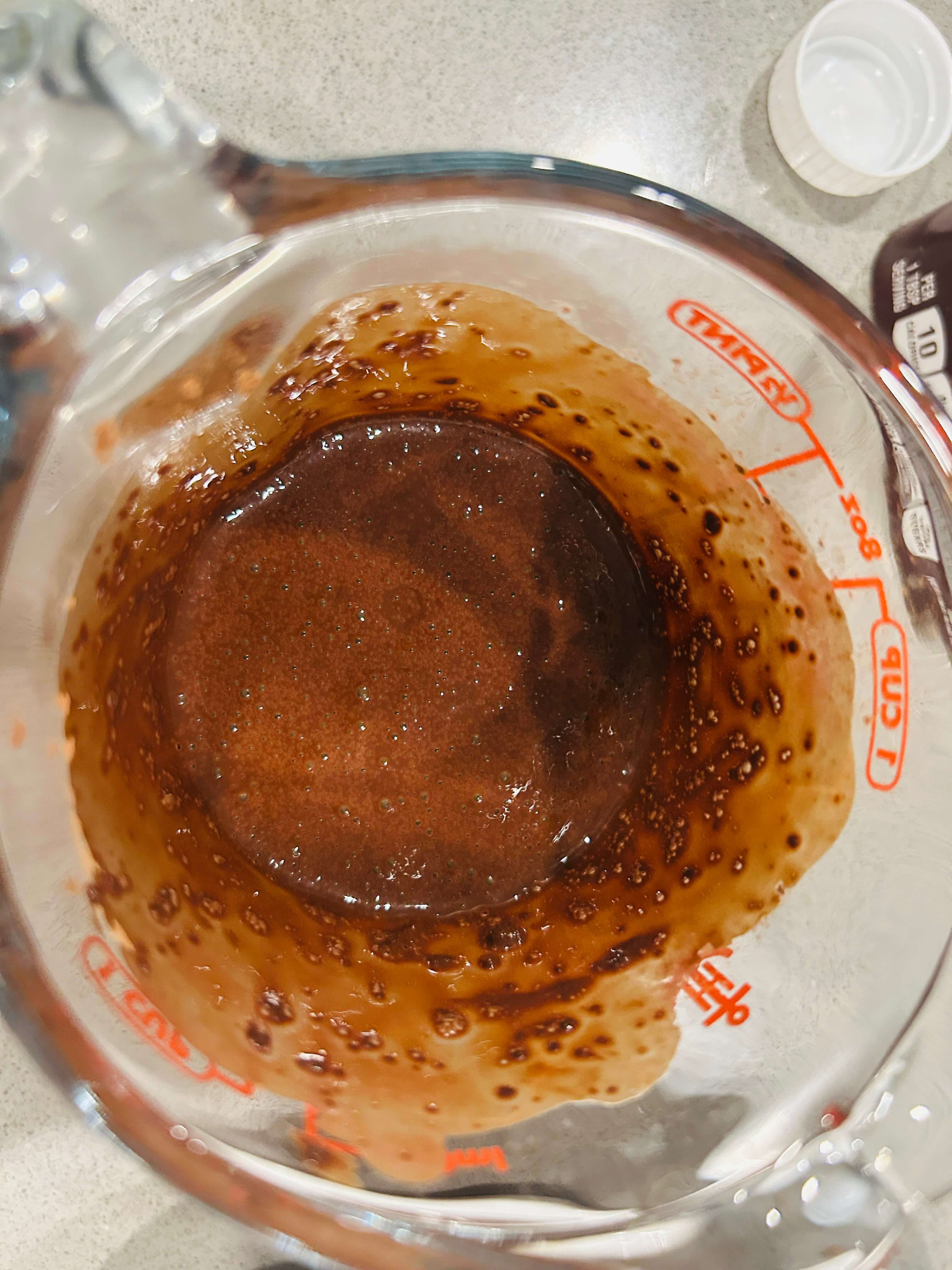 13. 초코 크림소스로 알룰로스, 코코아가루, 우유를 준비해 줍니다.
