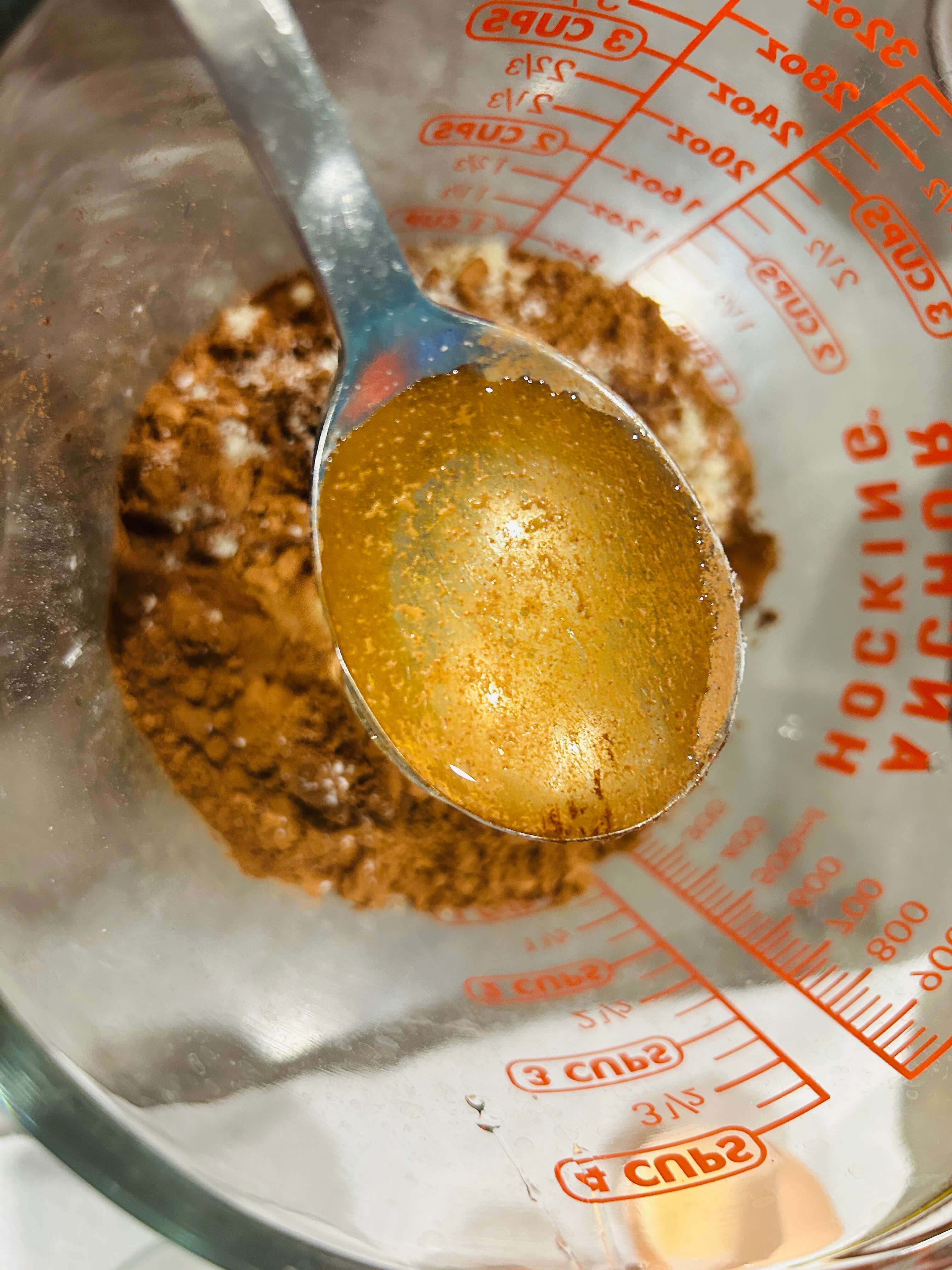 4. 코코아 가루 2 숟갈을 넣어줍니다.
