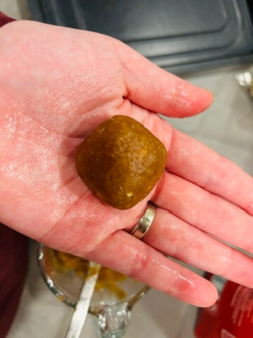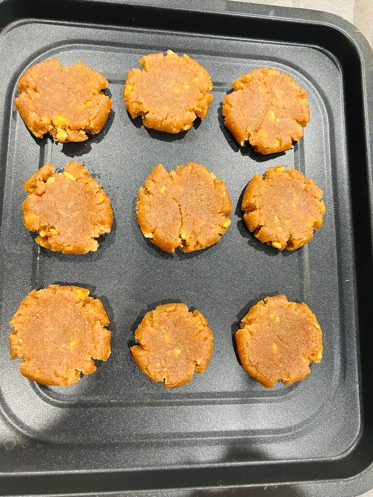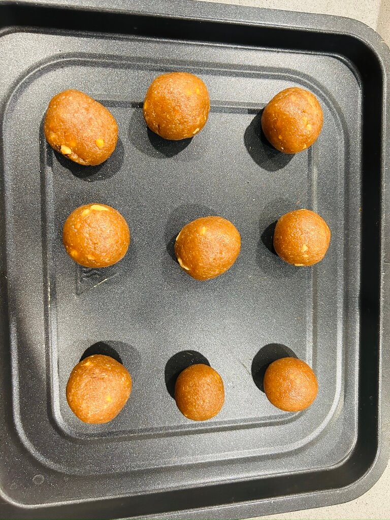 3. 반죽을 덜어 동글동글하게 만들어 트레이에 올려줍니다.