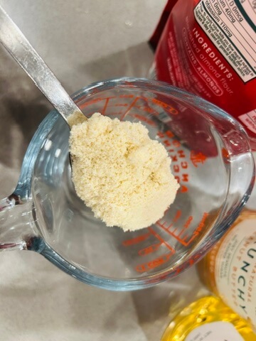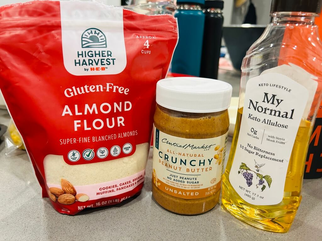 1. 아몬드가루, 땅콩버터크림, 알룰로스를 준비해 줍니다.