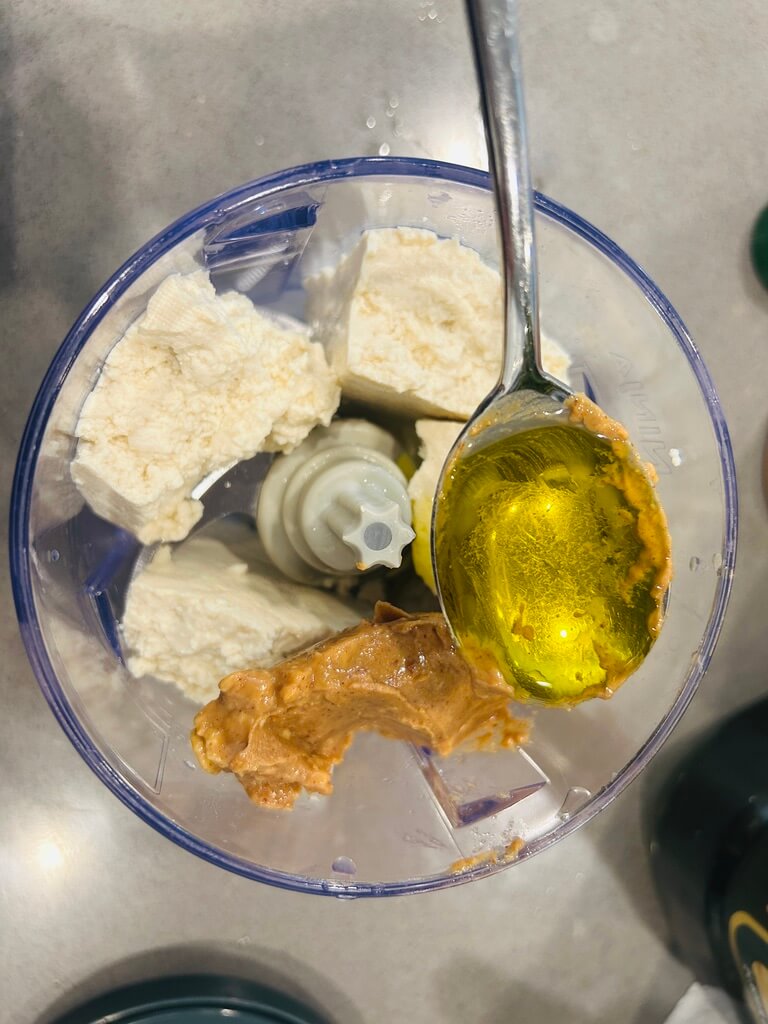 1. 두부한모, 올리브오일, 땅콩버터, 알룰로스, 레몬즙, 깨, 소금을 준비해 줍니다.
