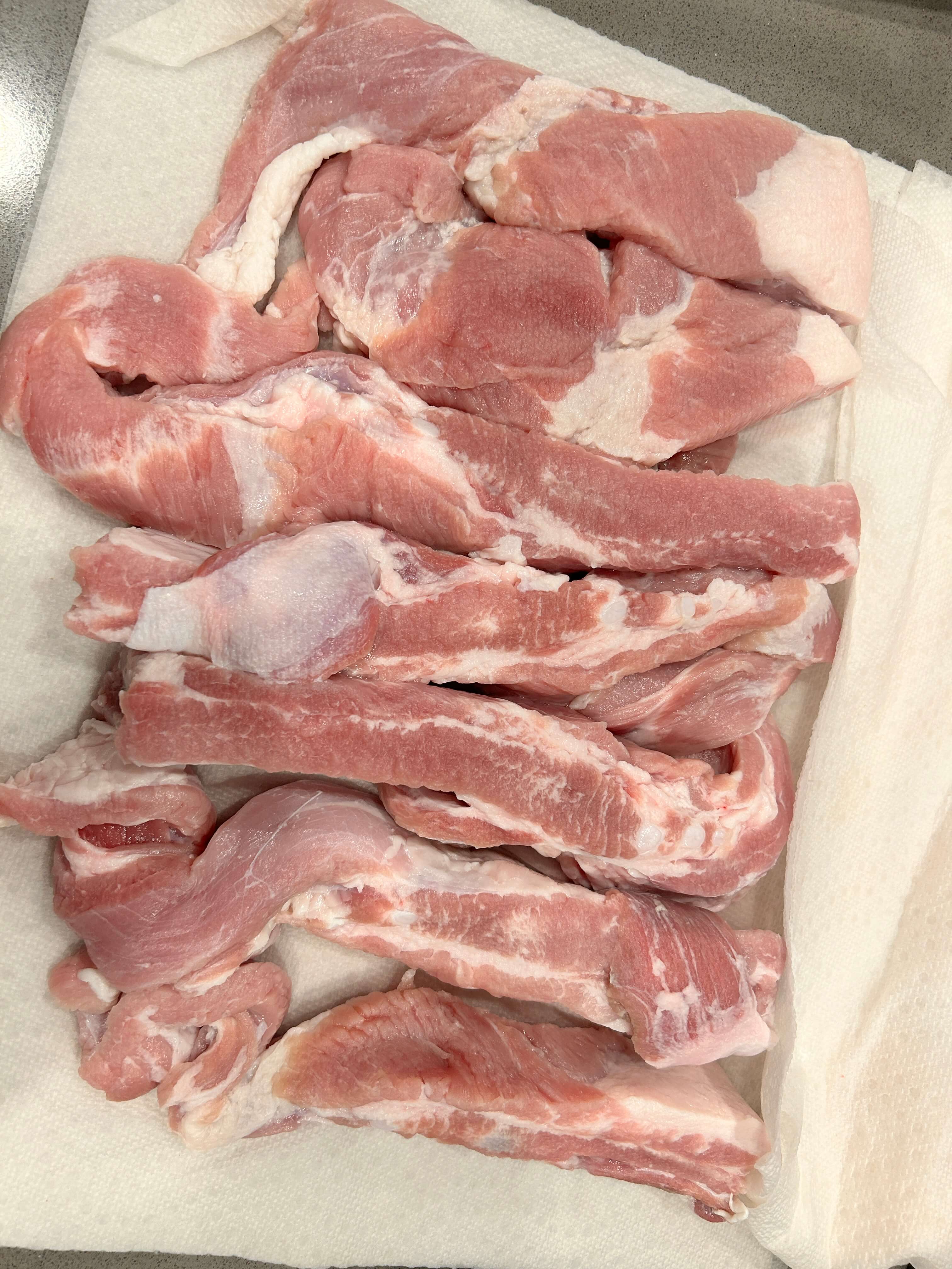 뼈에 붙여서 자르면 한족은 뼈, 반대쪽은 살코기가 붙어 있어 먹기 좋은 갈빗대가 완성됩니다.