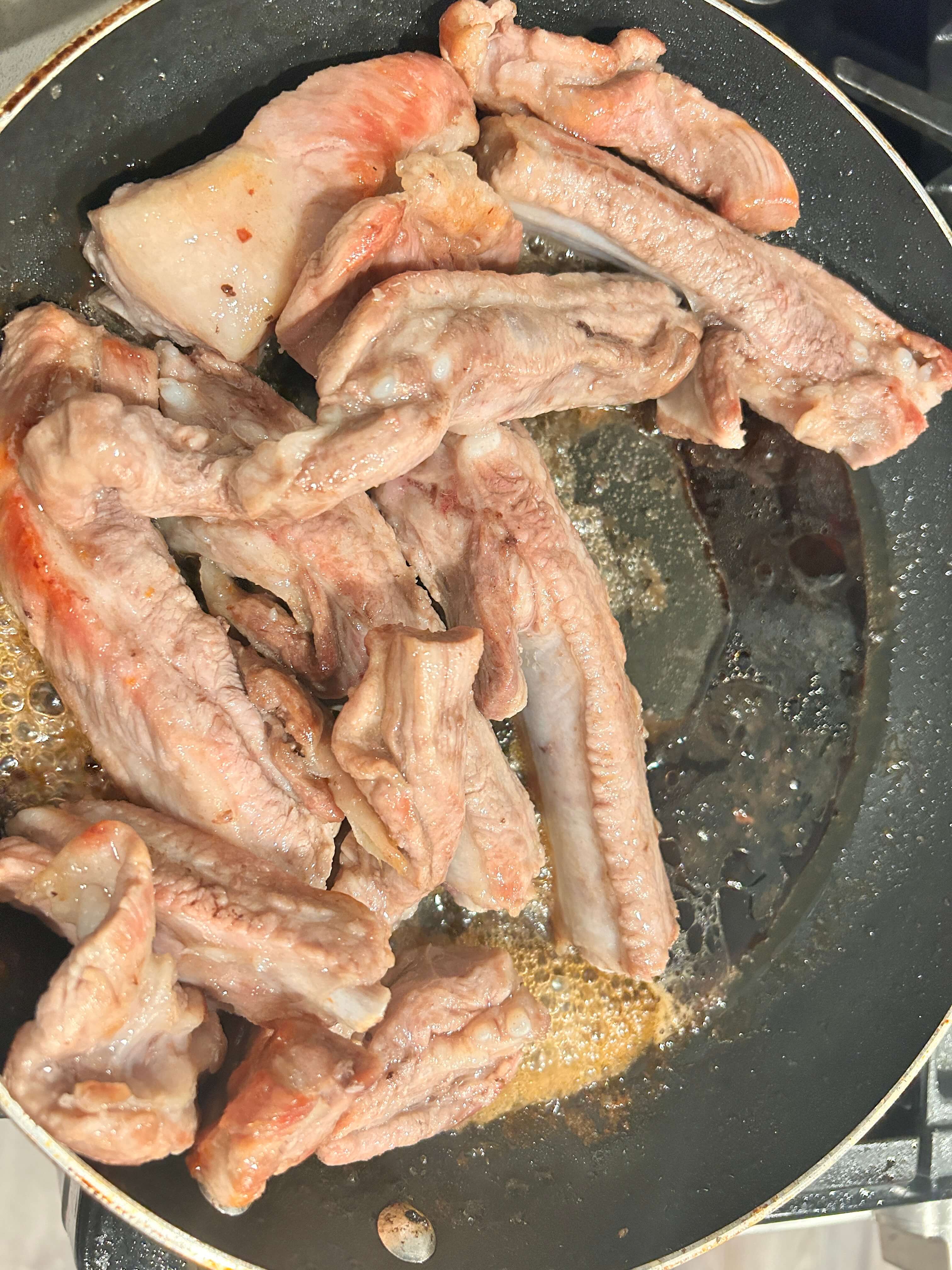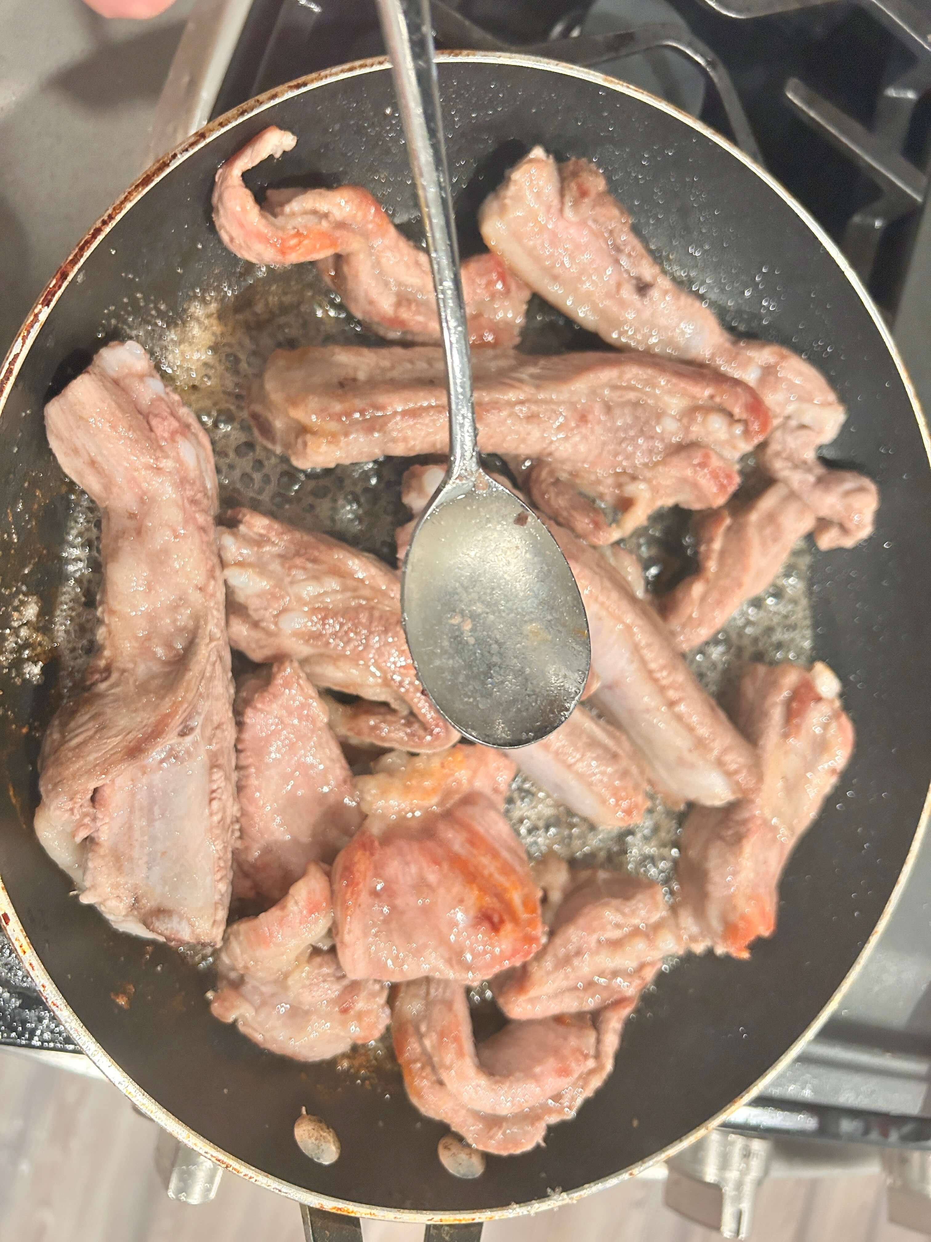 6. 등갈비를 넣고 소금 2꼬집을 넣어 줍니다.