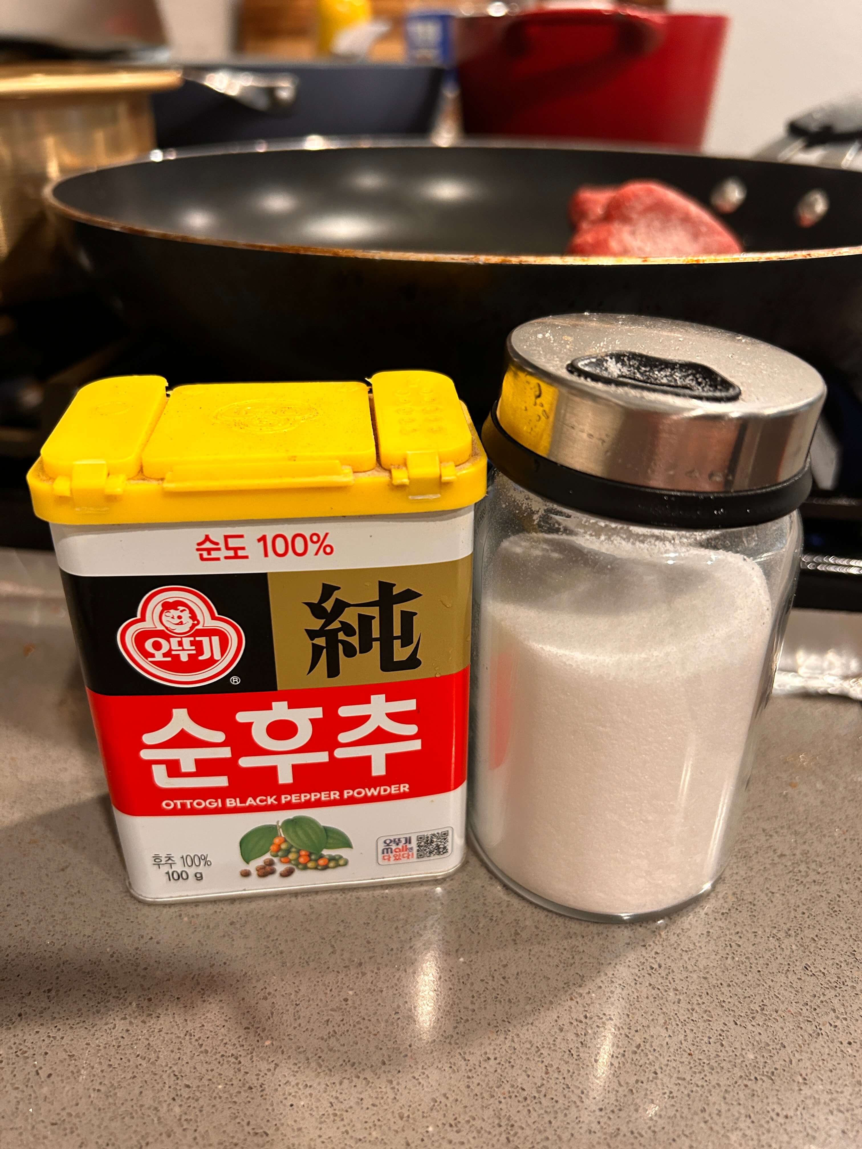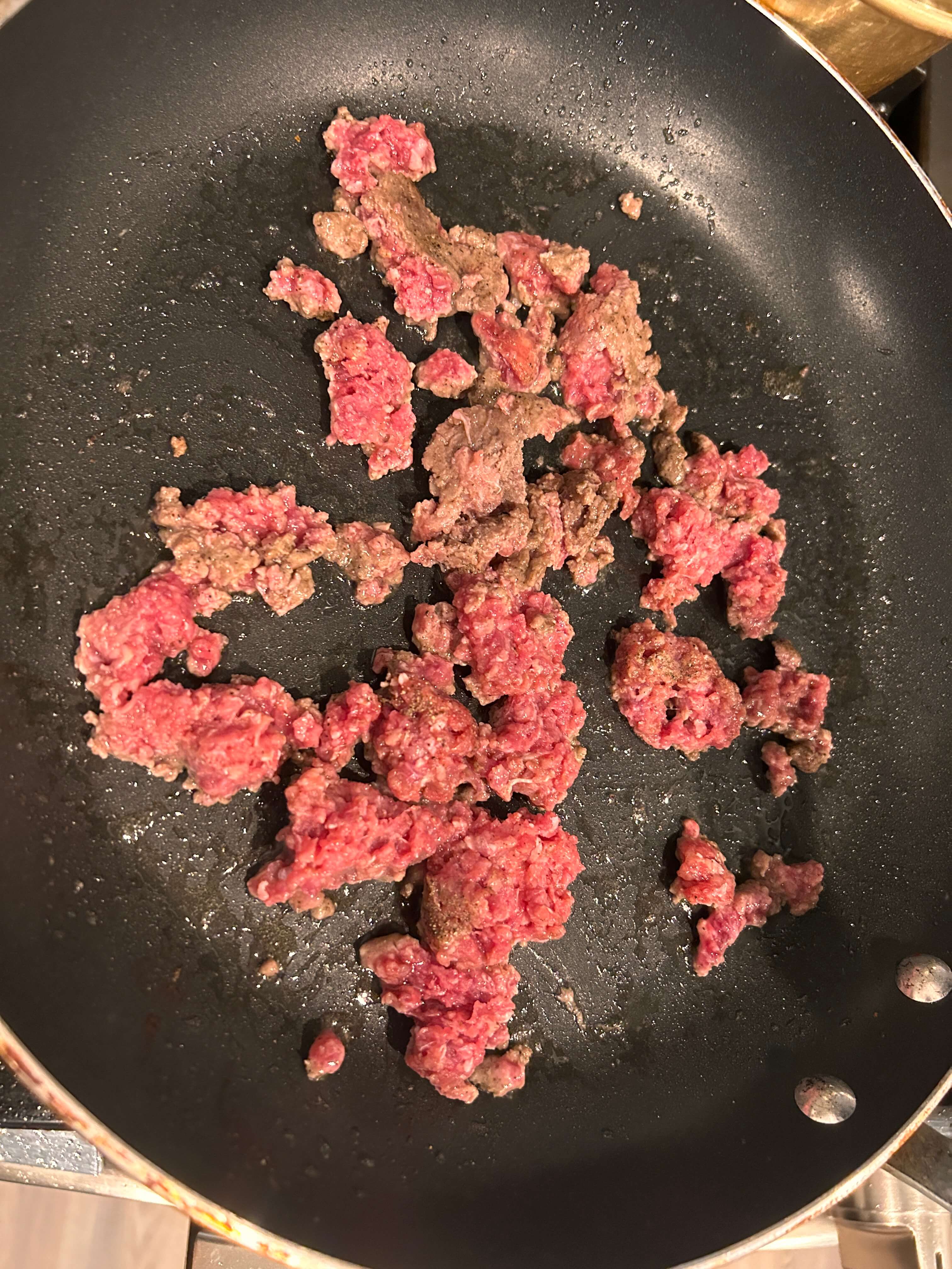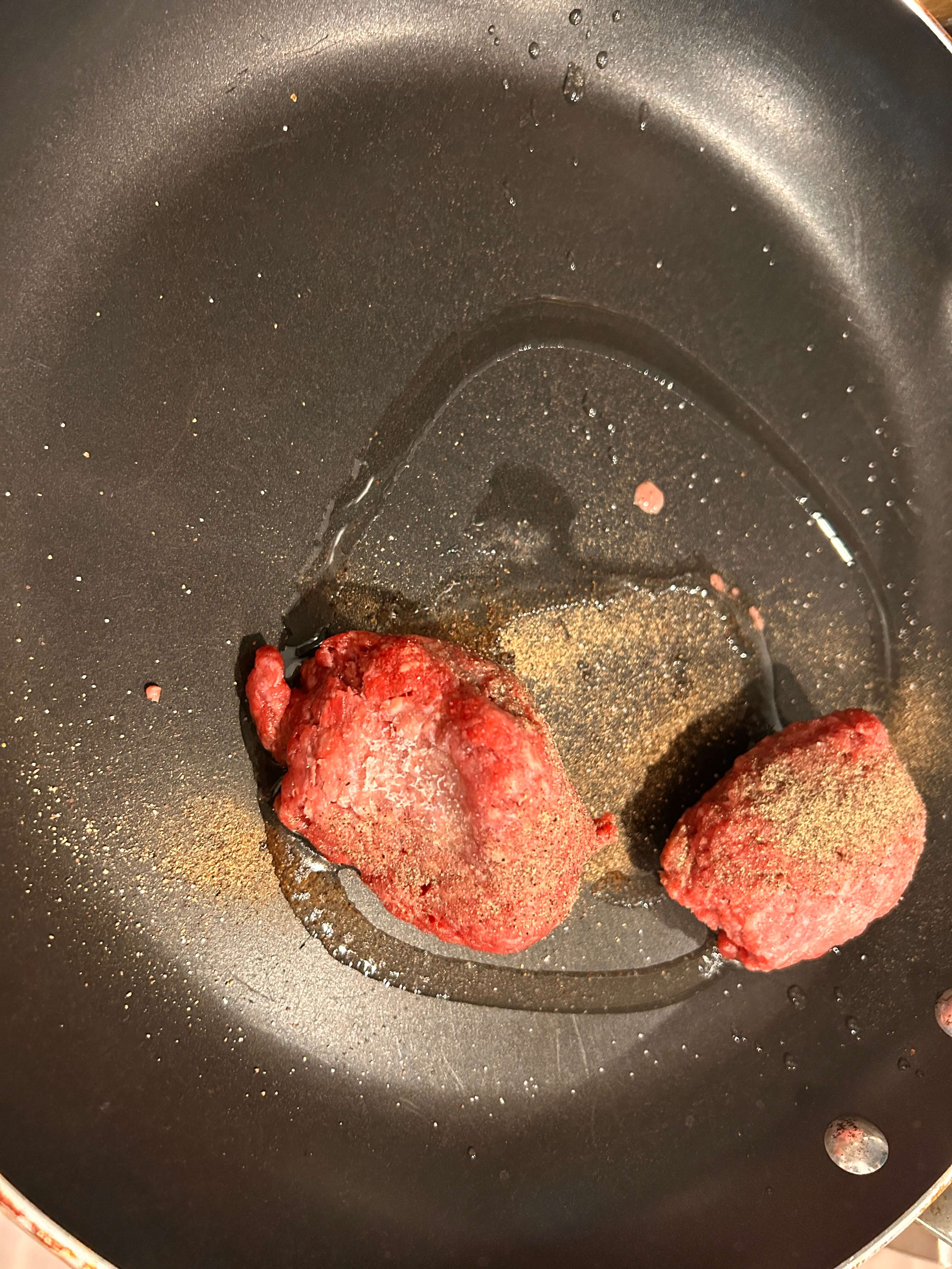 3. 프라이팬에 기름을 두르고 다진 고기에 소금 후추를 톡톡 뿌려 볶아줍니다.