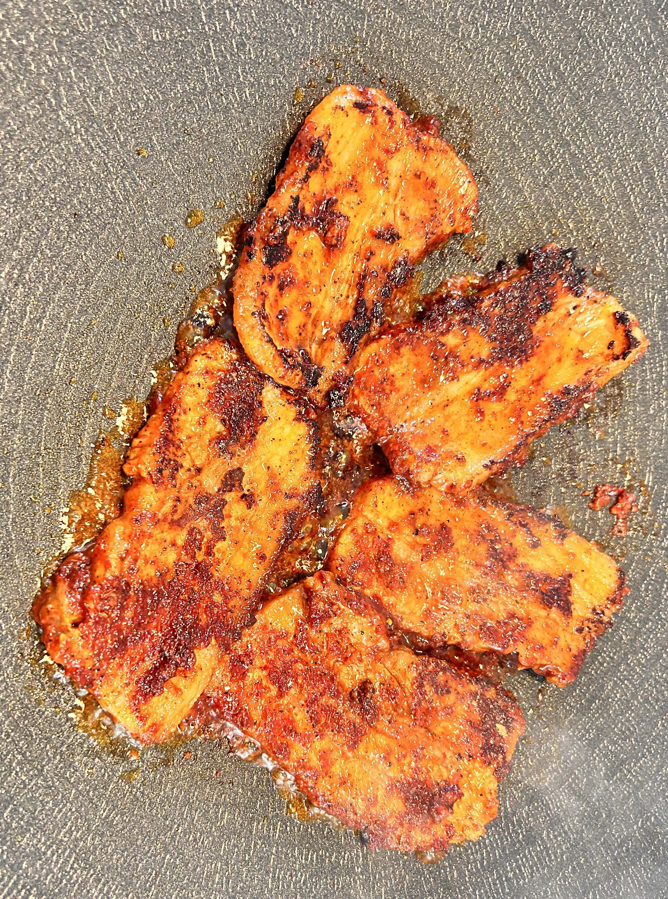 양념이 잘 타기 때문에 앞뒤로 뒤집어가며 삼겹살을 익혀줍니다.