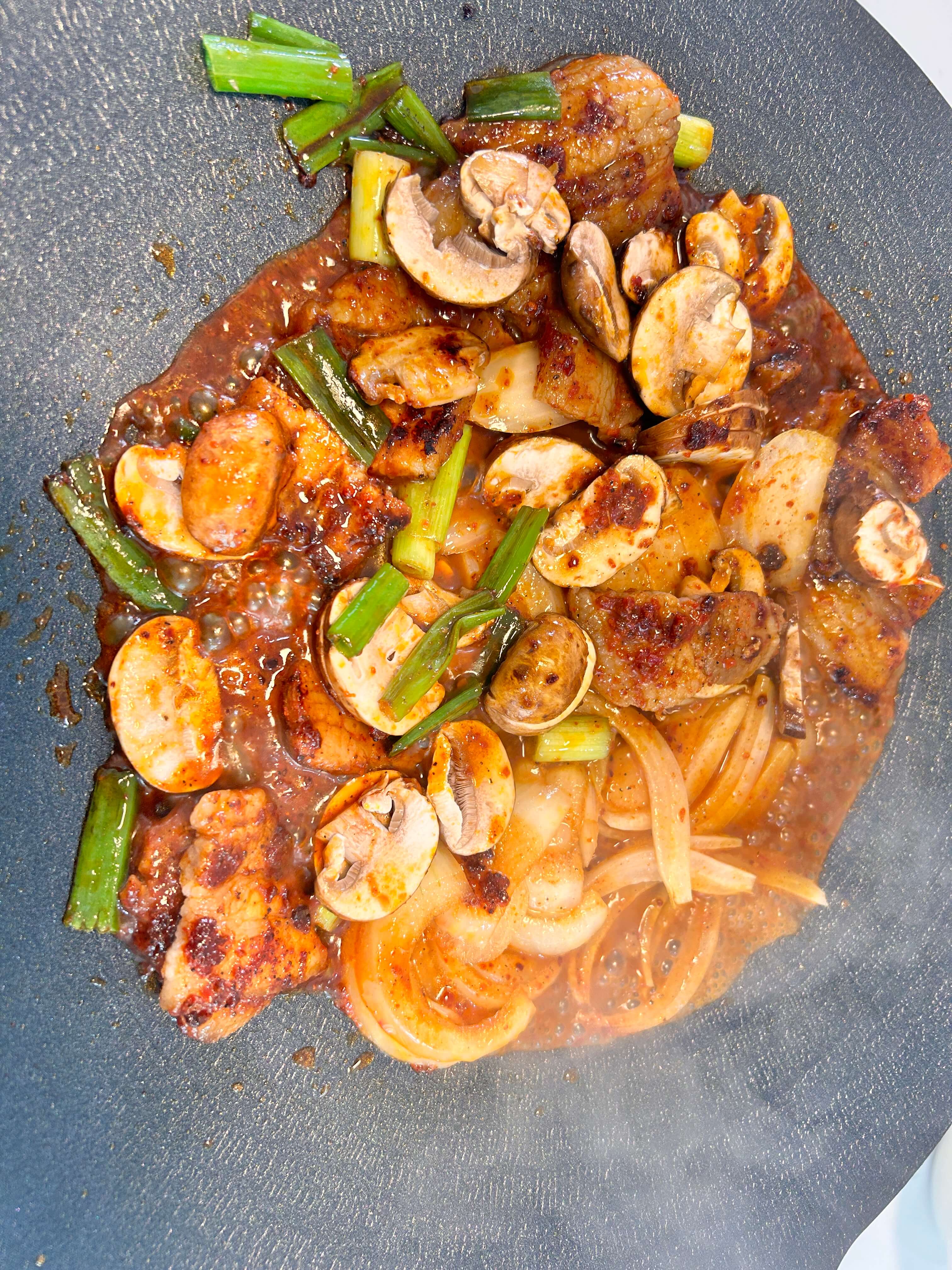 적당한 양의 삼겹살이면 충분합니다. 그리고 소스가 있다 보니 밥과 함께 반찬으로 즐겨도 좋고, 마지막에 볶음밥으로까지 완벽하게 즐겨보실 수 있습니다.