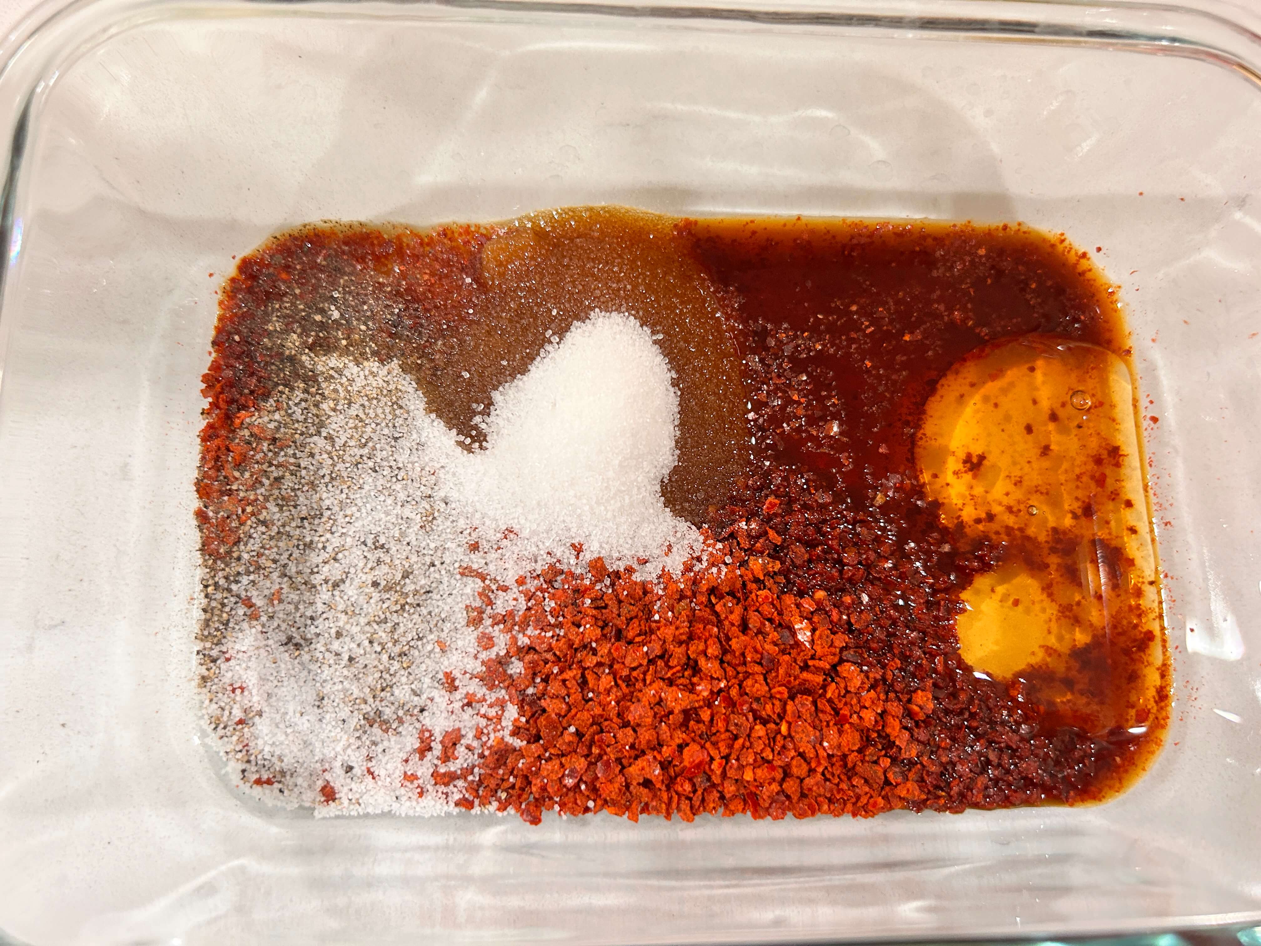 1. 소스재료로는 진간장, 소금, 설탕, 고춧가루, 후추, 꿀, 참기름을 준비해 줍니다.